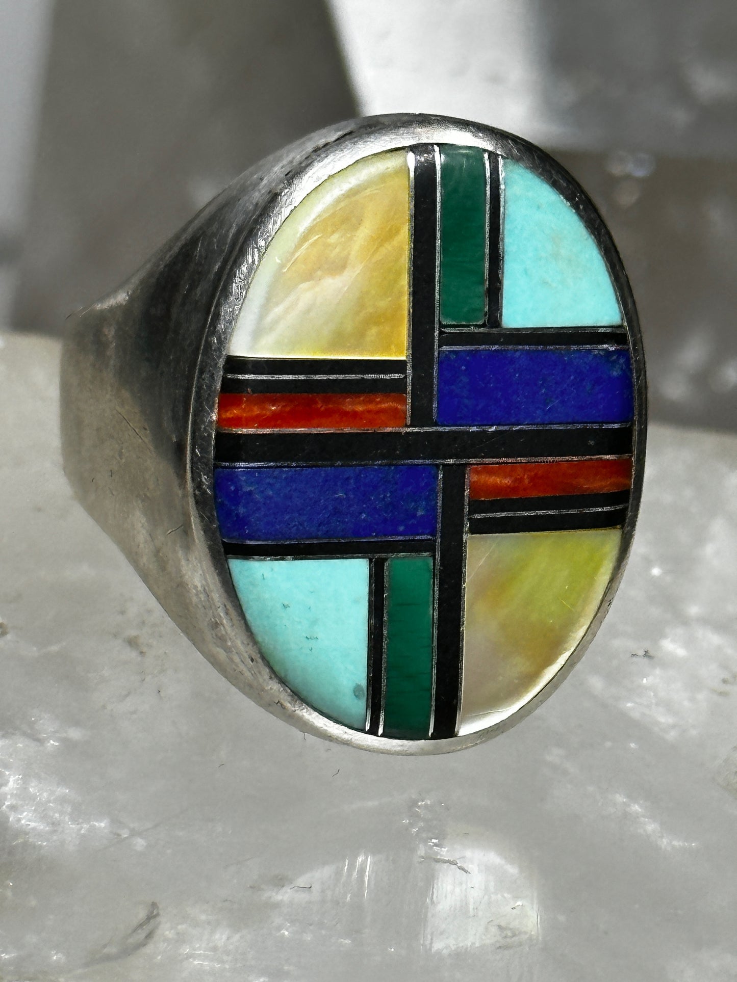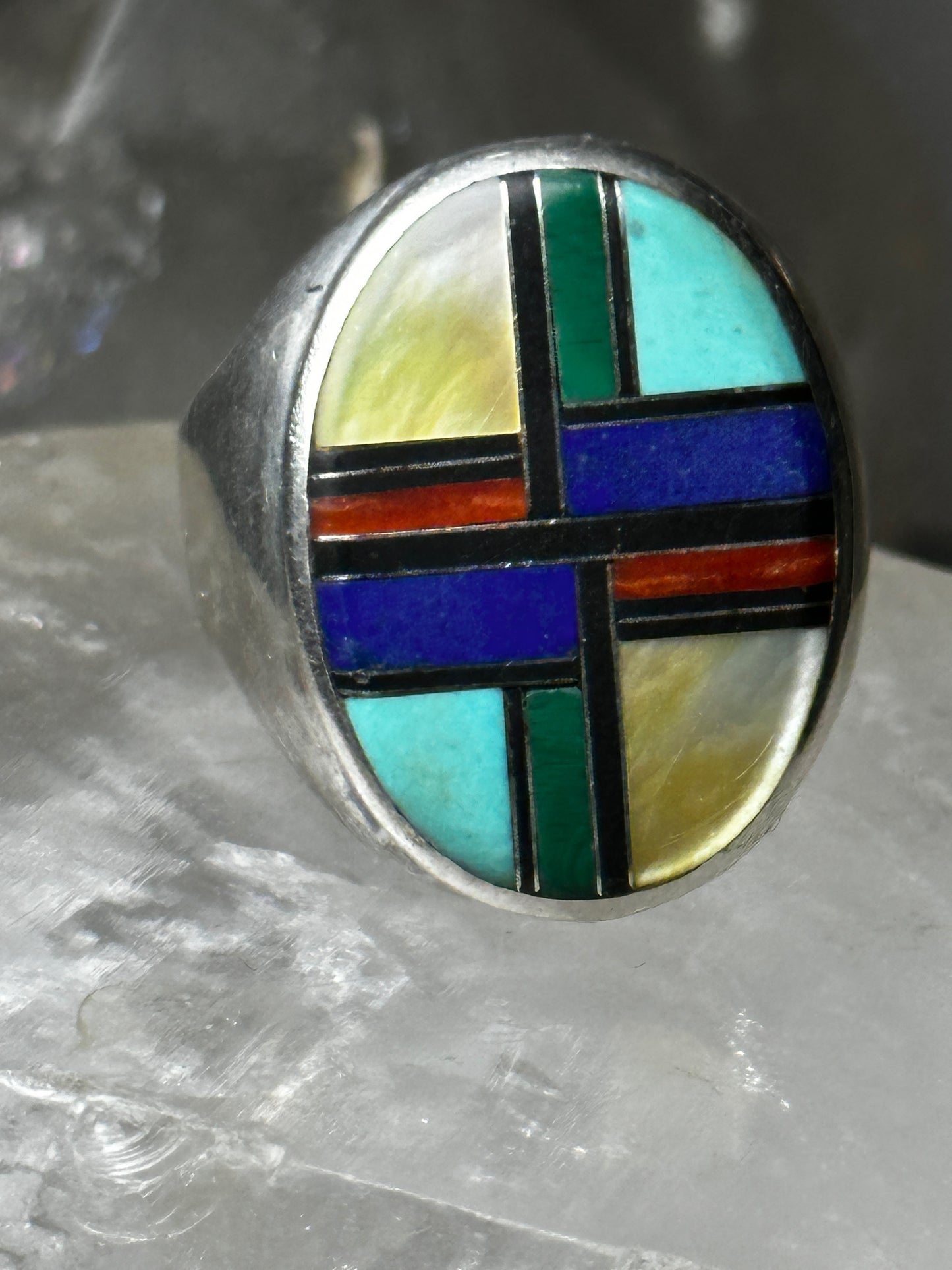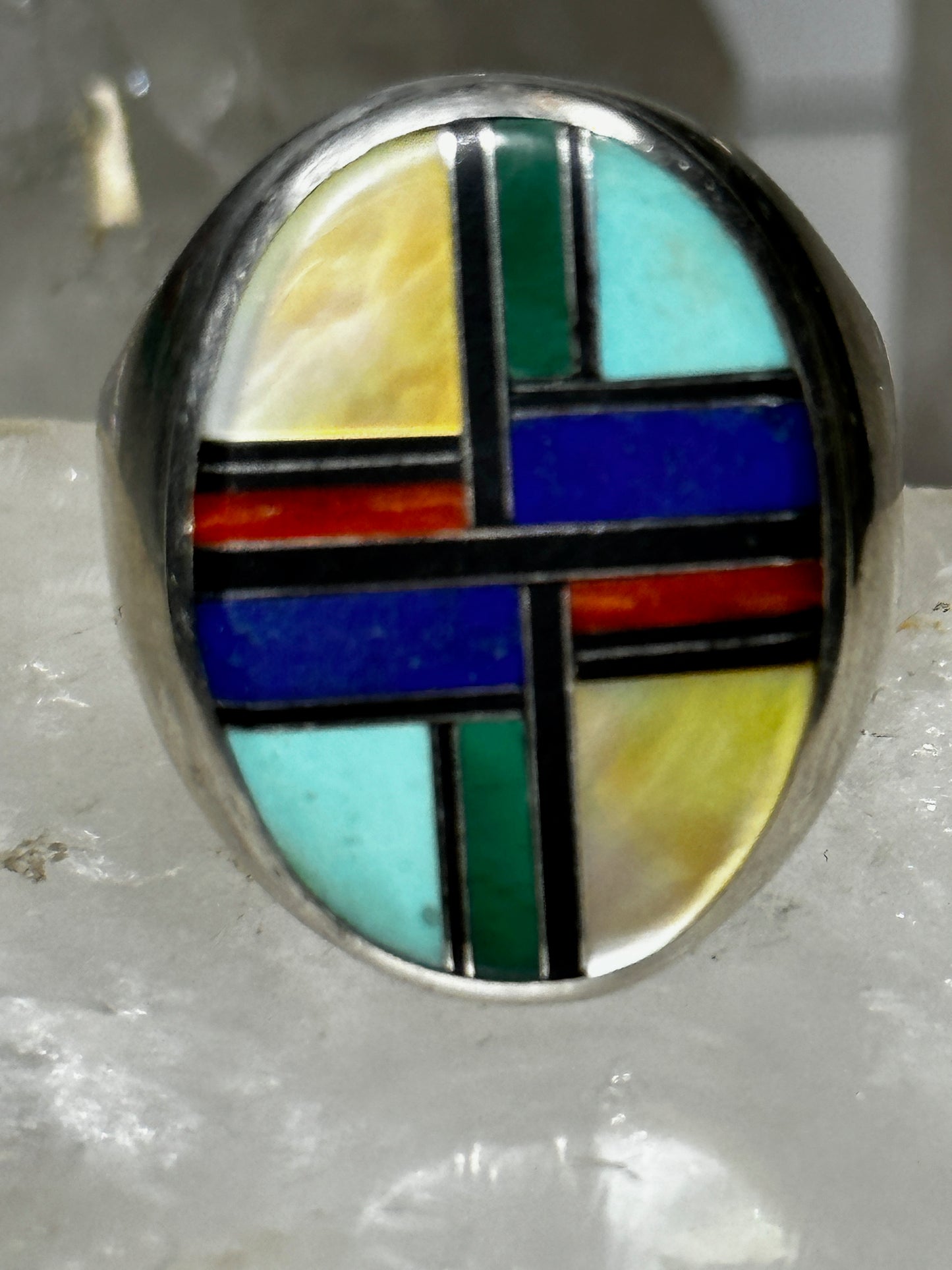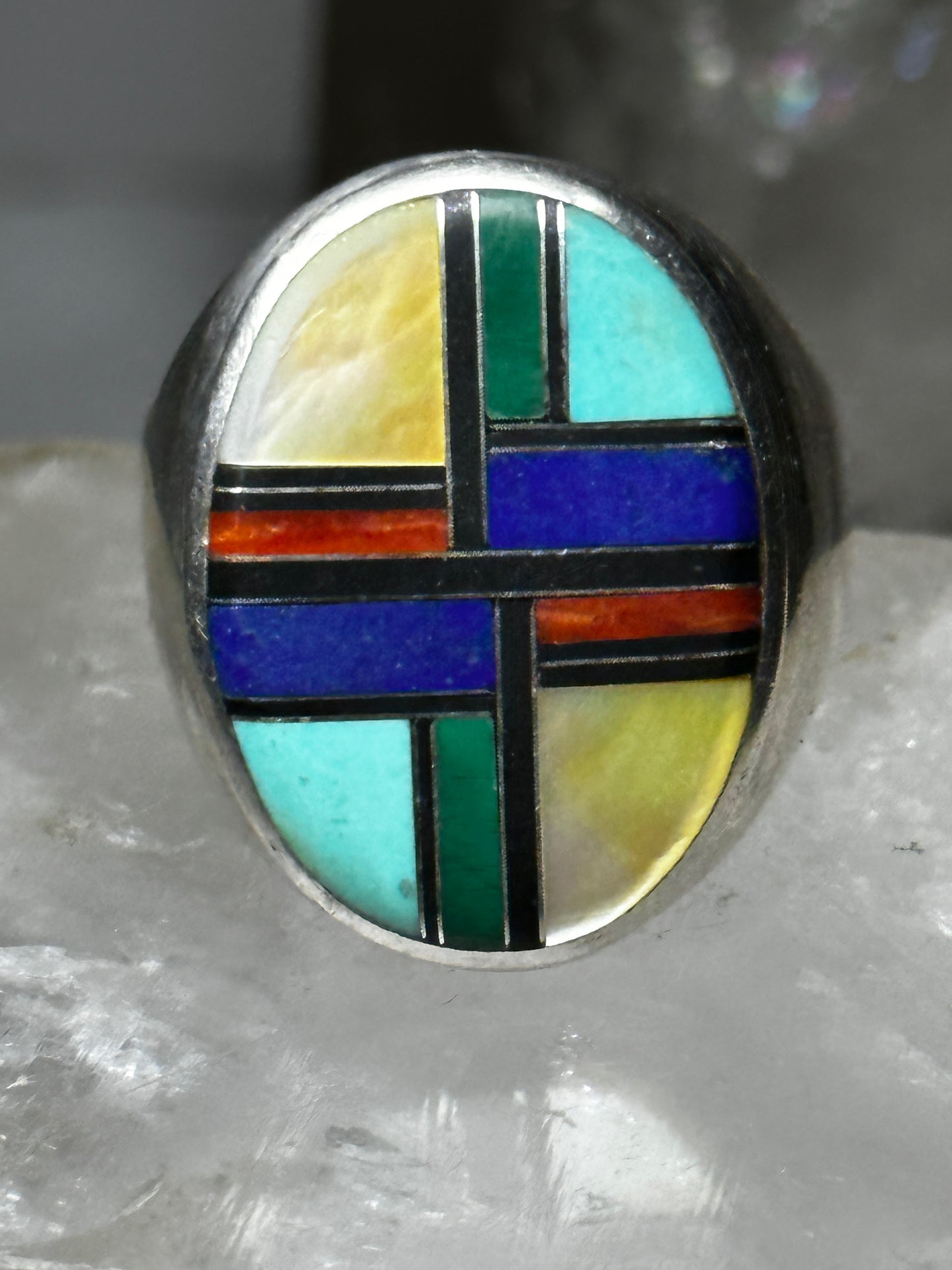 Navajo ring turquoise blue lapis spiny oyster MOP size 13 sterling silver women men