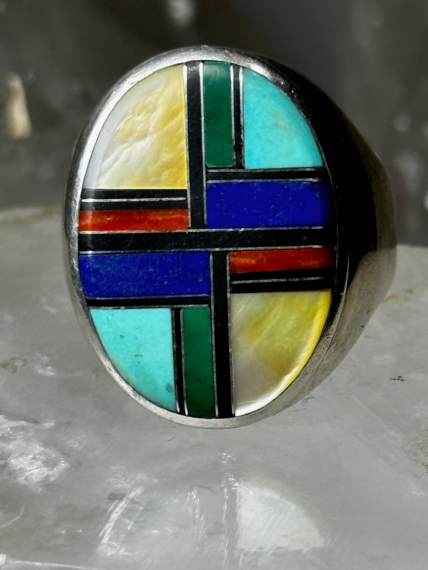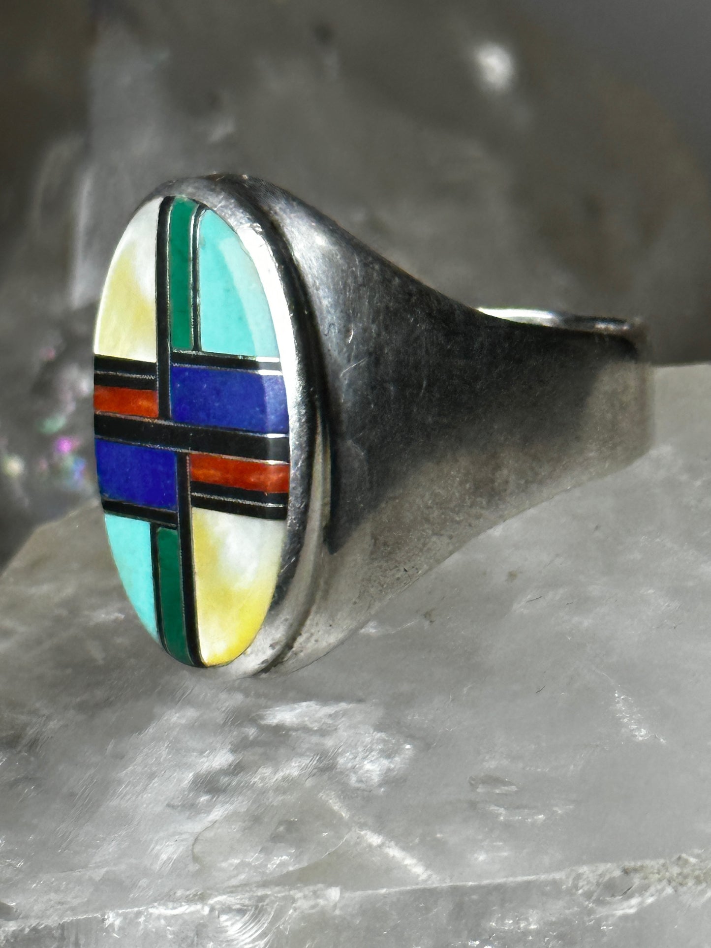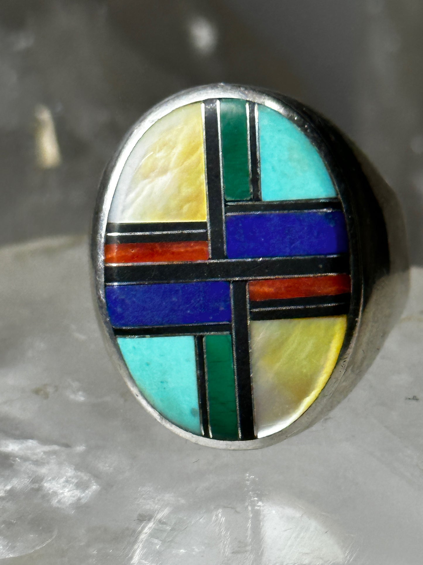 Navajo ring turquoise blue lapis spiny oyster MOP size 13 sterling silver women men