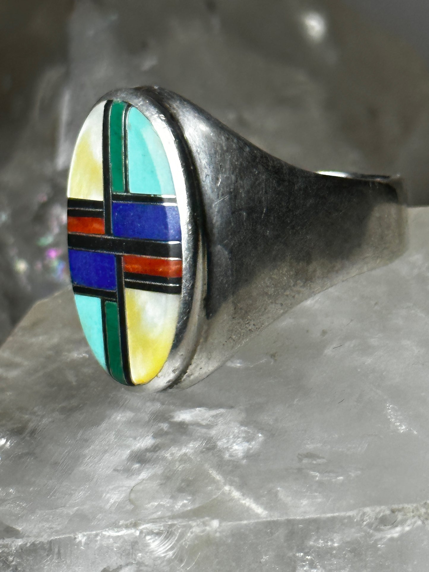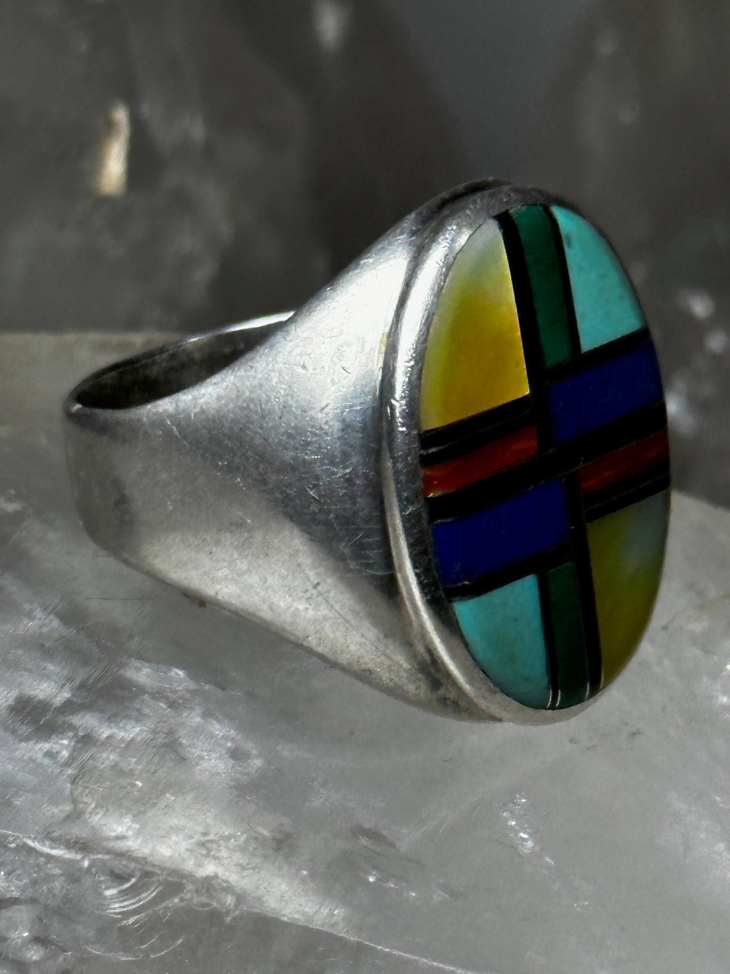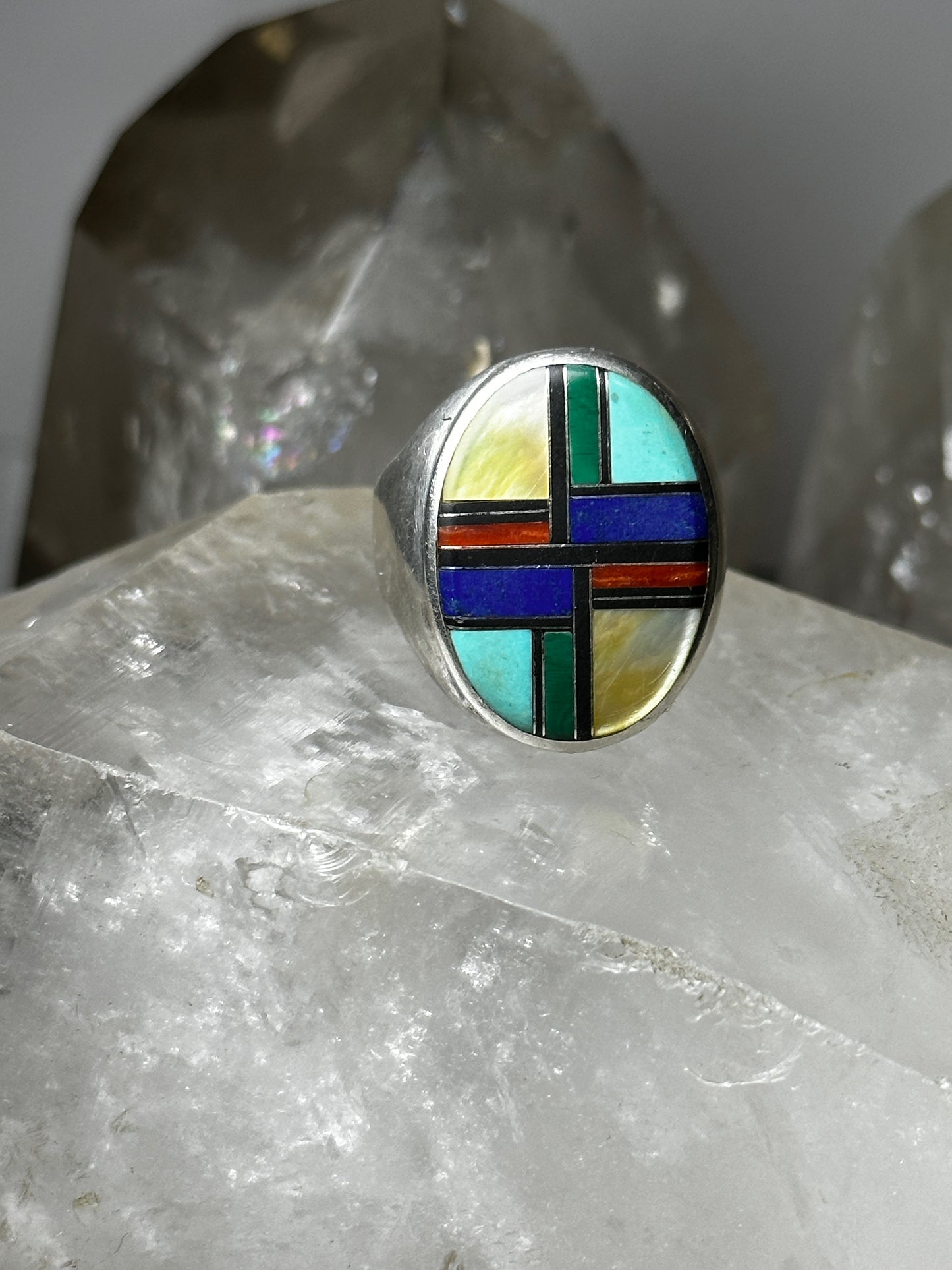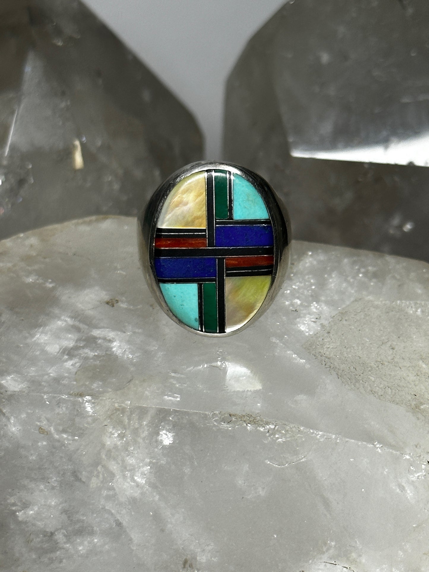 Navajo ring turquoise blue lapis spiny oyster MOP size 13 sterling silver women men