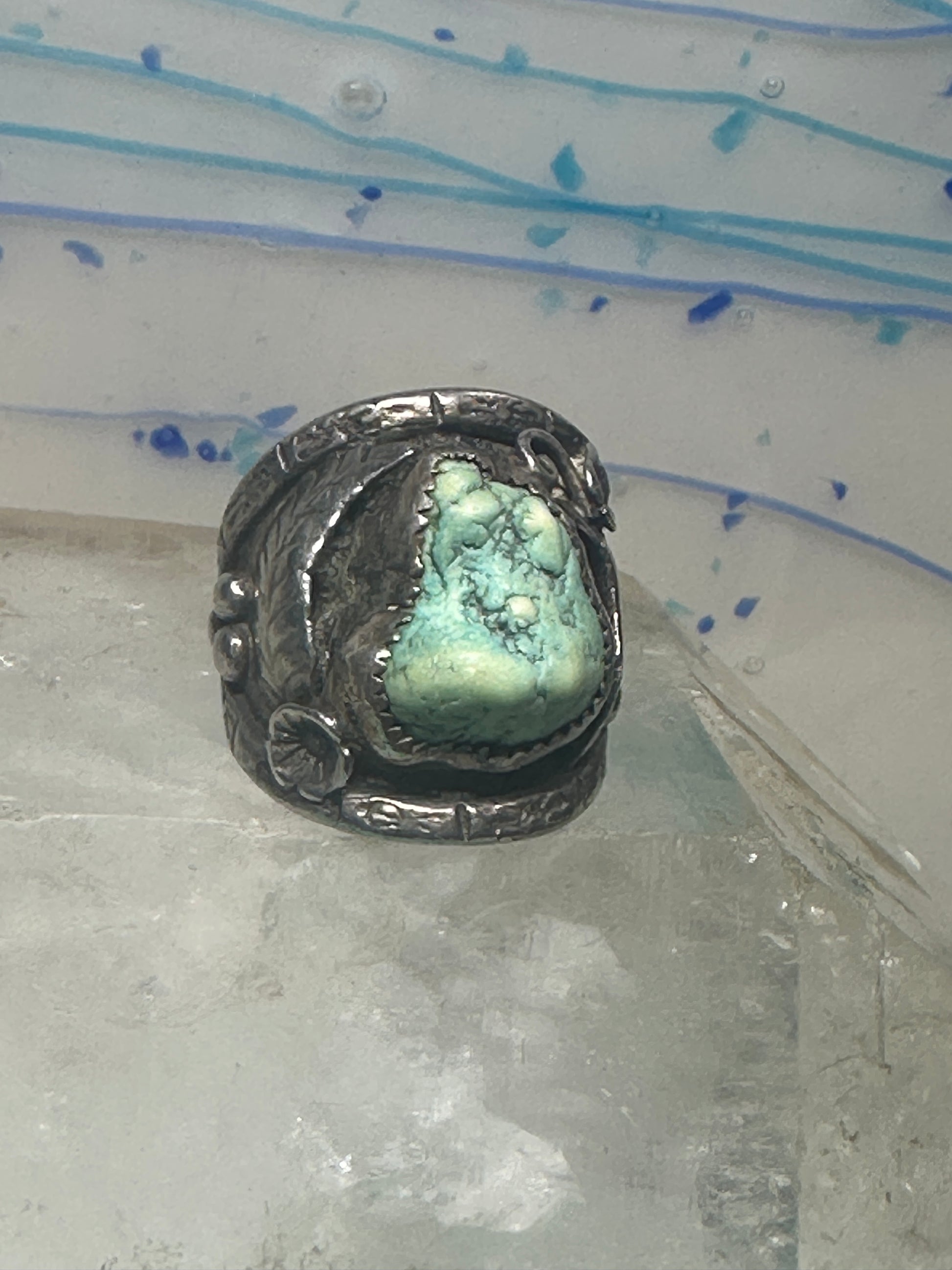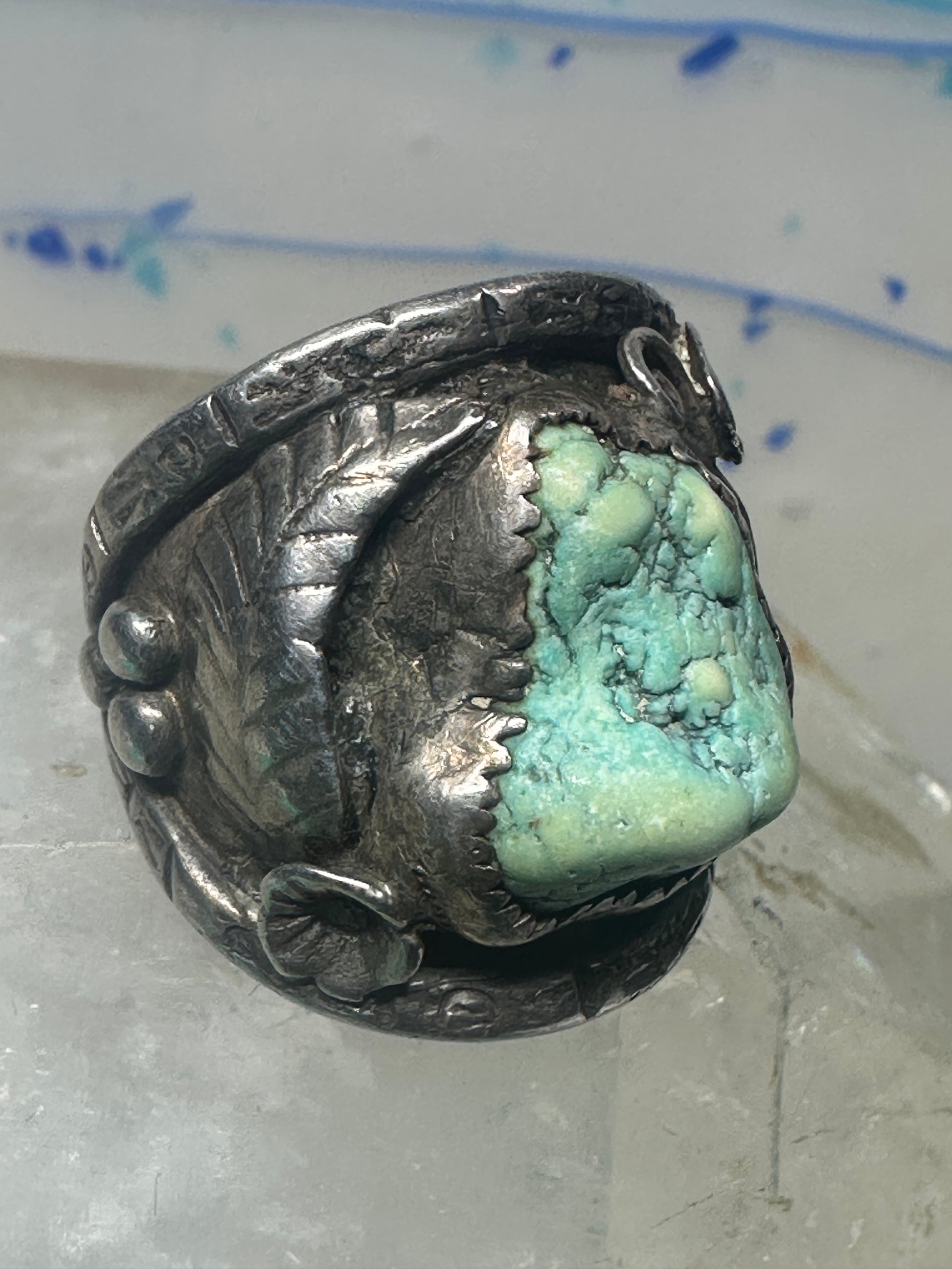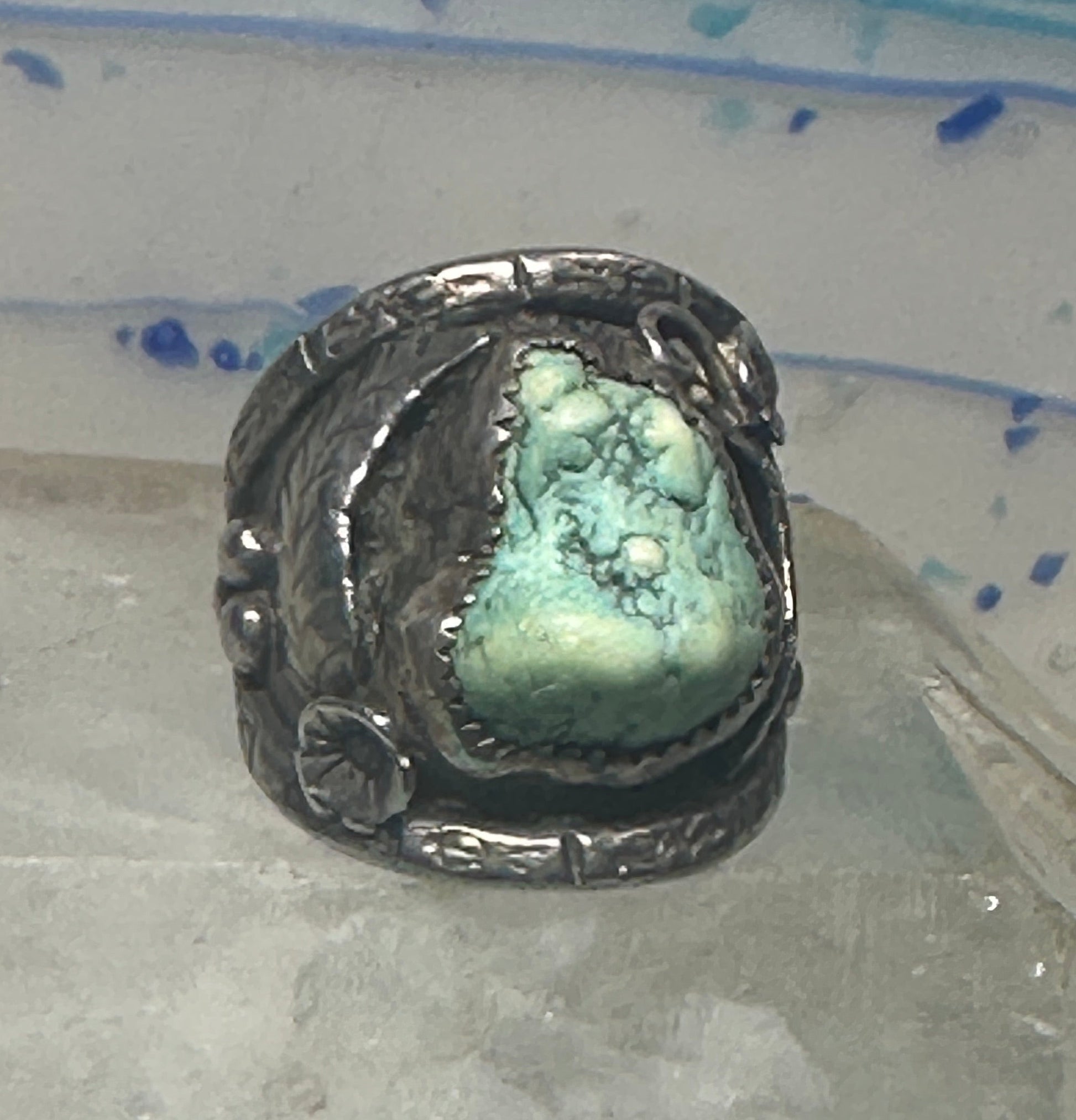 Navajo ring turquoise cigar band flowers leaves size 9.25 sterling silver women men