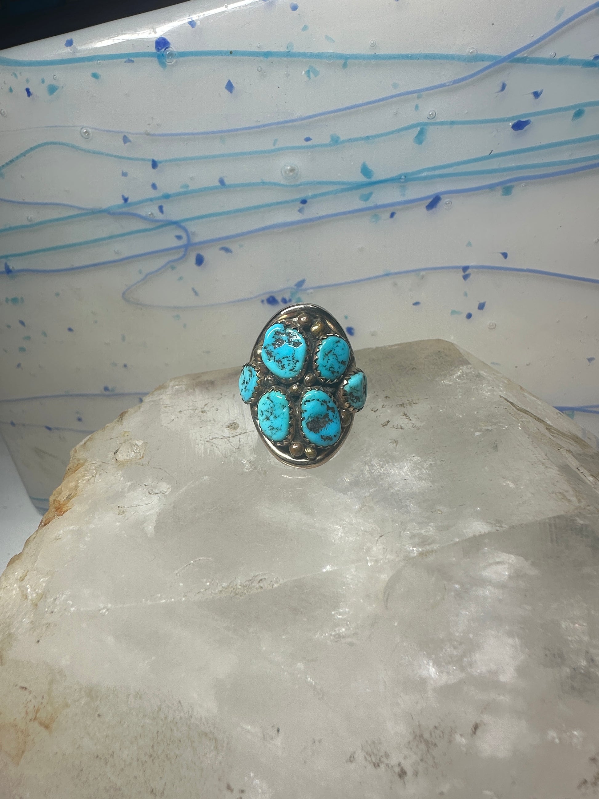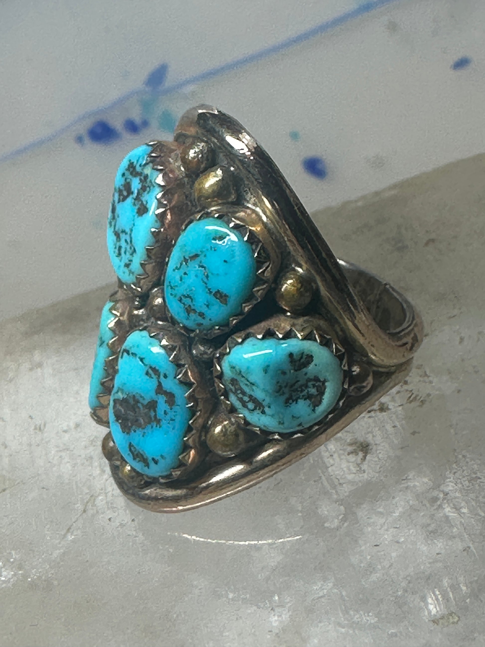 Navajo ring Turquoise cluster cigar band size 5.5 sterling silver women pinky