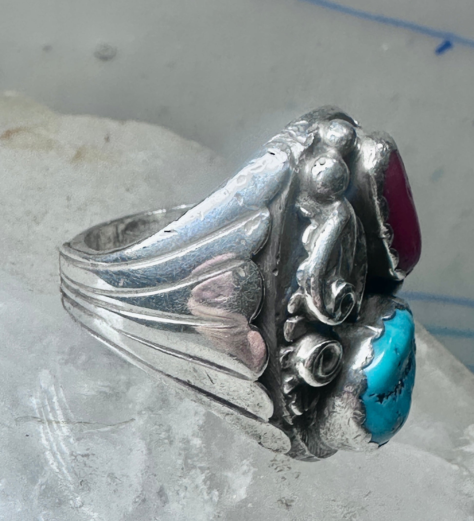 Navajo ring turquoise coral band size 10.75 sterling silver women men