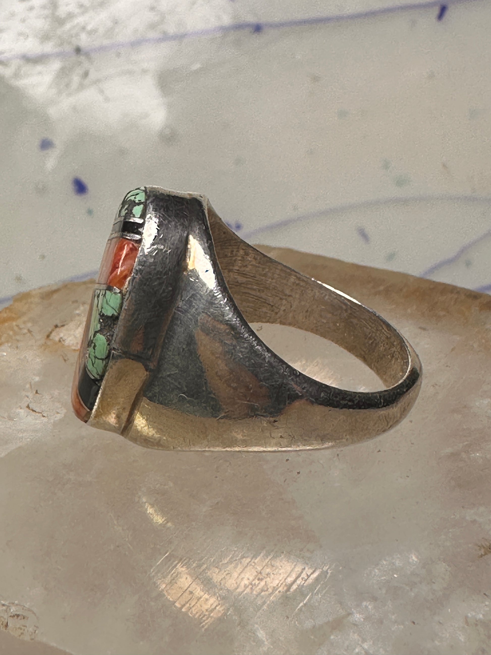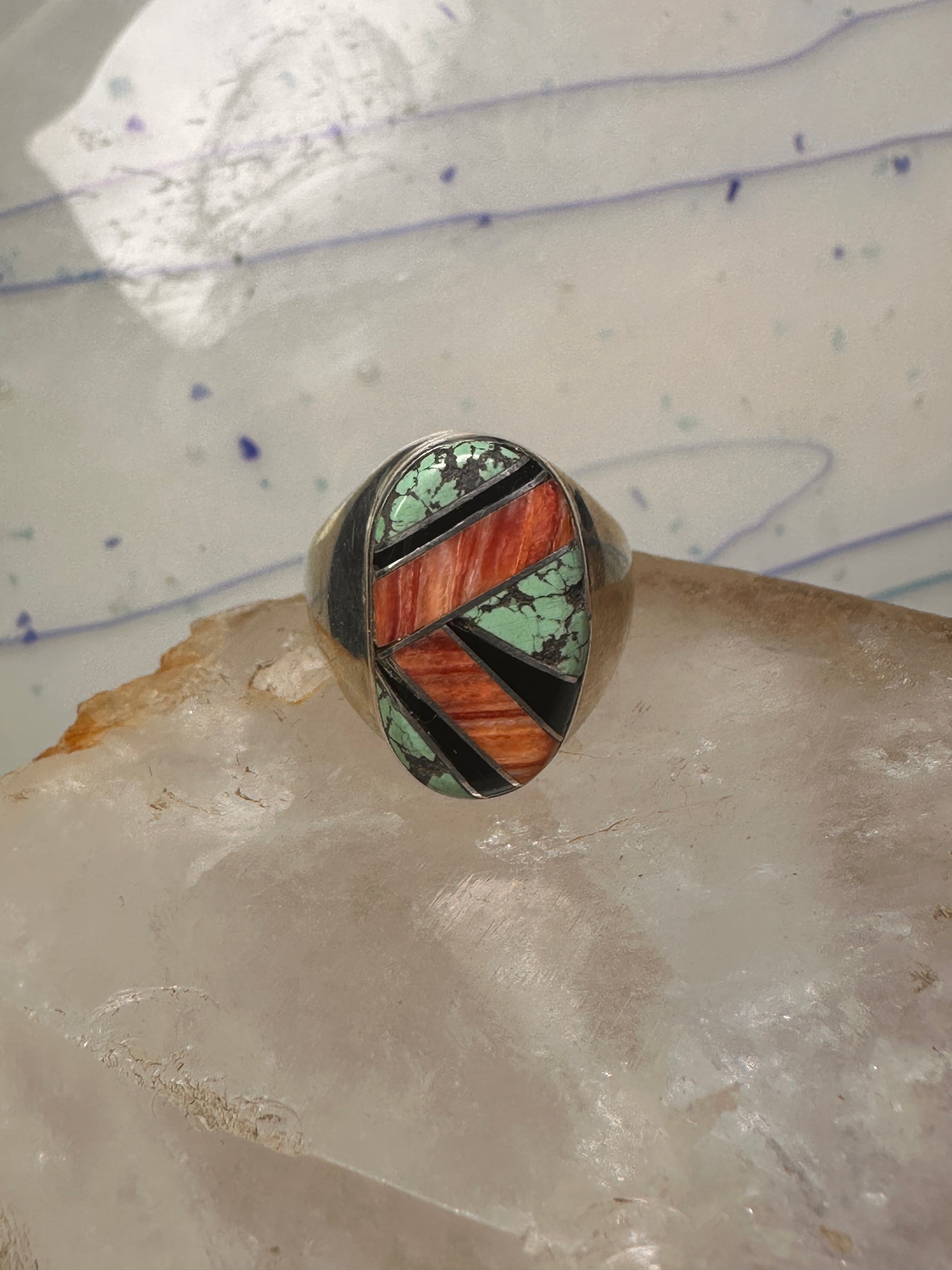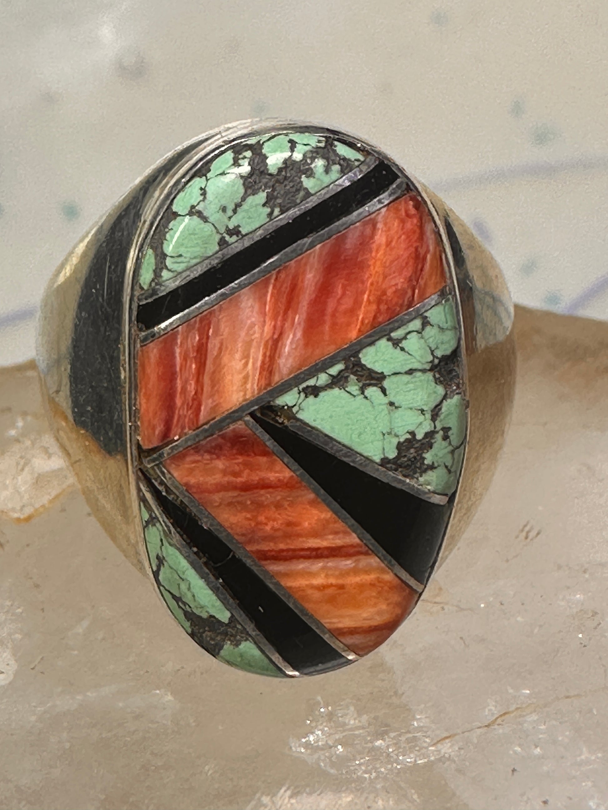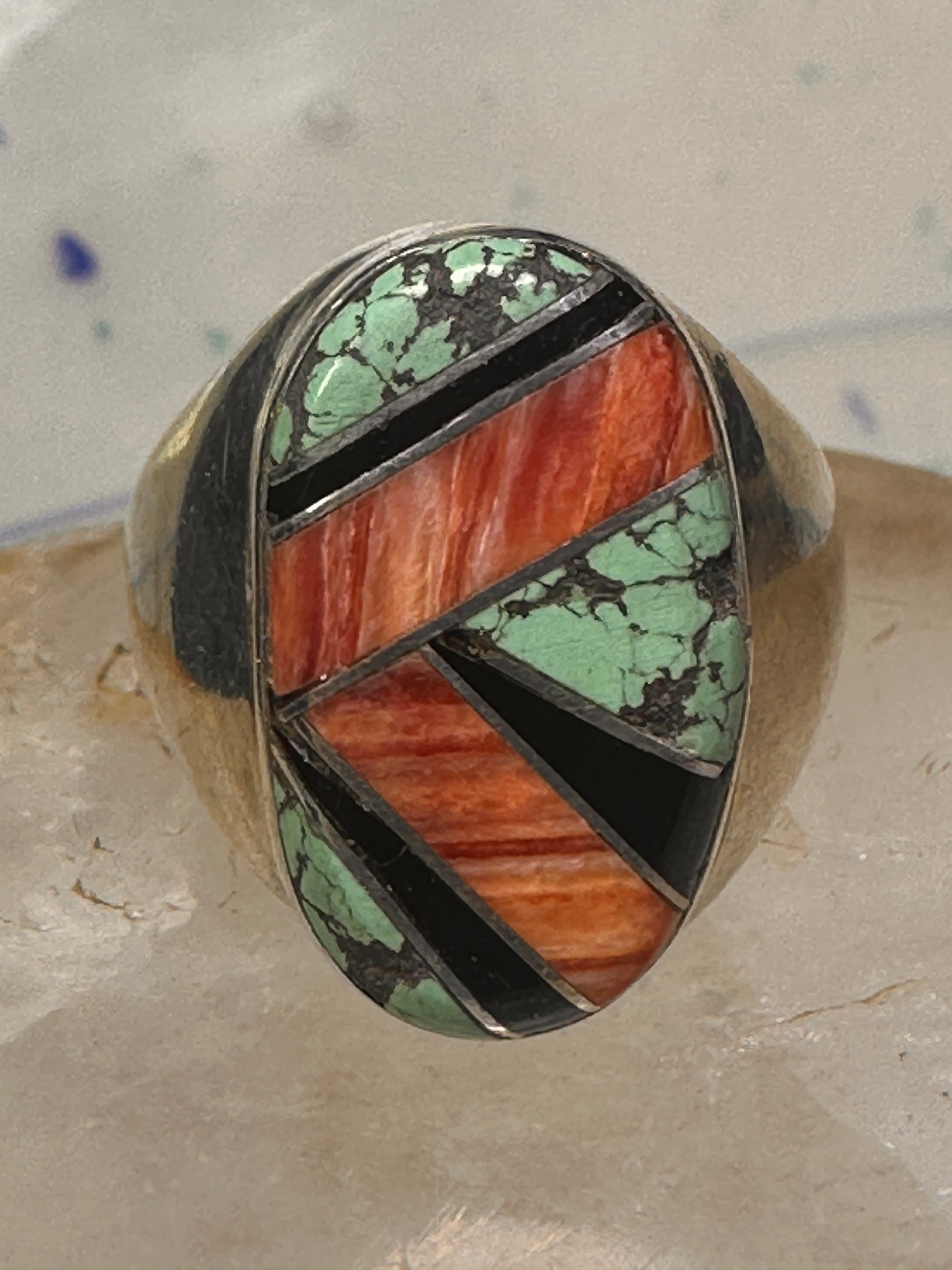 Navajo ring turquoise coral band size 10 sterling silver women men