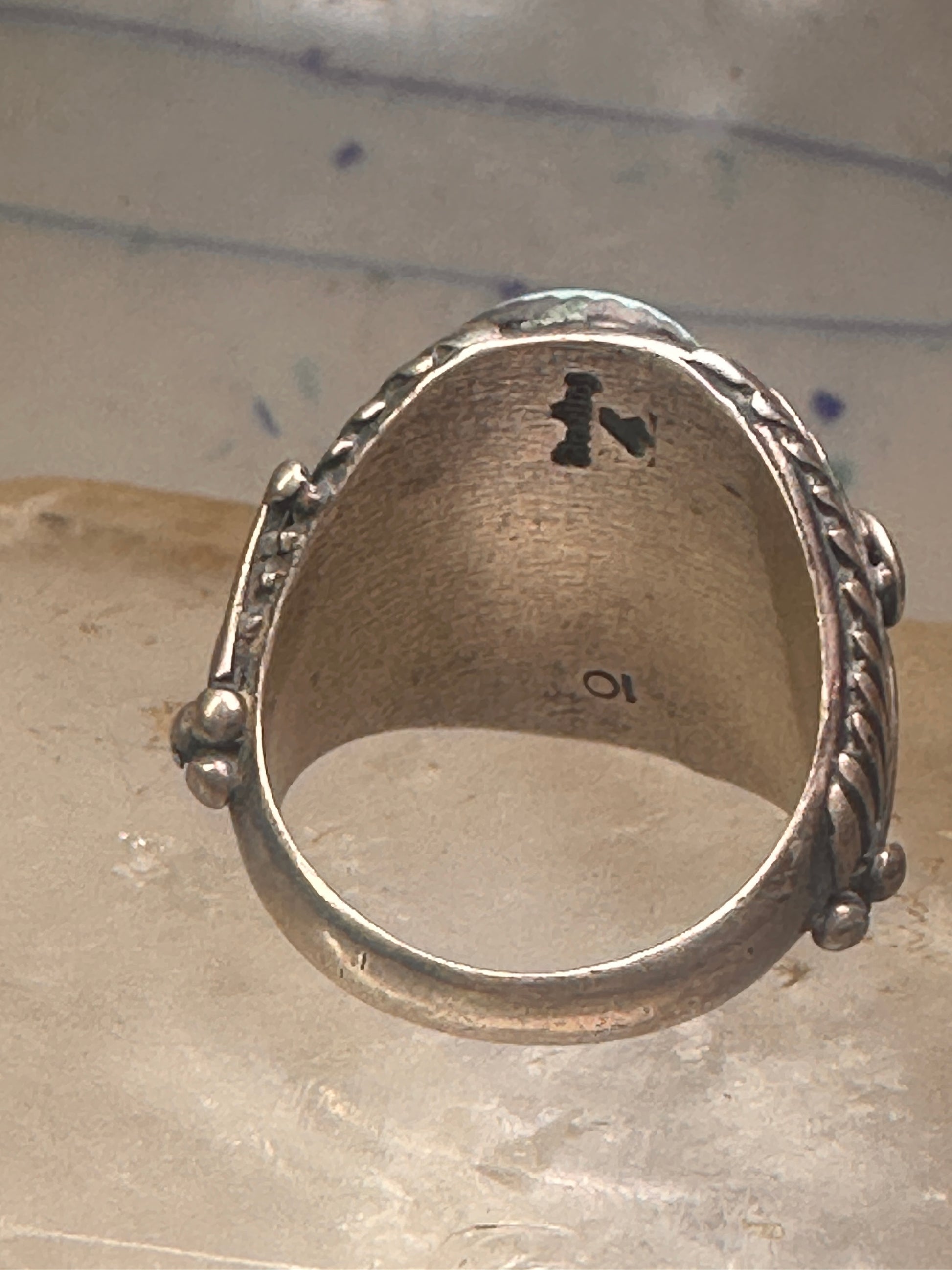 Navajo ring turquoise coral leaves feathers size 10 sterling silver women men