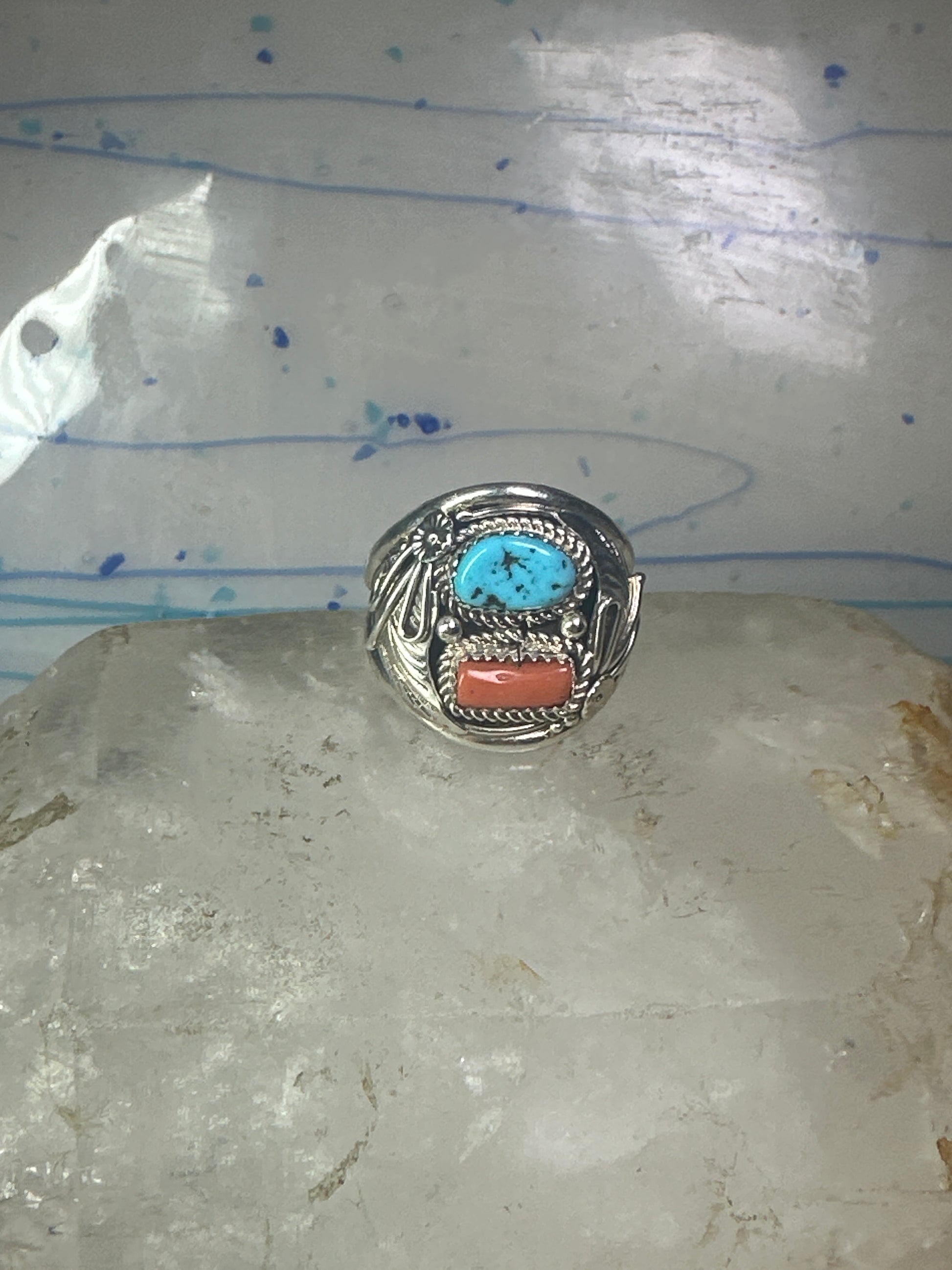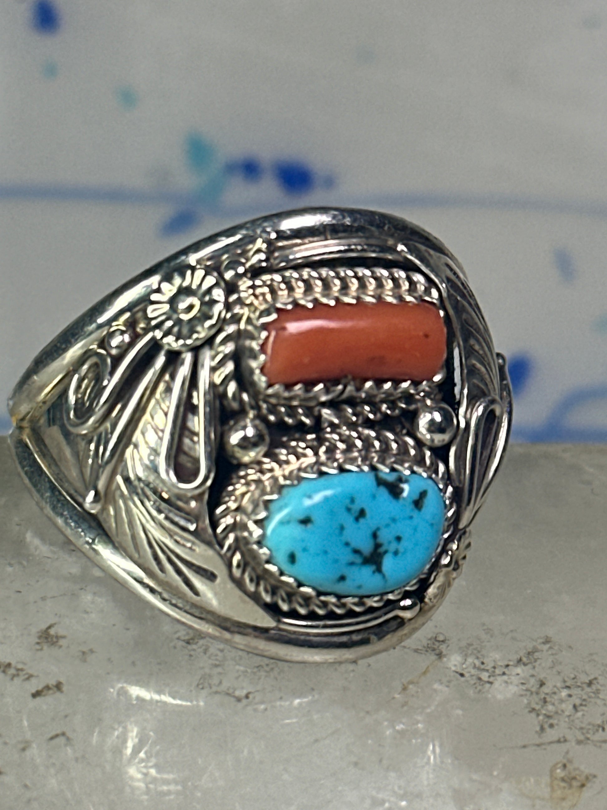 Navajo ring turquoise coral size 14.50 sterling silver men b