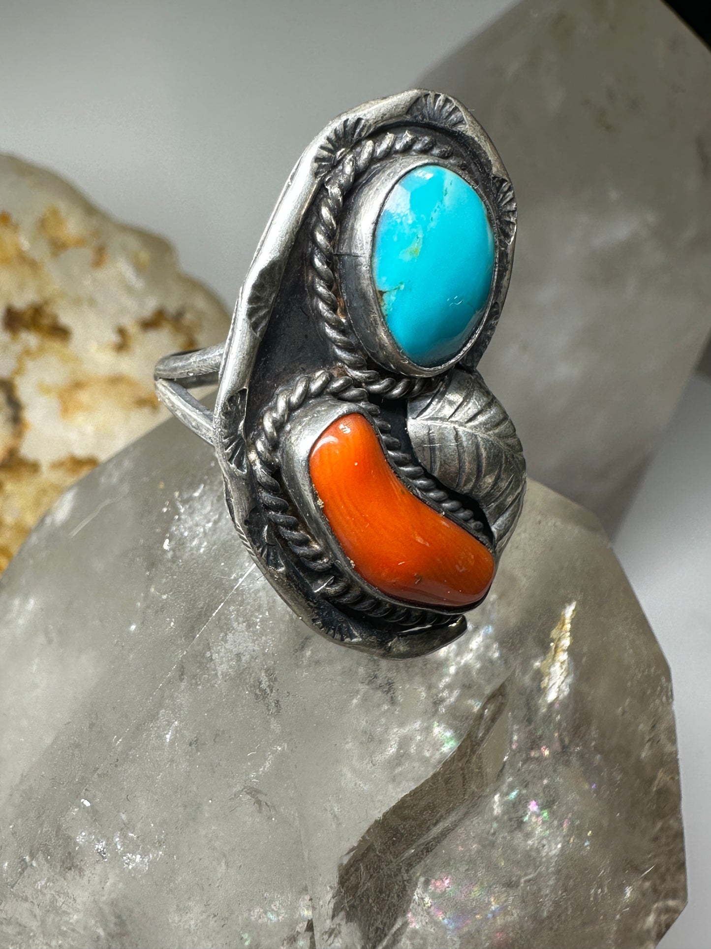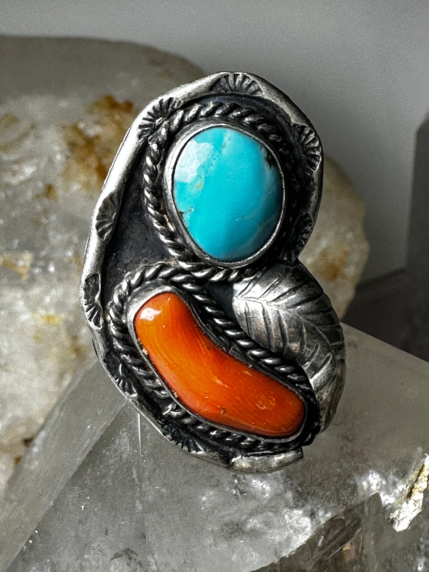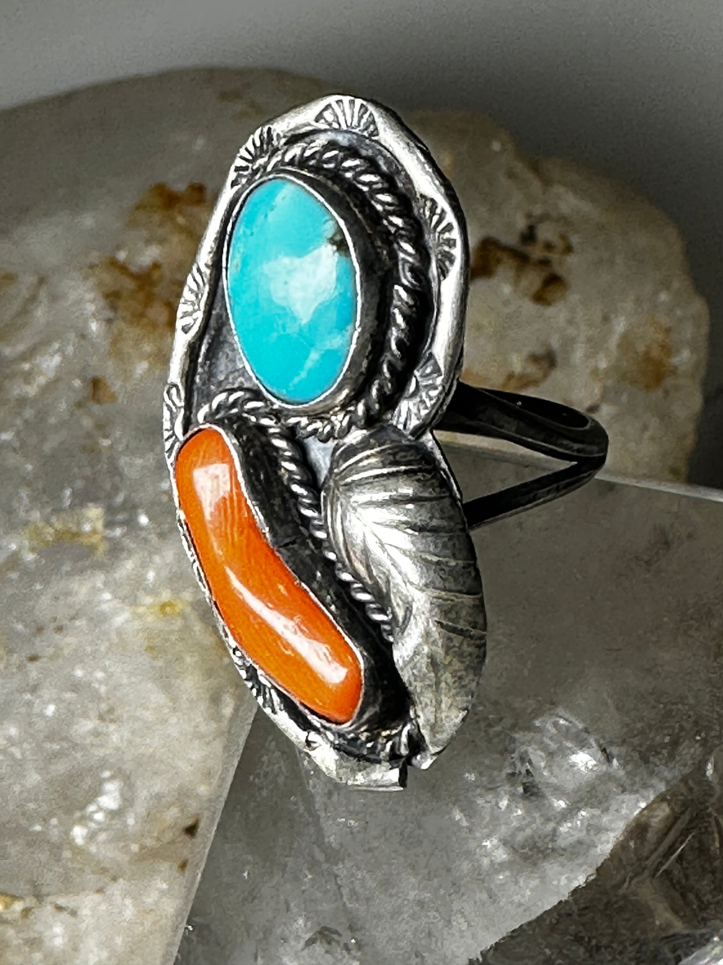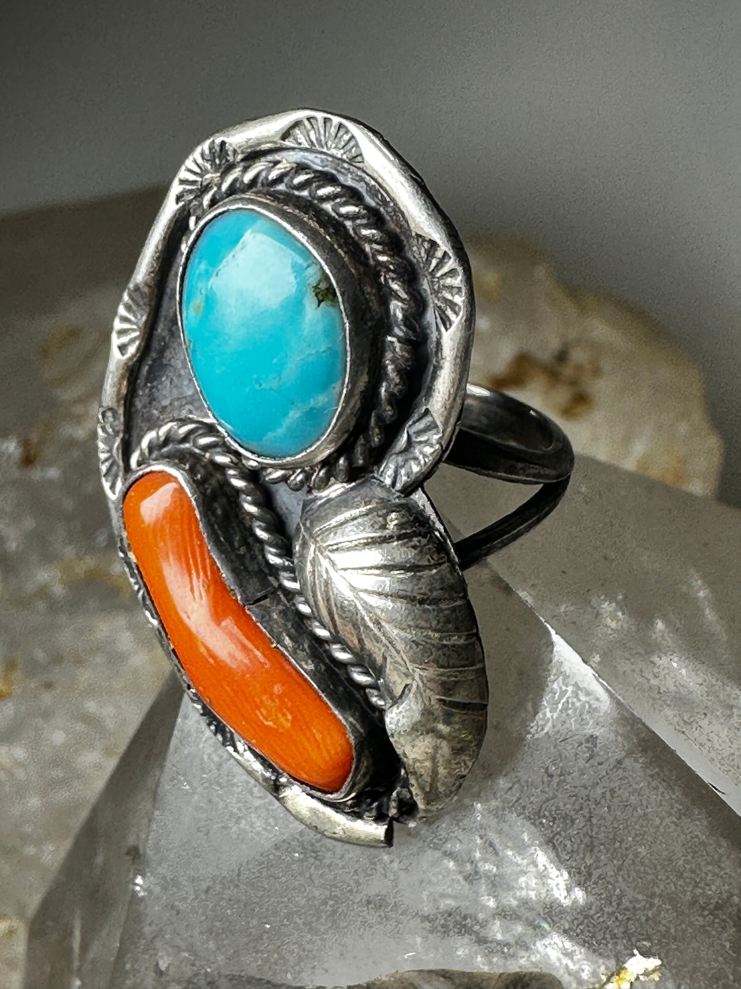 Navajo ring turquoise coral size 5.50 sterling silver women