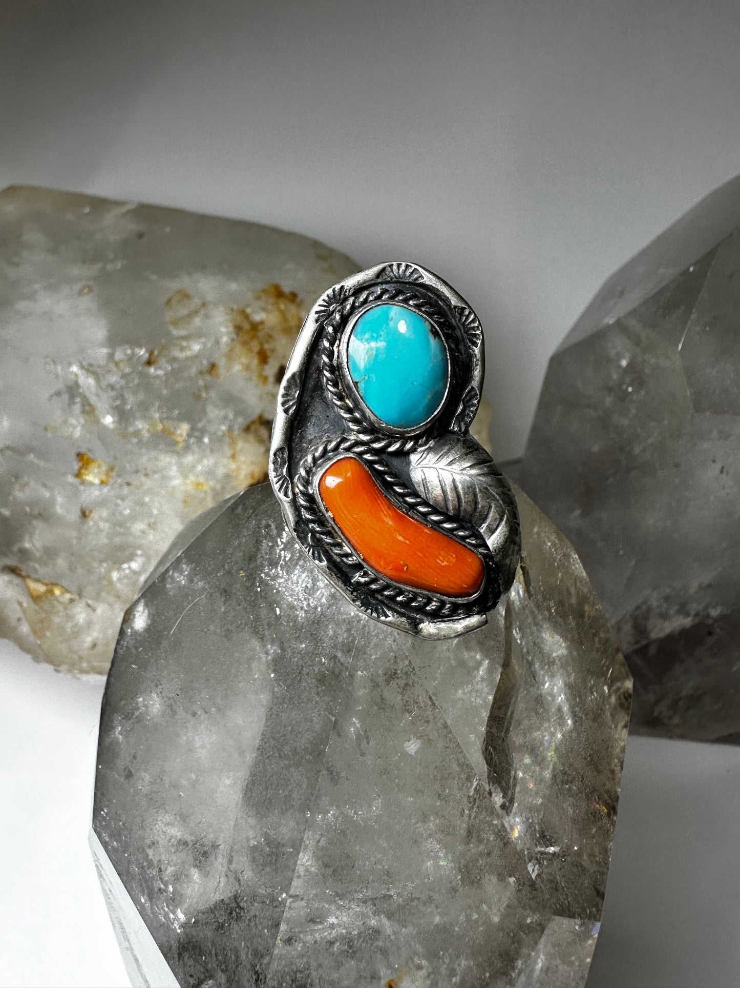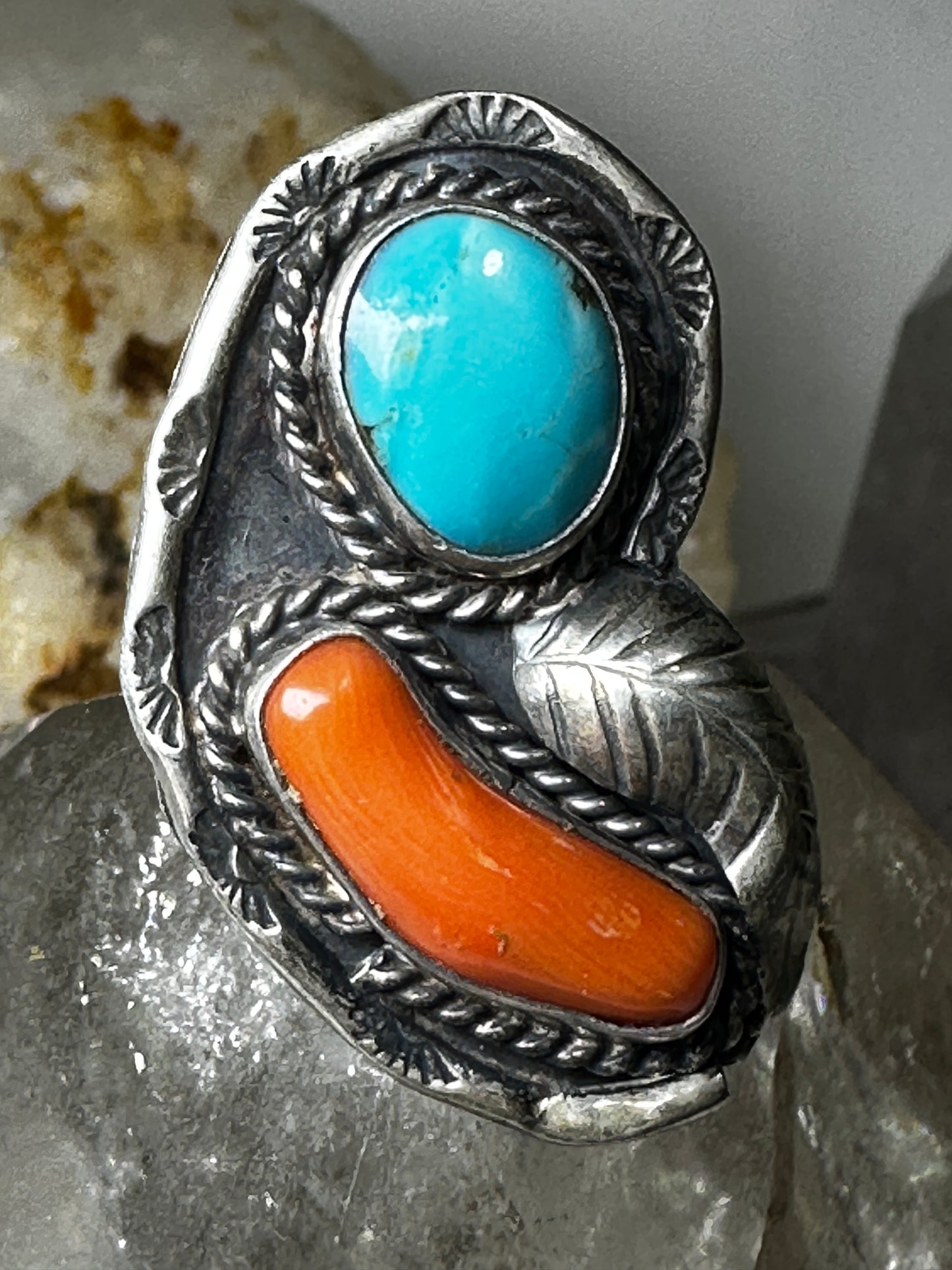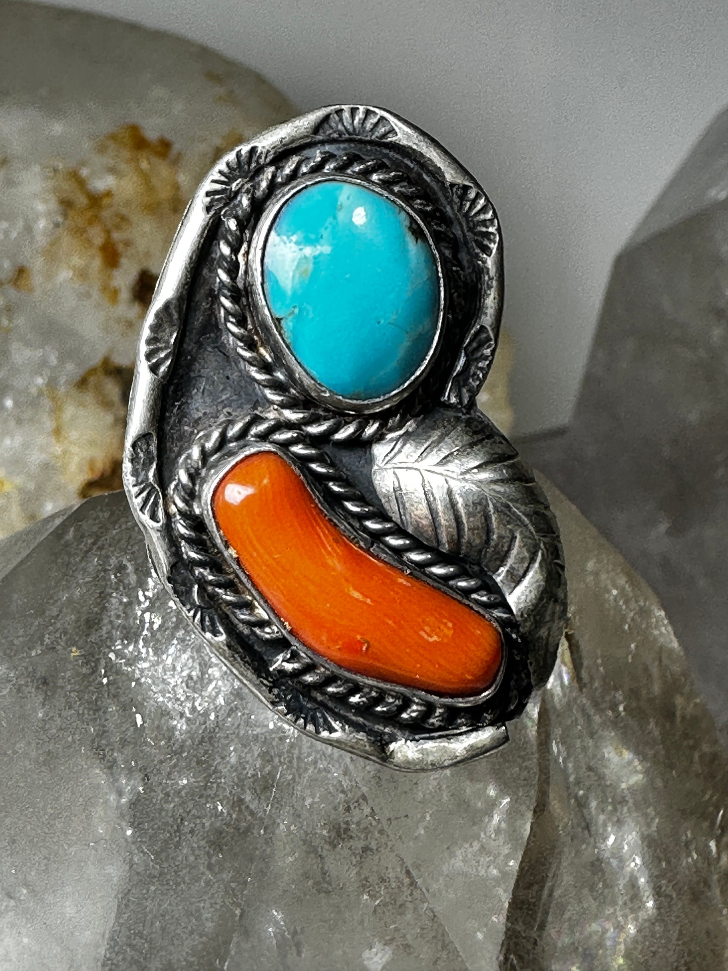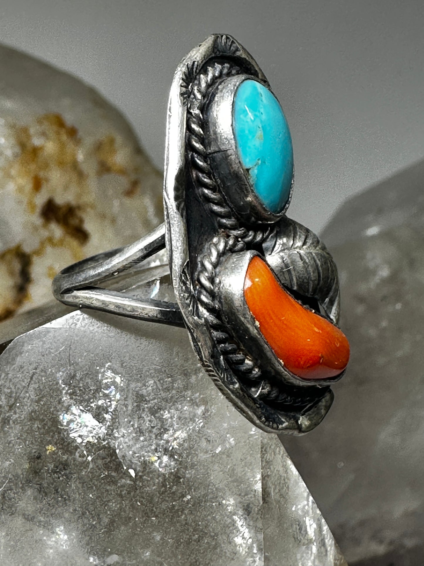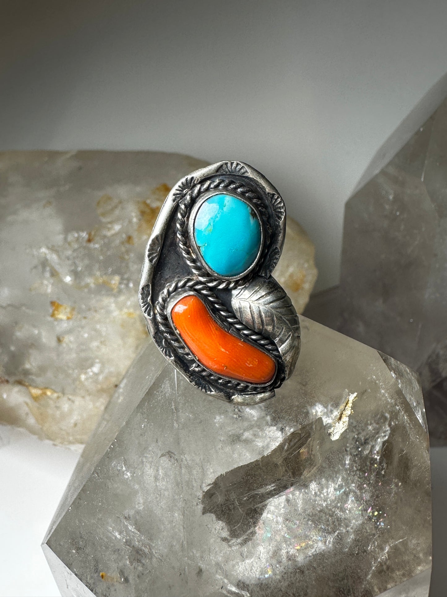 Navajo ring turquoise coral size 5.50 sterling silver women
