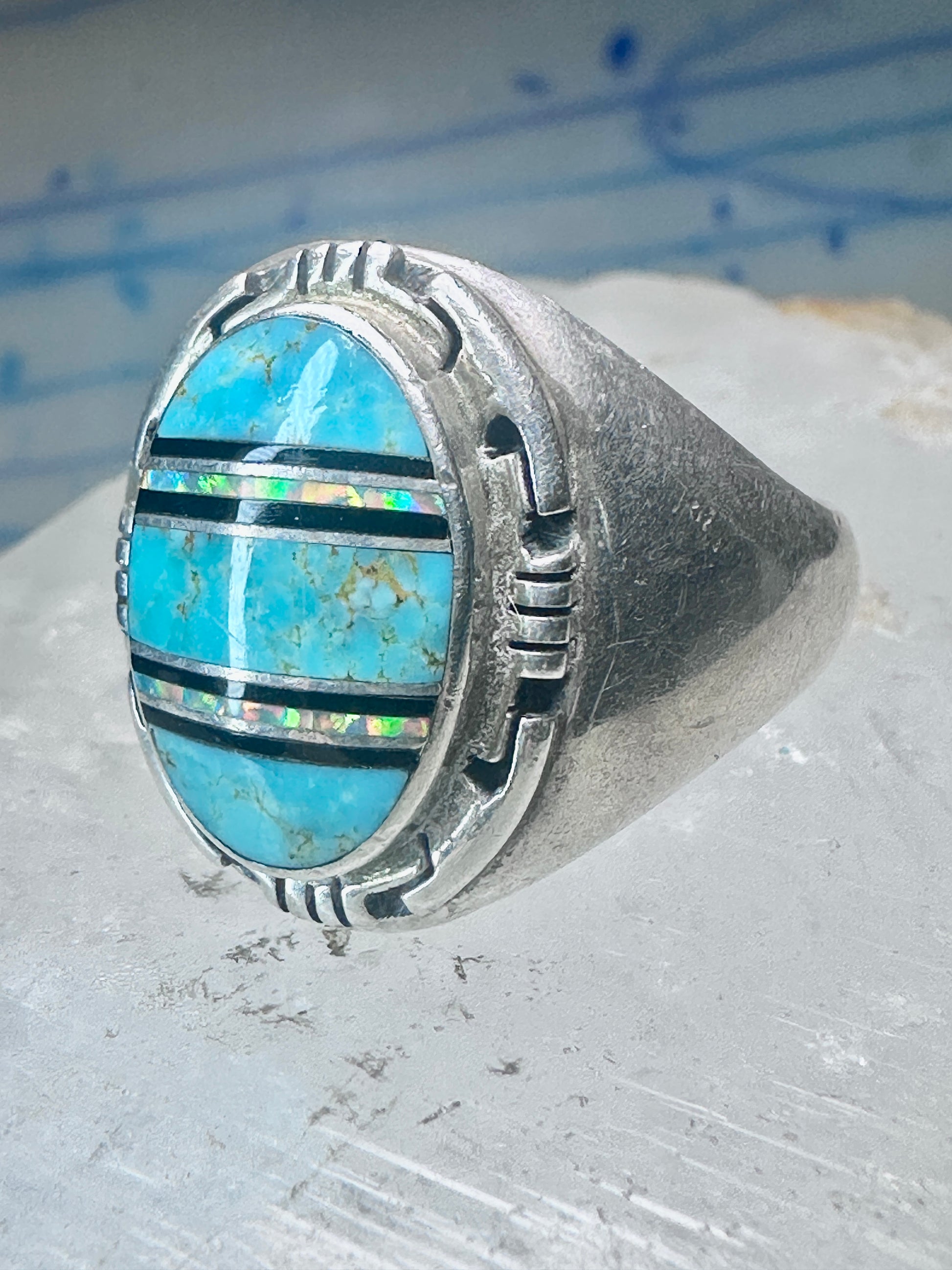 Navajo ring turquoise lab opal size 11.75 sterling silver women men