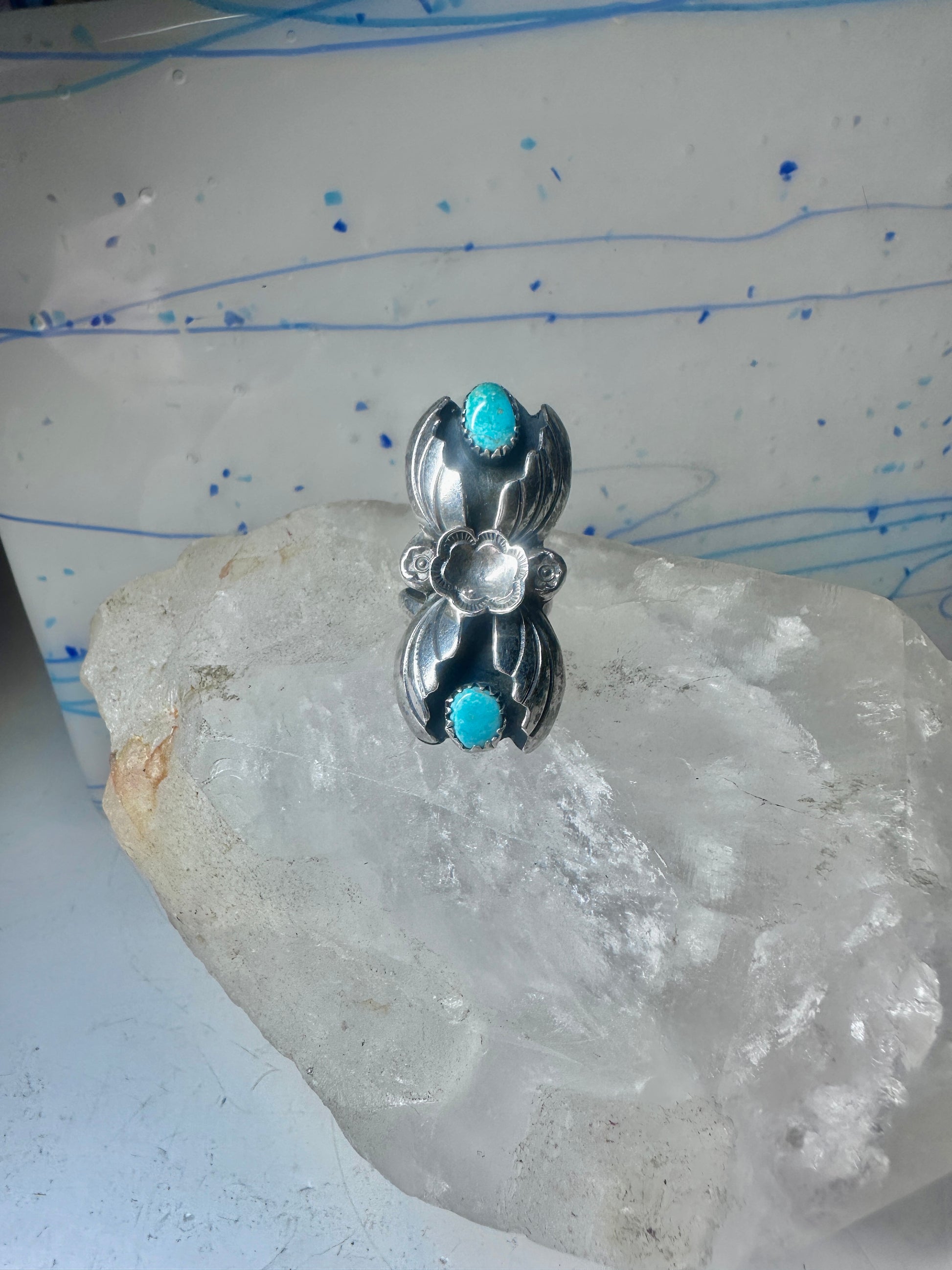 Navajo ring turquoise leaves size 5.5 sterling silver women signed M