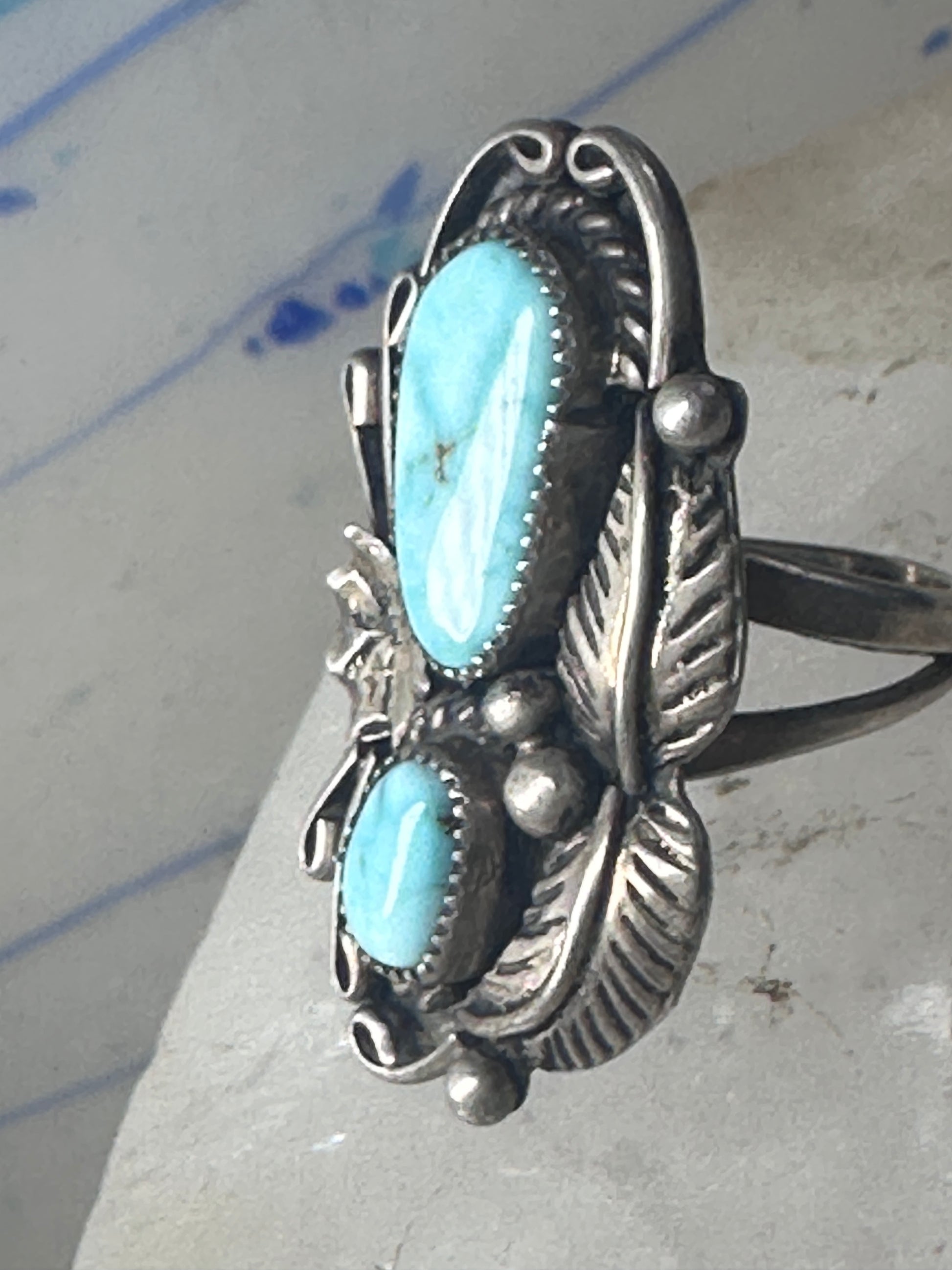 Long Navajo ring Turquoise leaves squash blossom sterling silver size 5.50 women girls