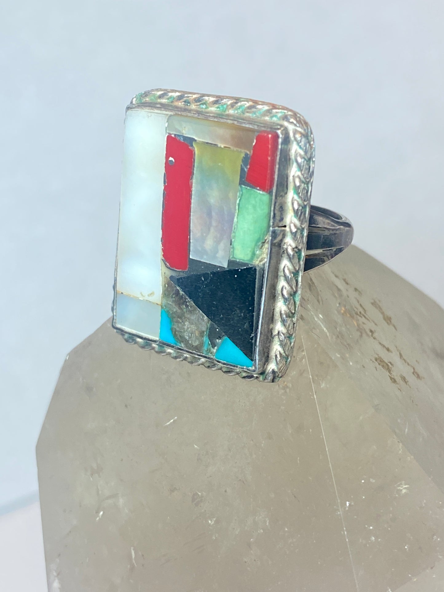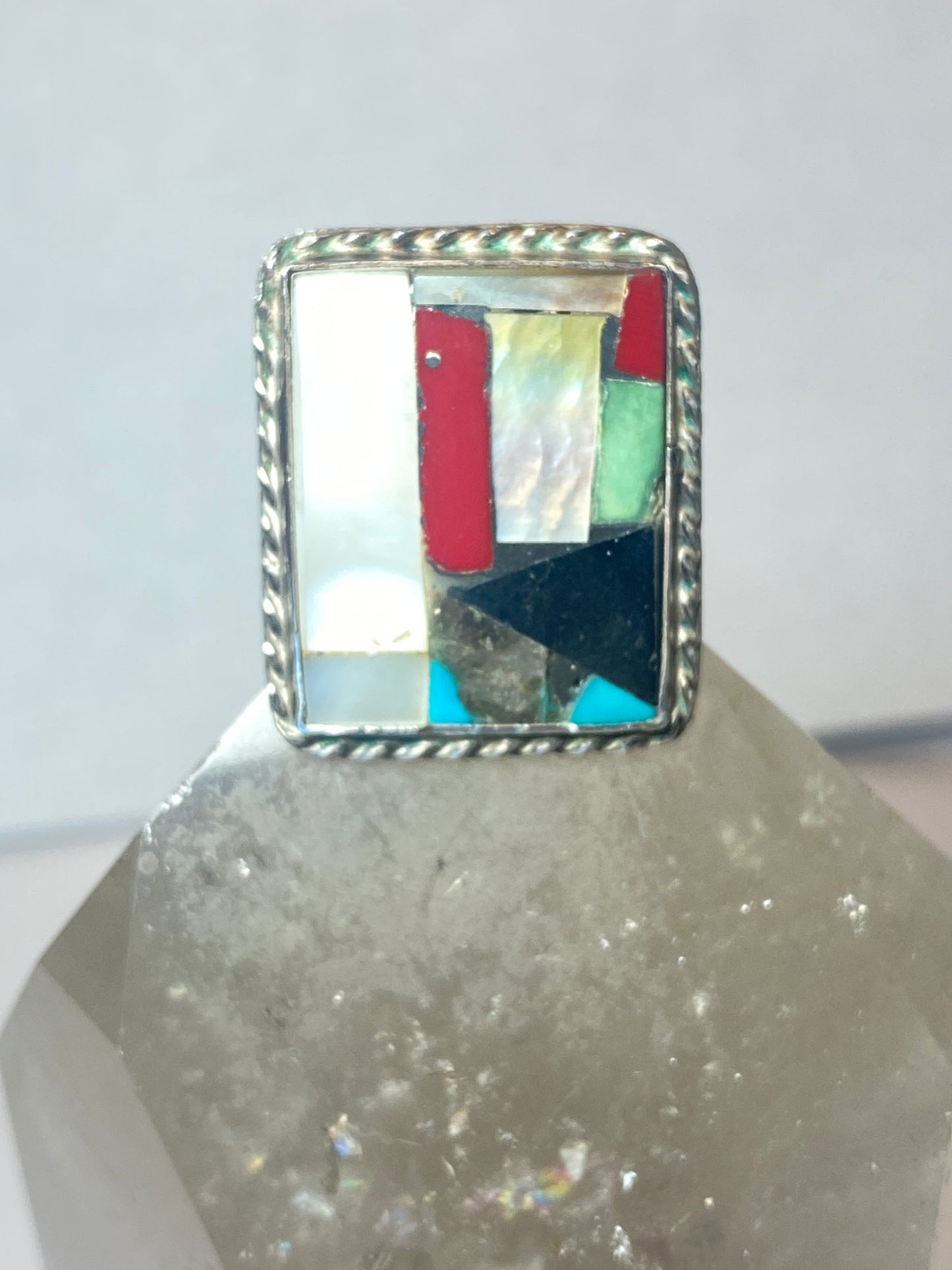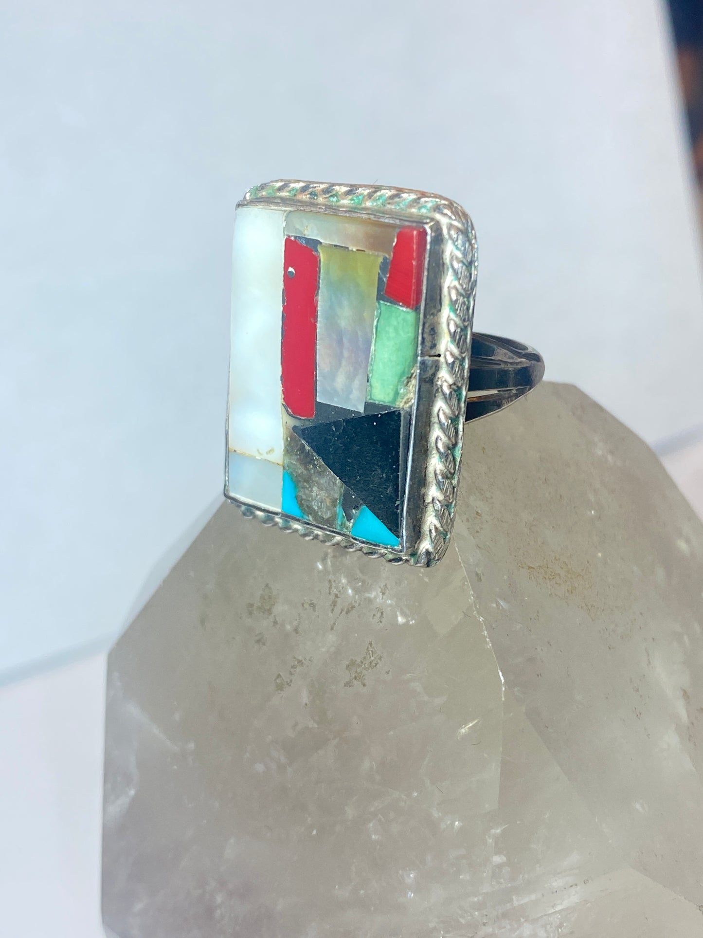 Navajo ring turquoise MOP Onyx coral southwest sterling silver women