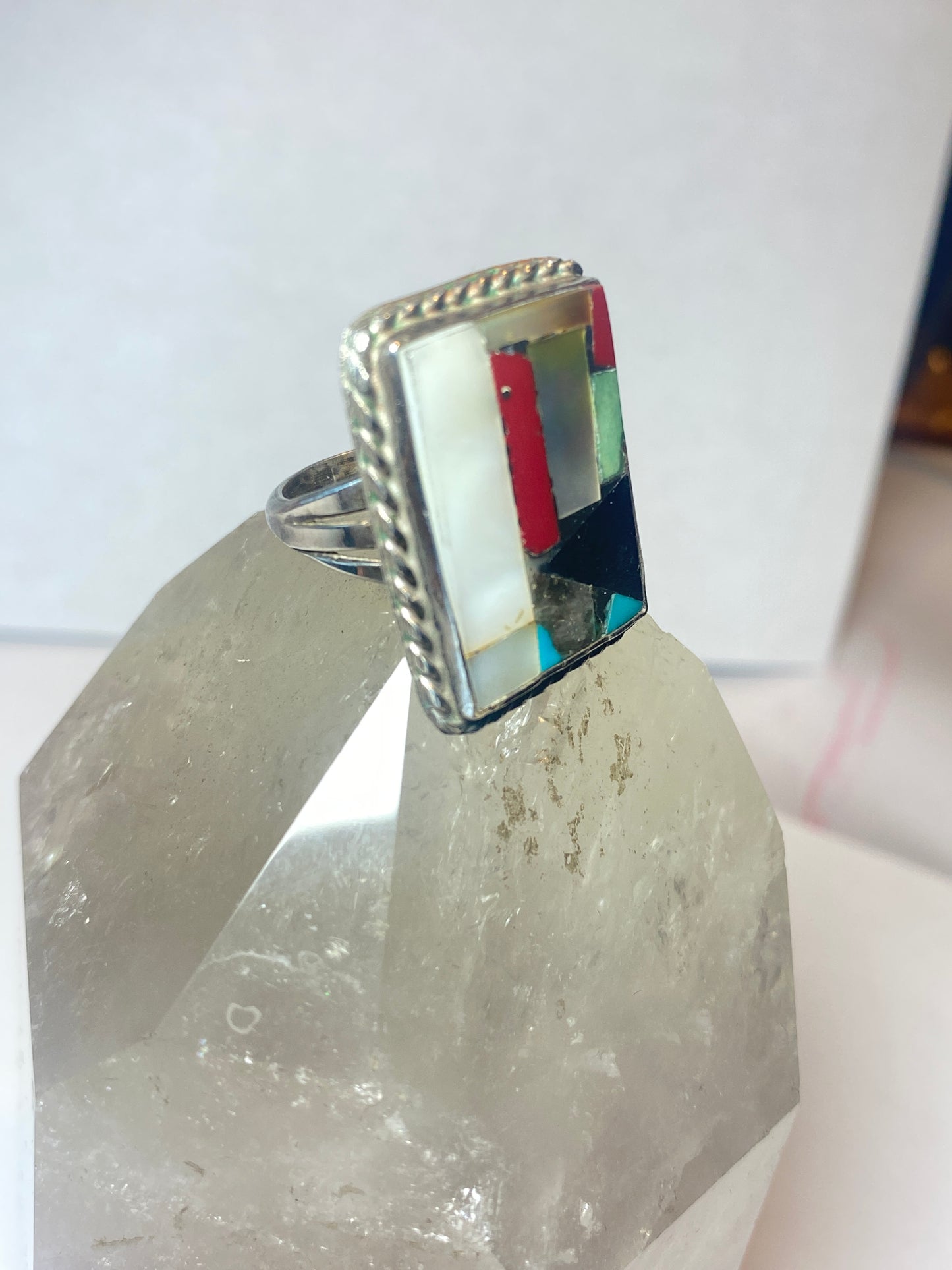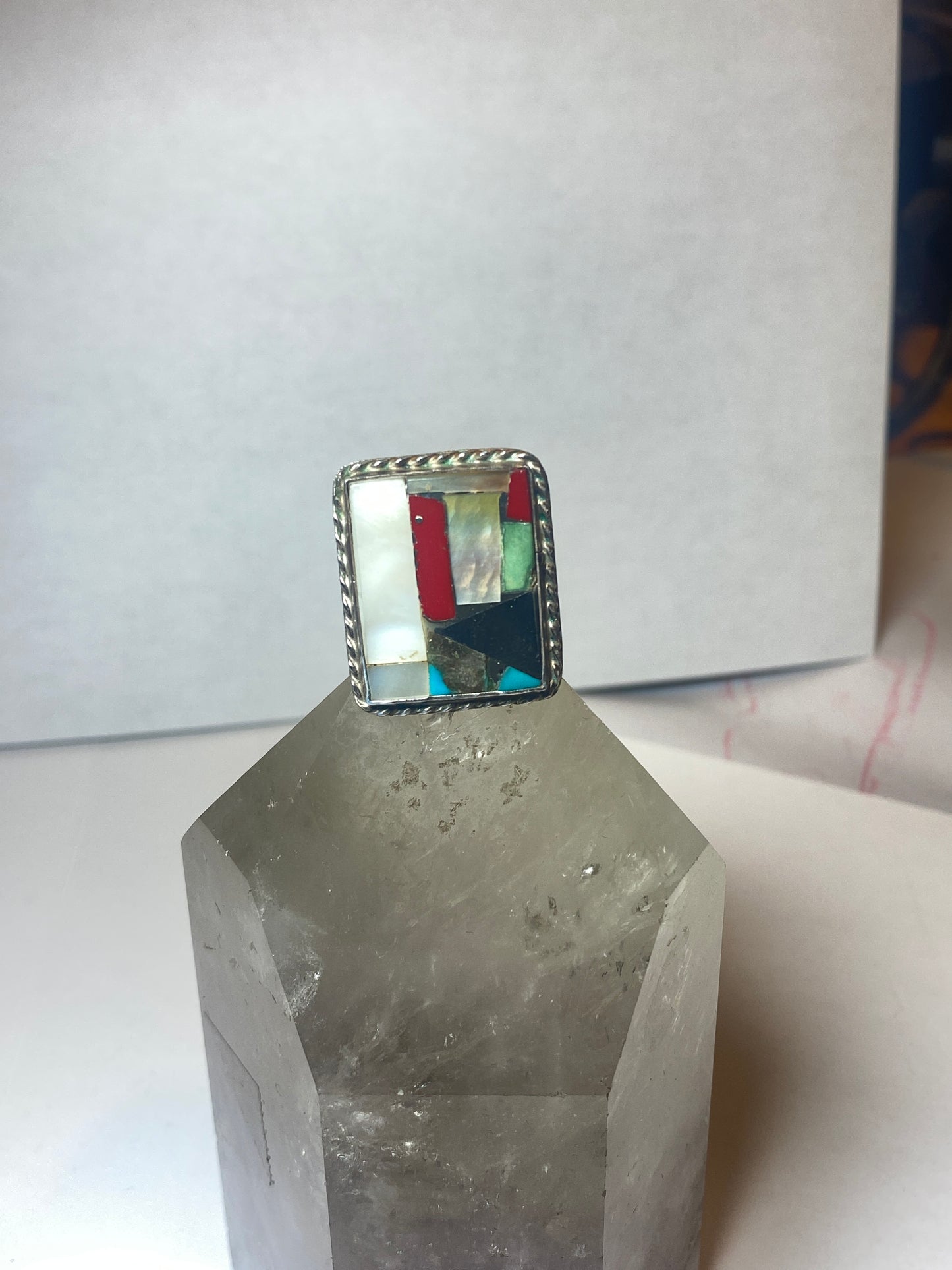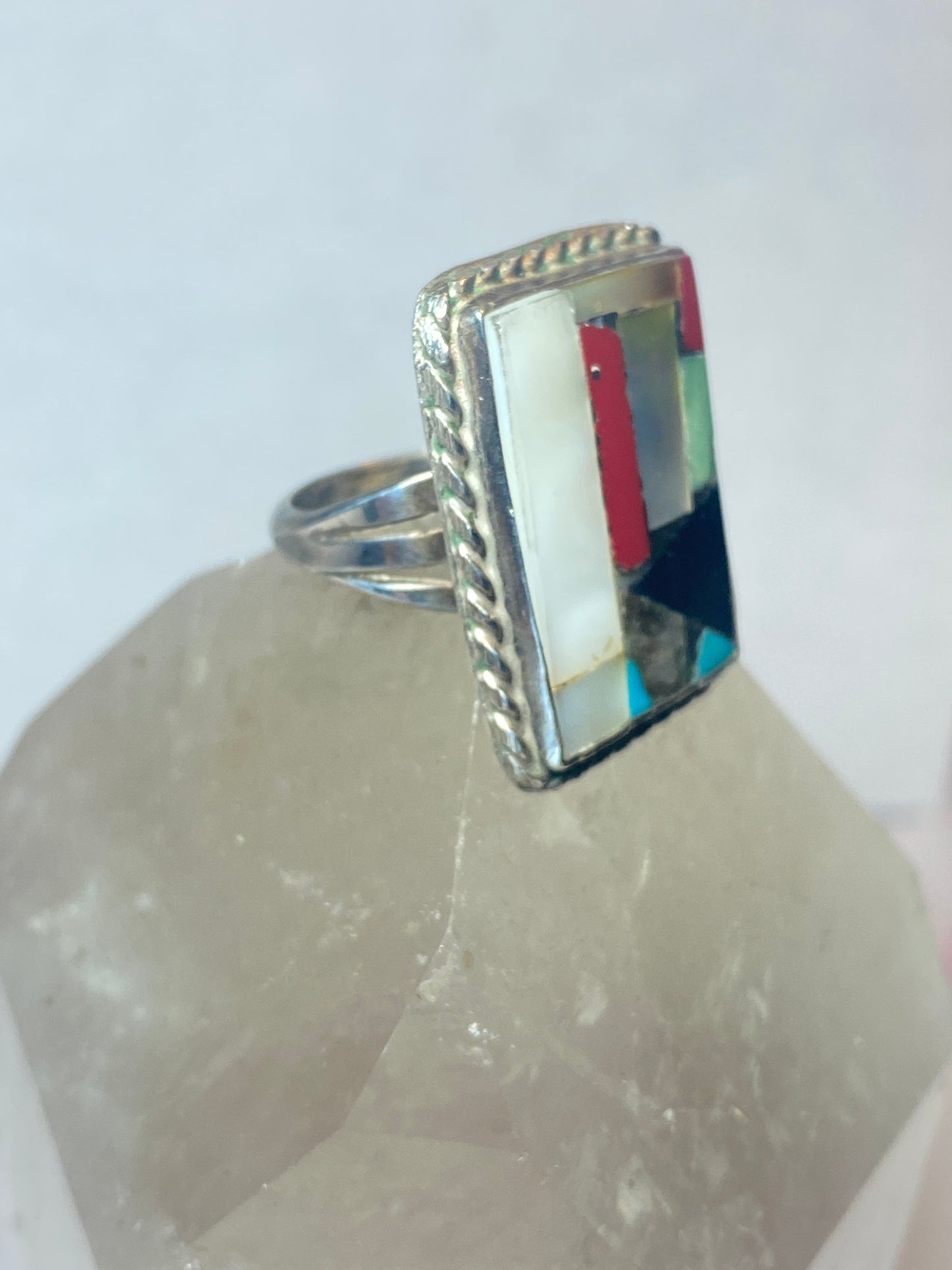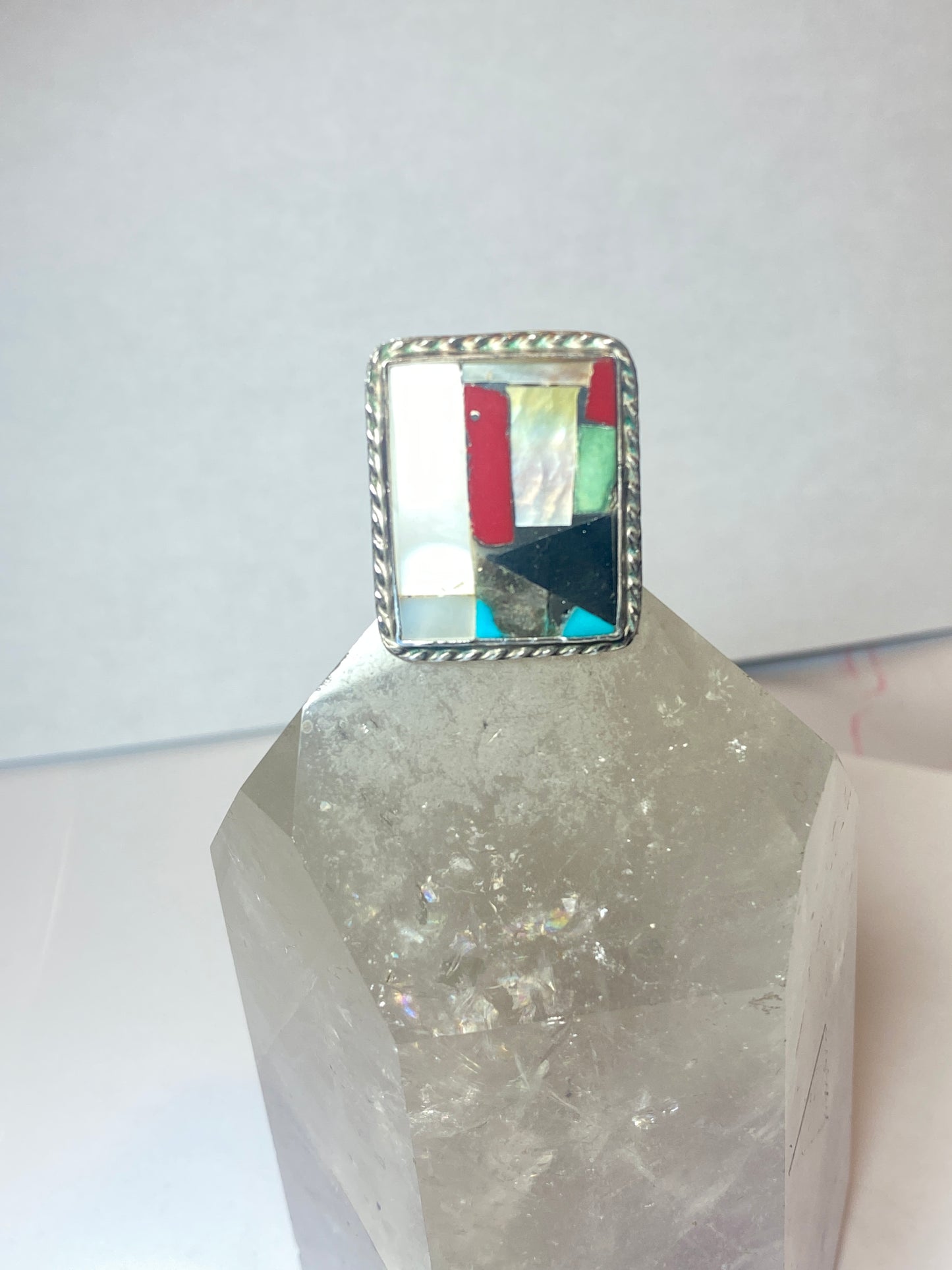 Navajo ring turquoise MOP Onyx coral southwest sterling silver women