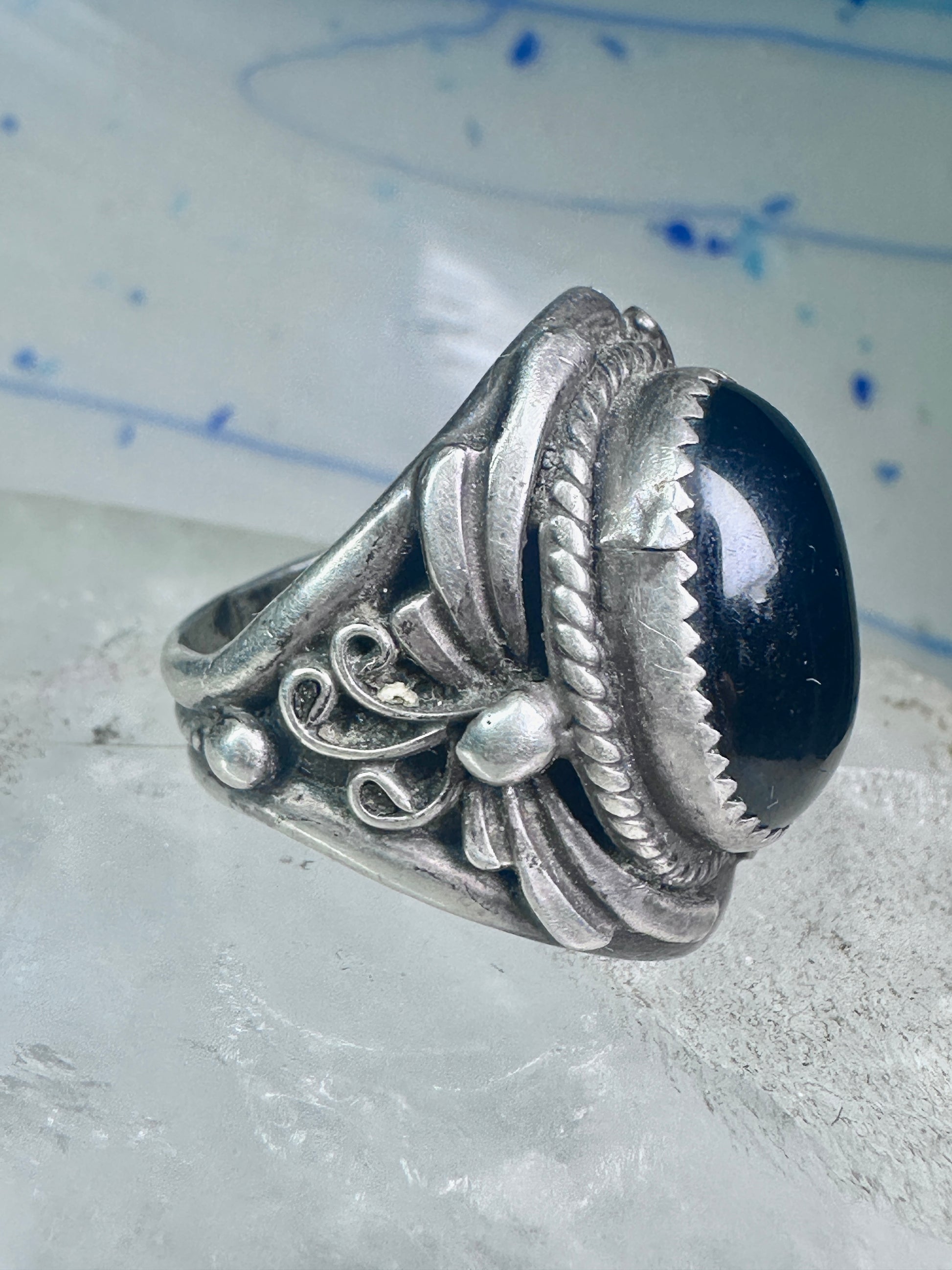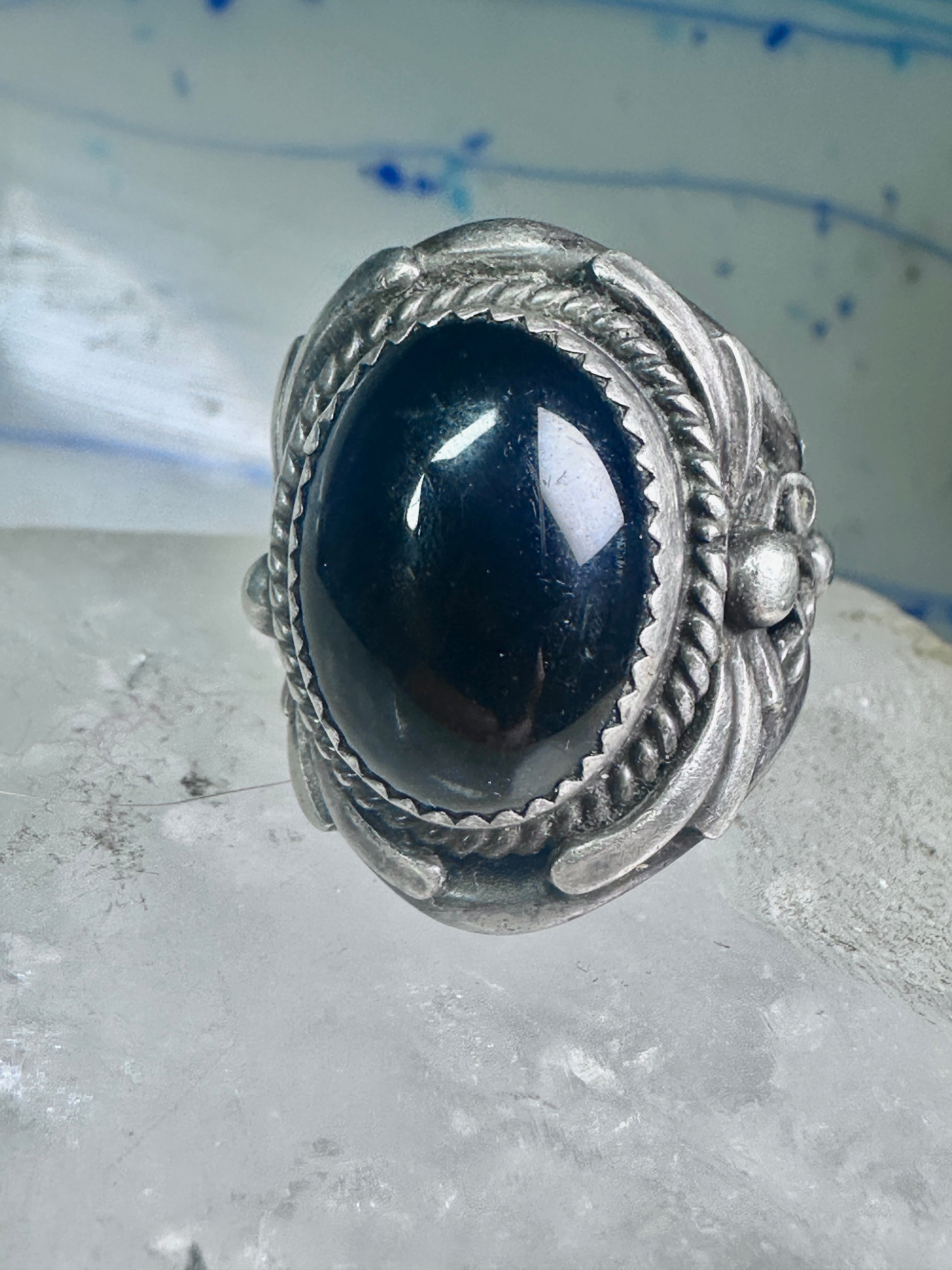 Navajo ring vintage onyx leaves band size 9.25 sterling silver women