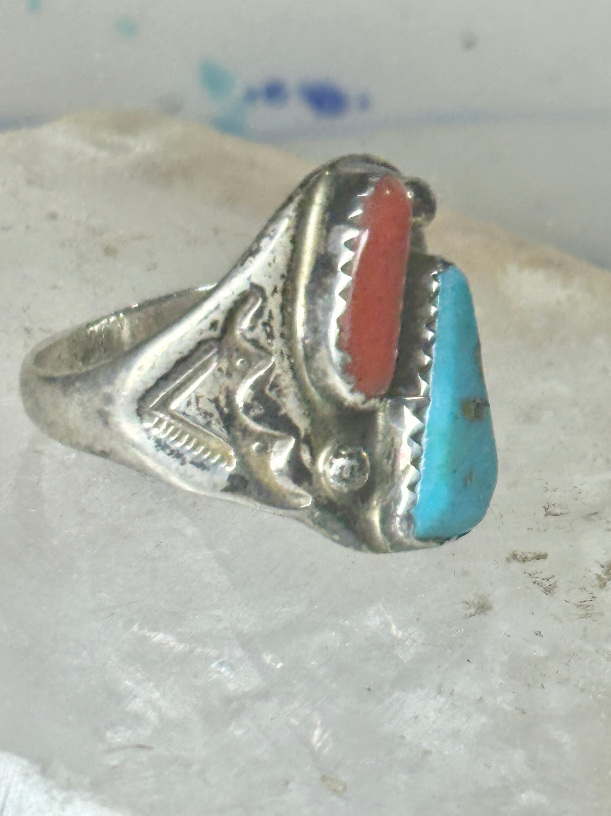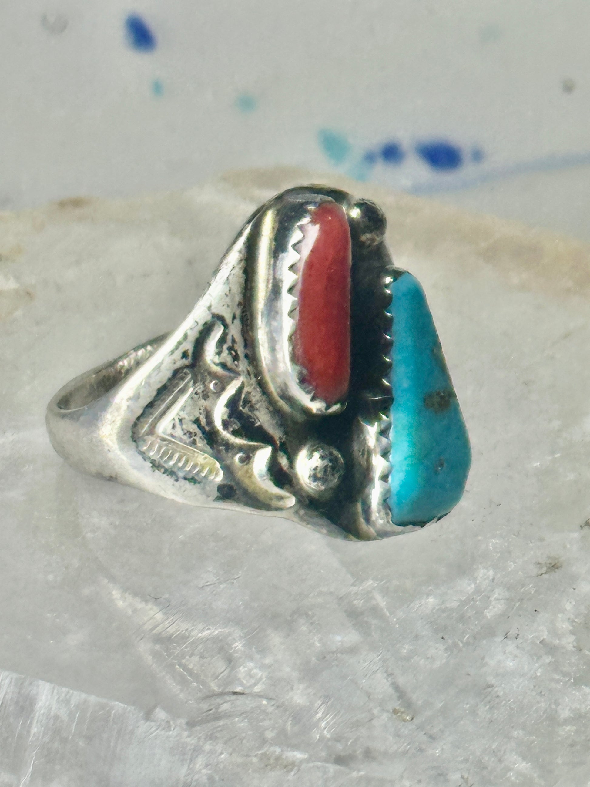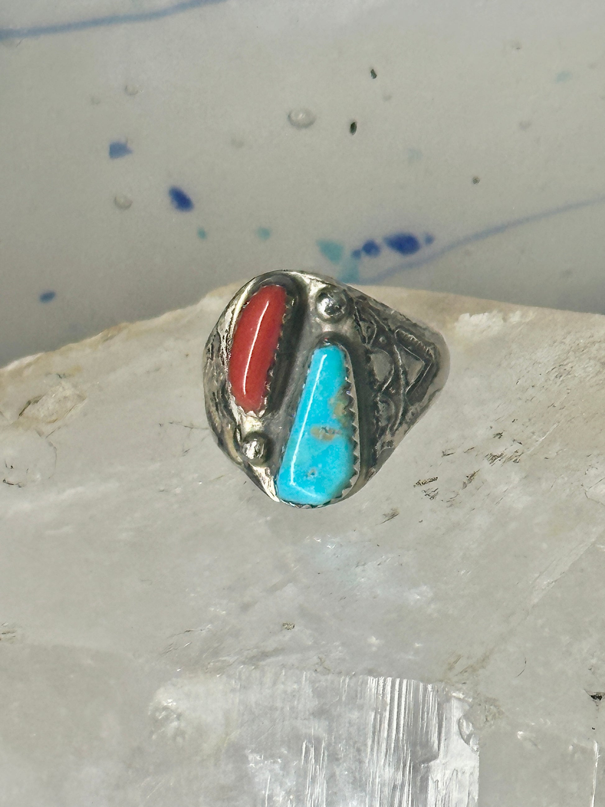 Navajo turquoise ring coral etched band size 9.5 sterling silver women men