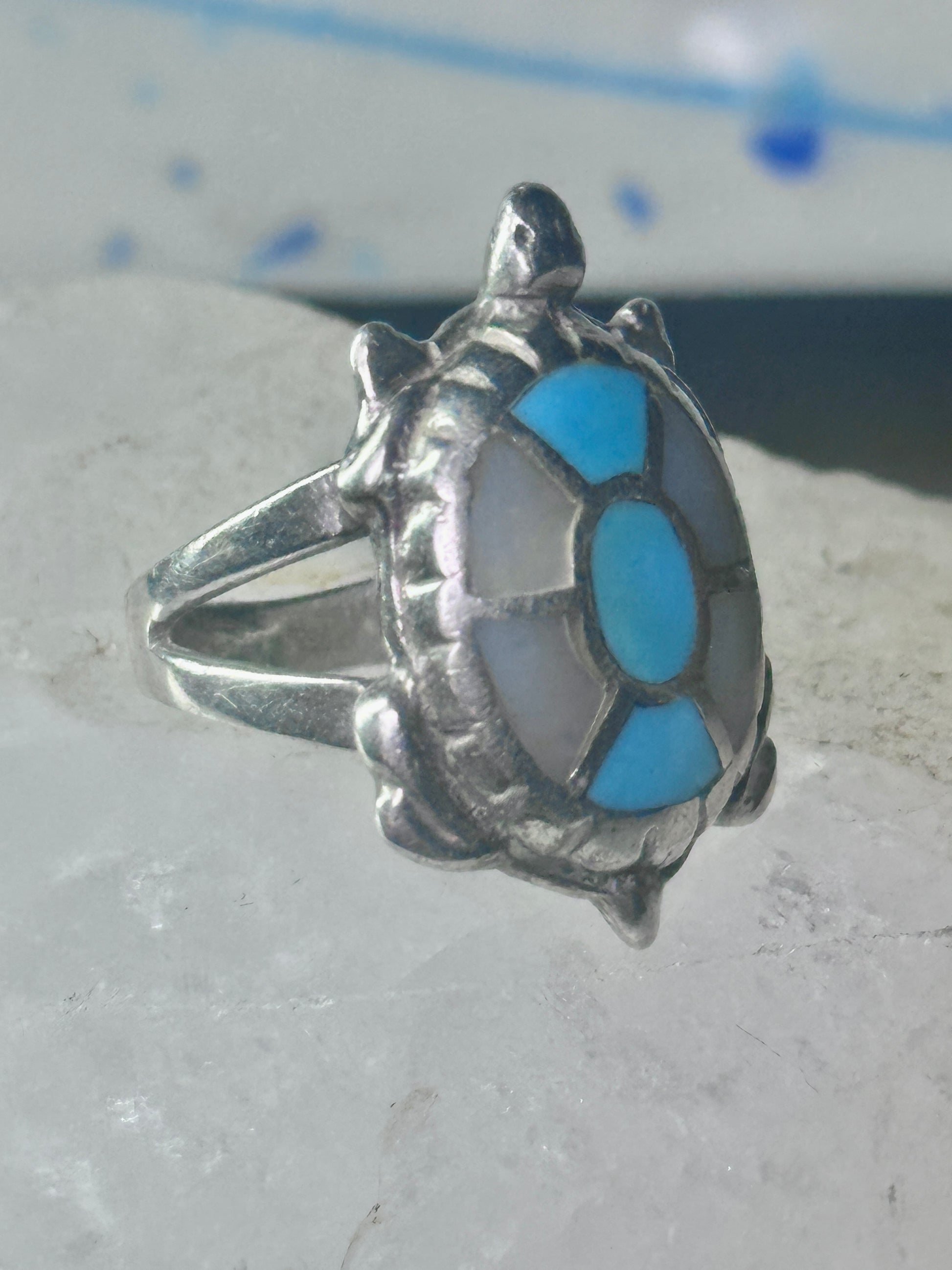 Navajo turtle Ring turquoise mop band size 7.50 sterling silver women girls