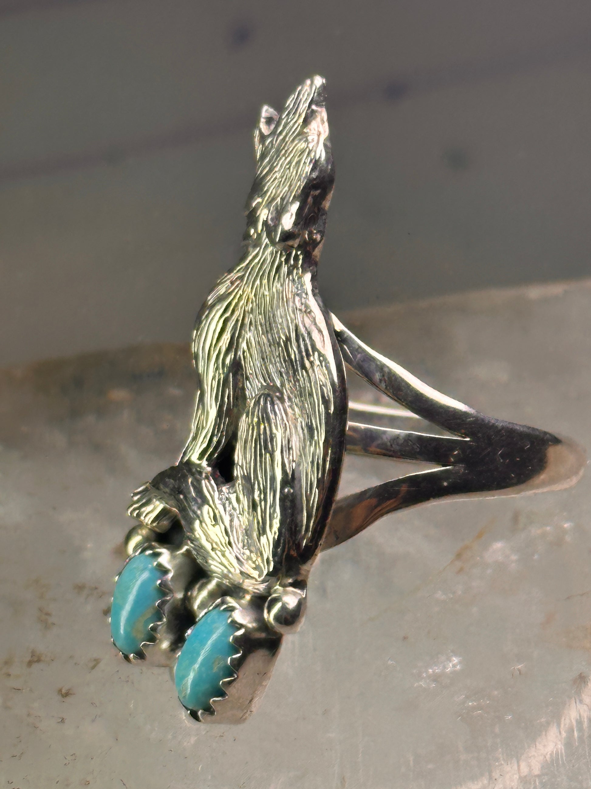 Navajo wolf Ring turquoise band size 8 sterling silver men women