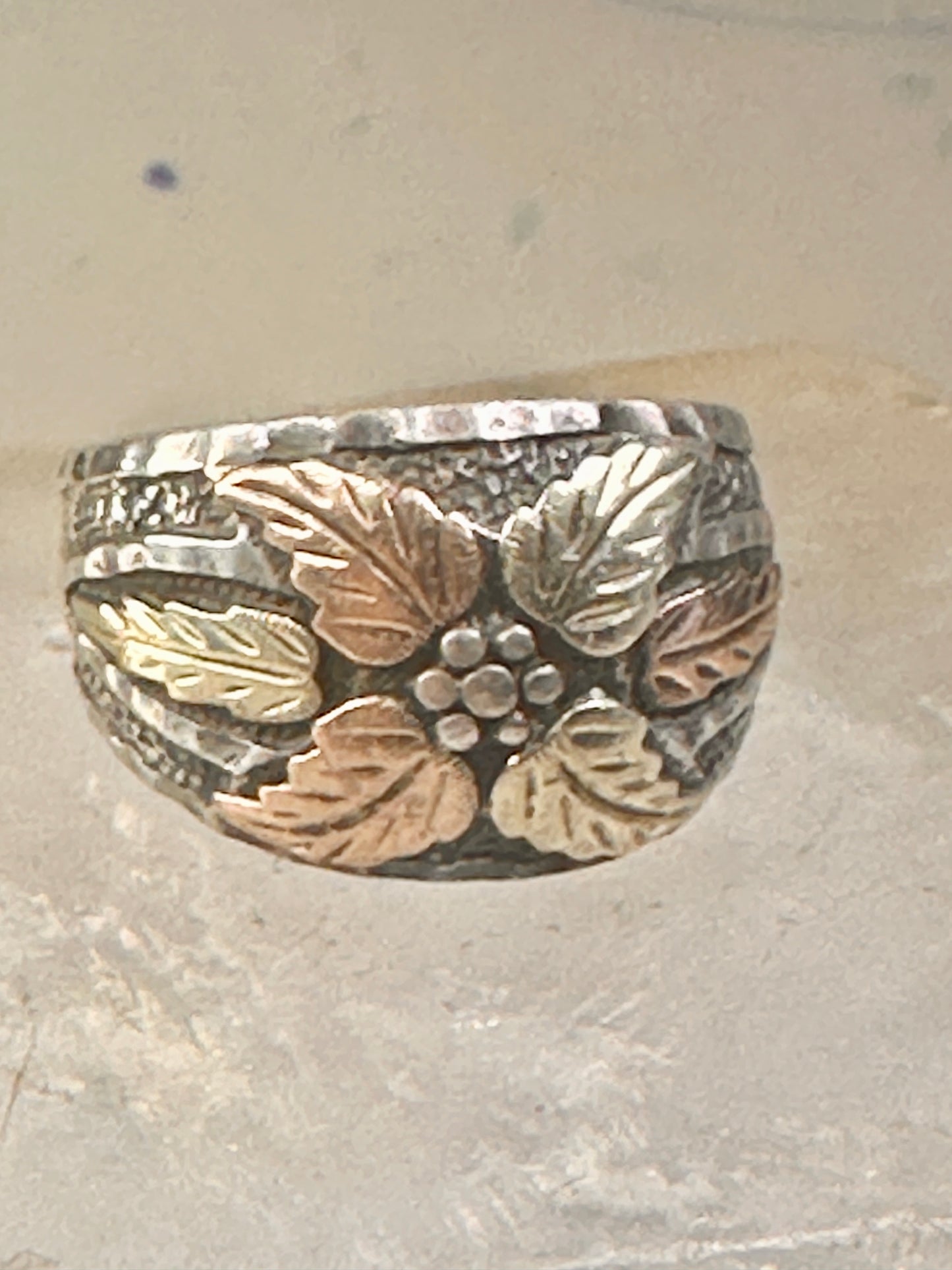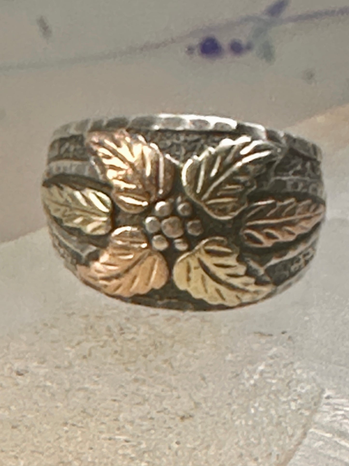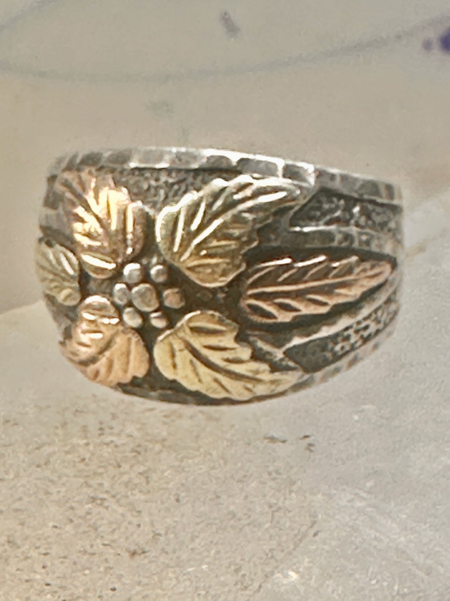 Black Hills Gold ring leaves band size 8.75 floral sterling silver women men
