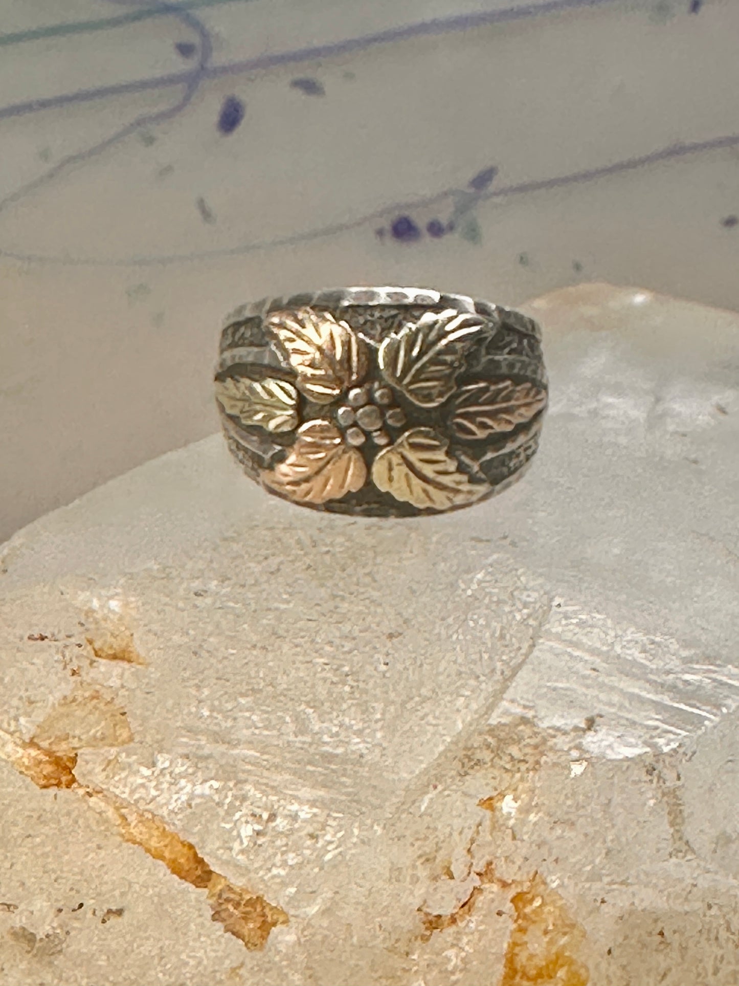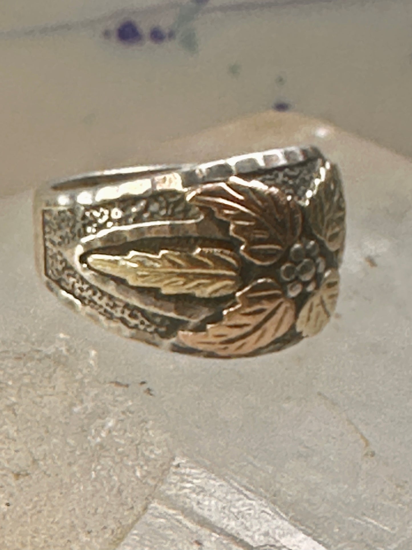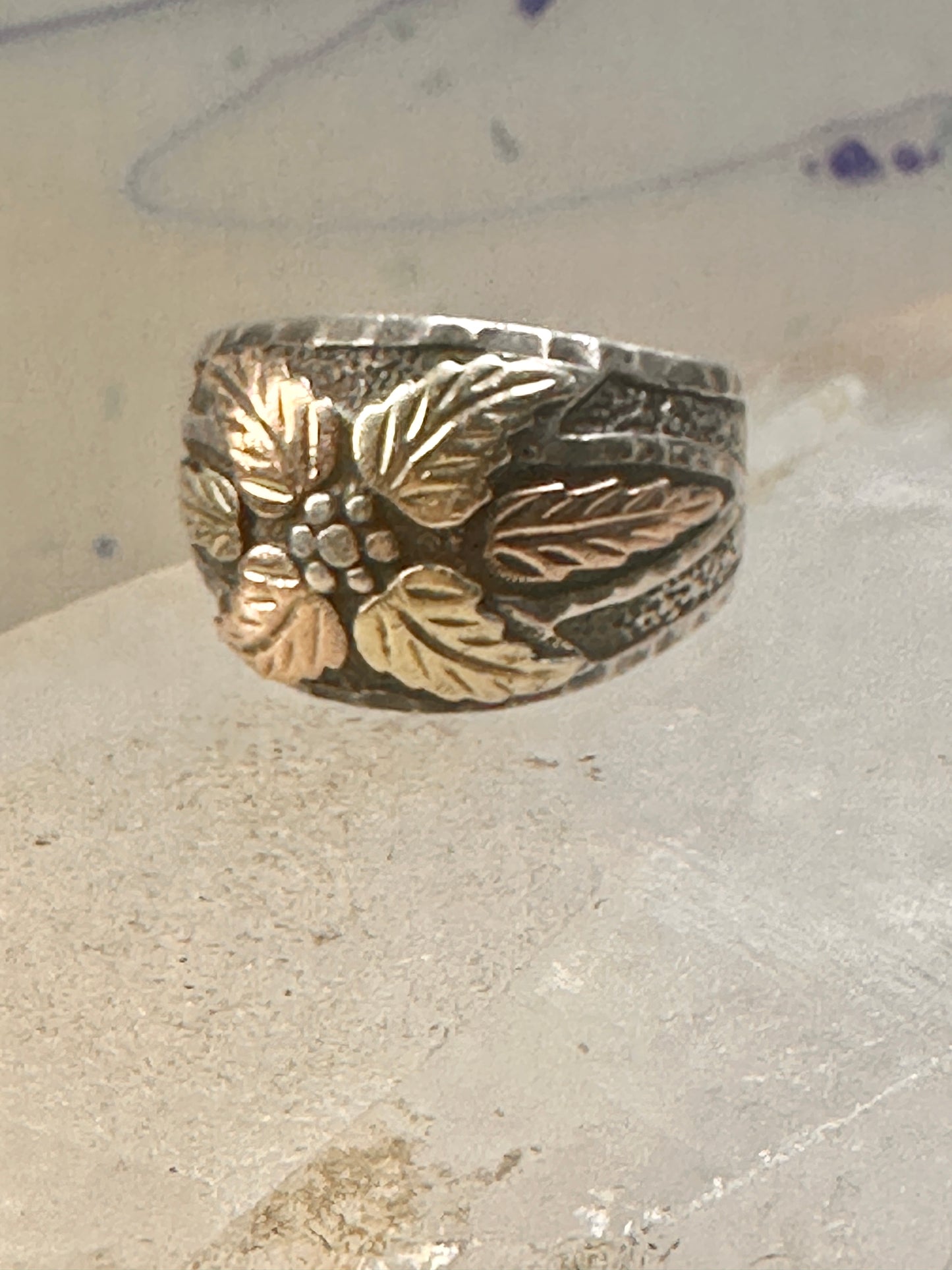 Black Hills Gold ring leaves band size 8.75 floral sterling silver women men