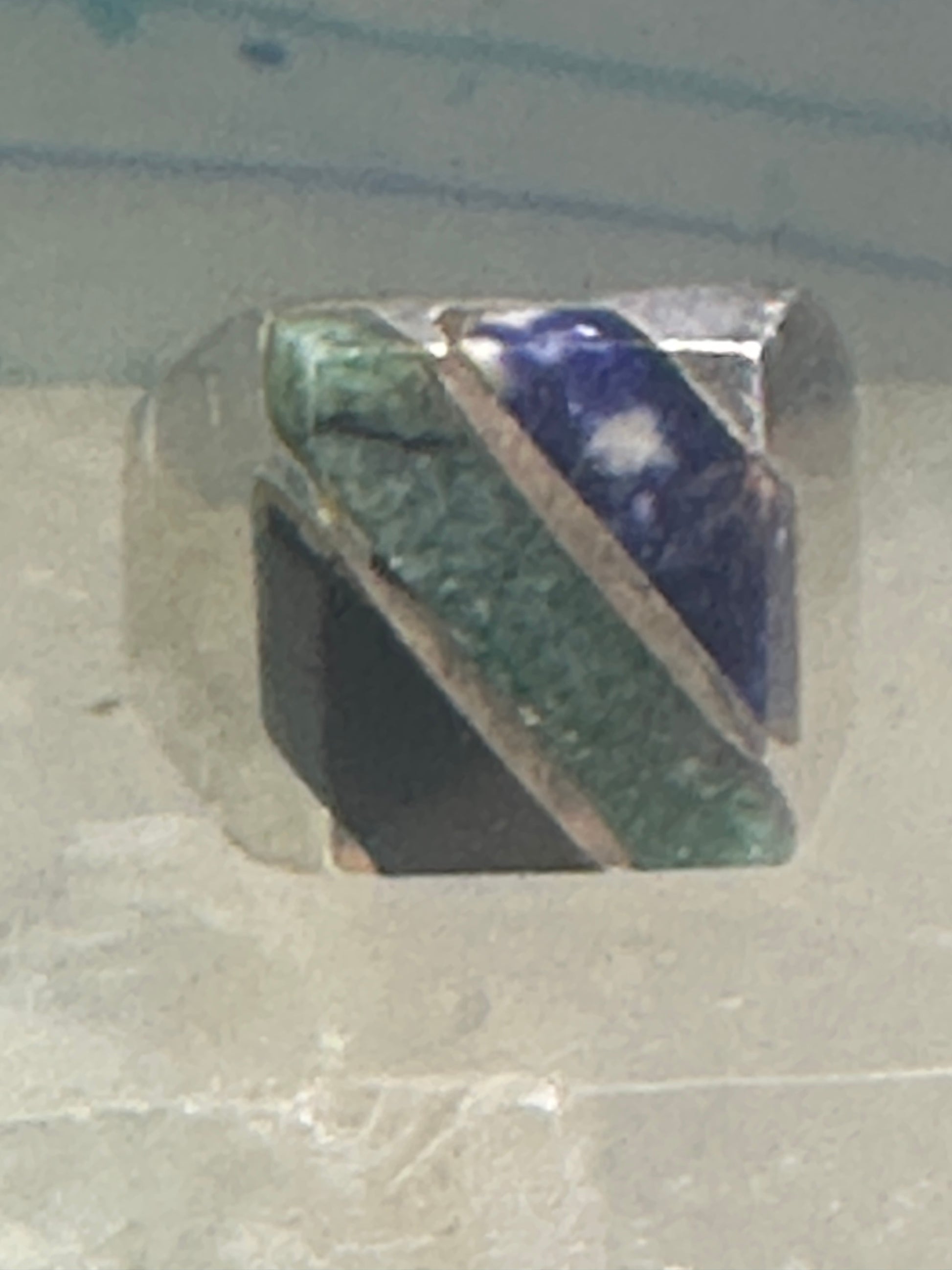 Onyx ring sodalite Mexico biker band size 10 sterling silver women men