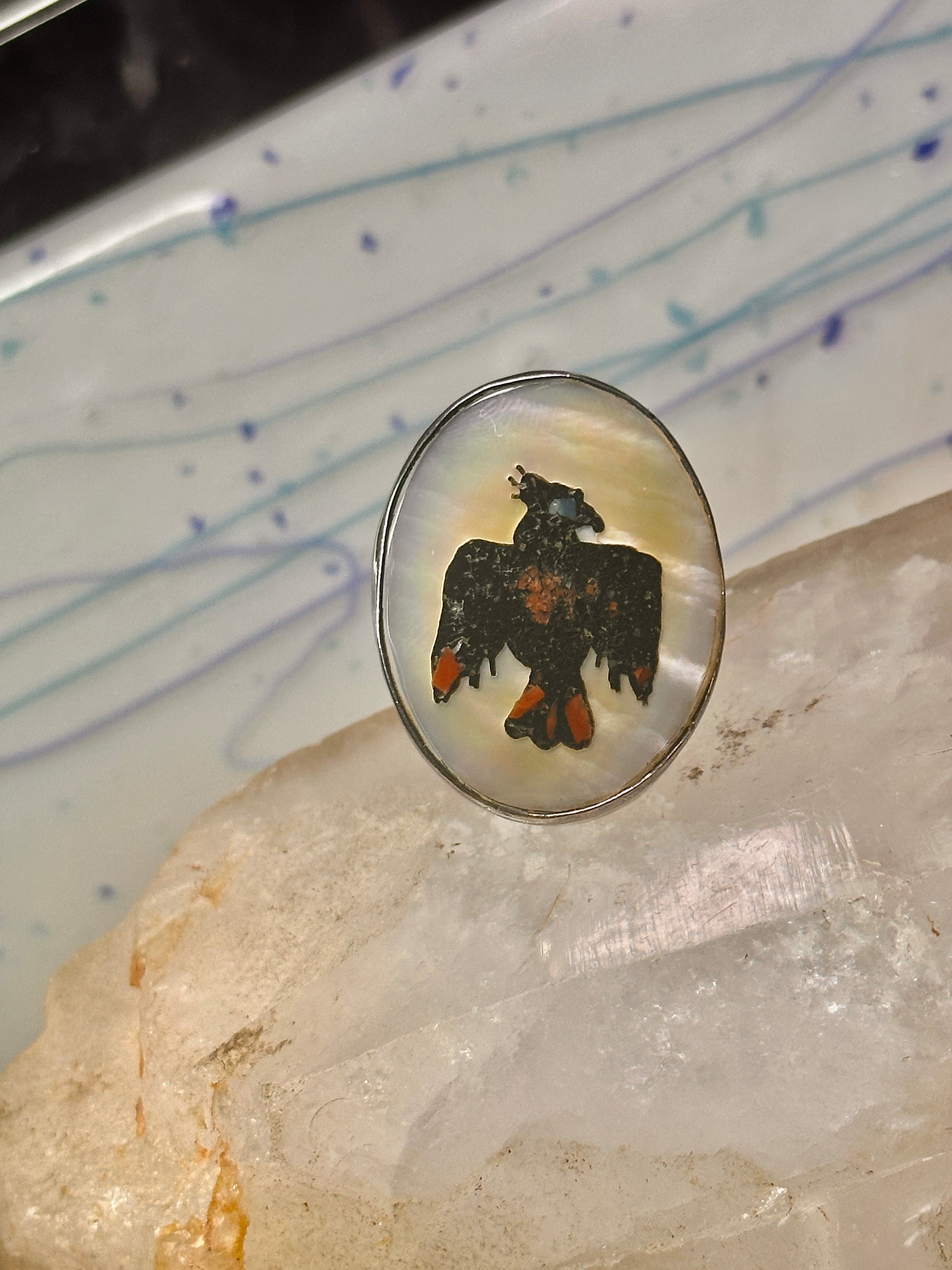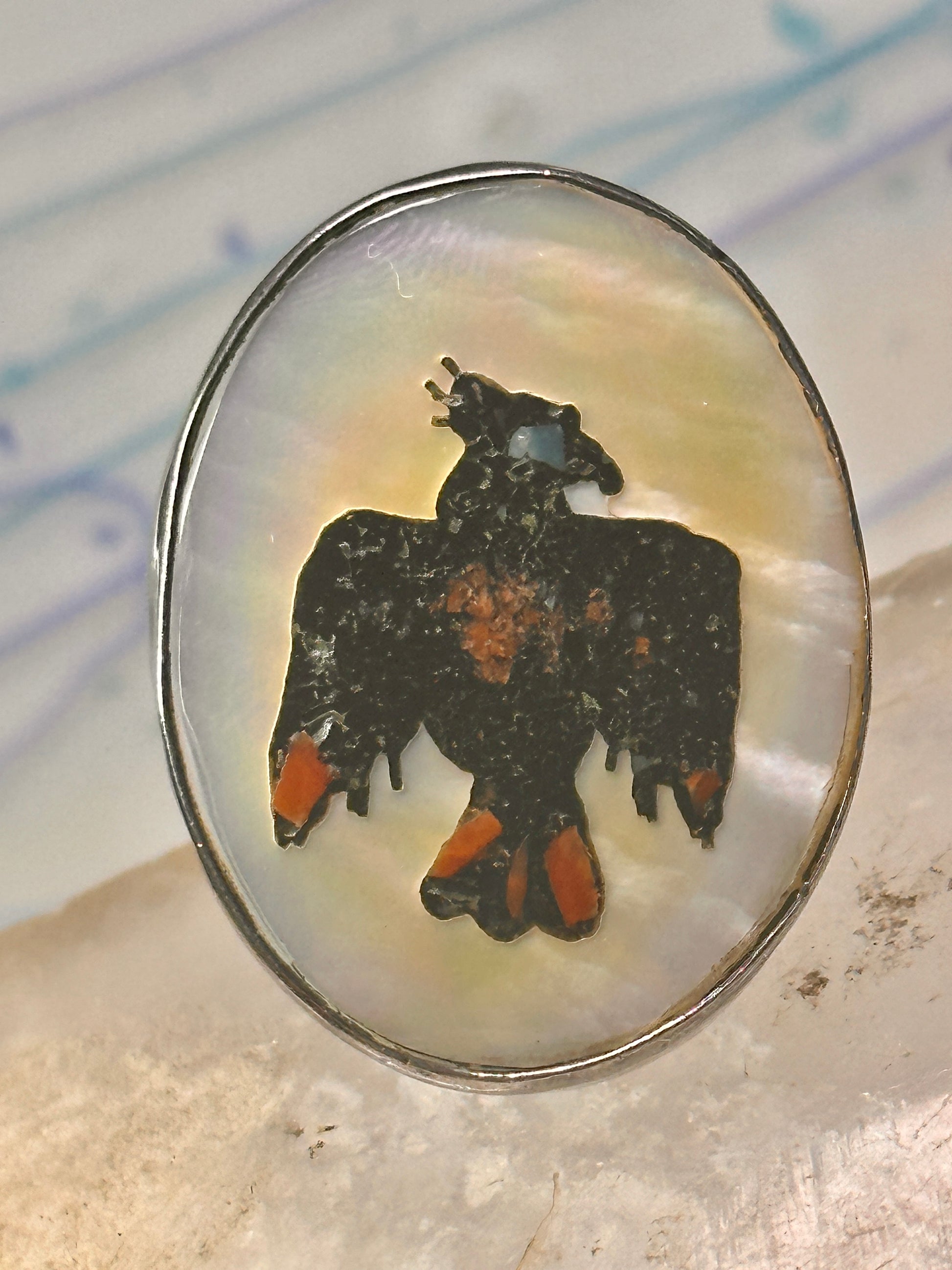 Peyote bird ring Phoenix Thunderbird band stampings size 6.50 sterling silver men women