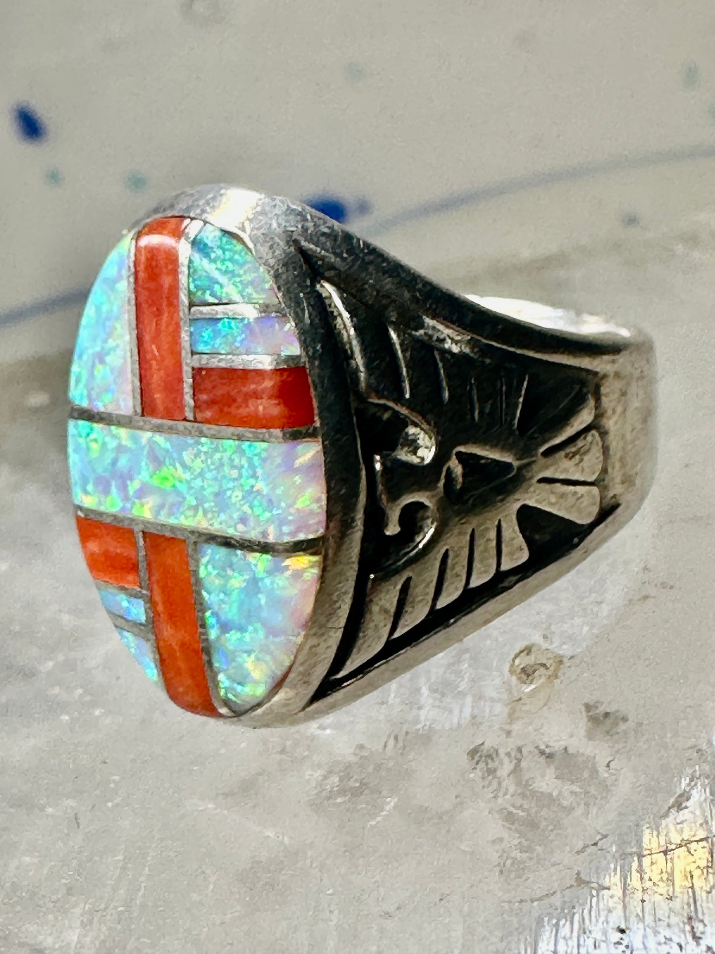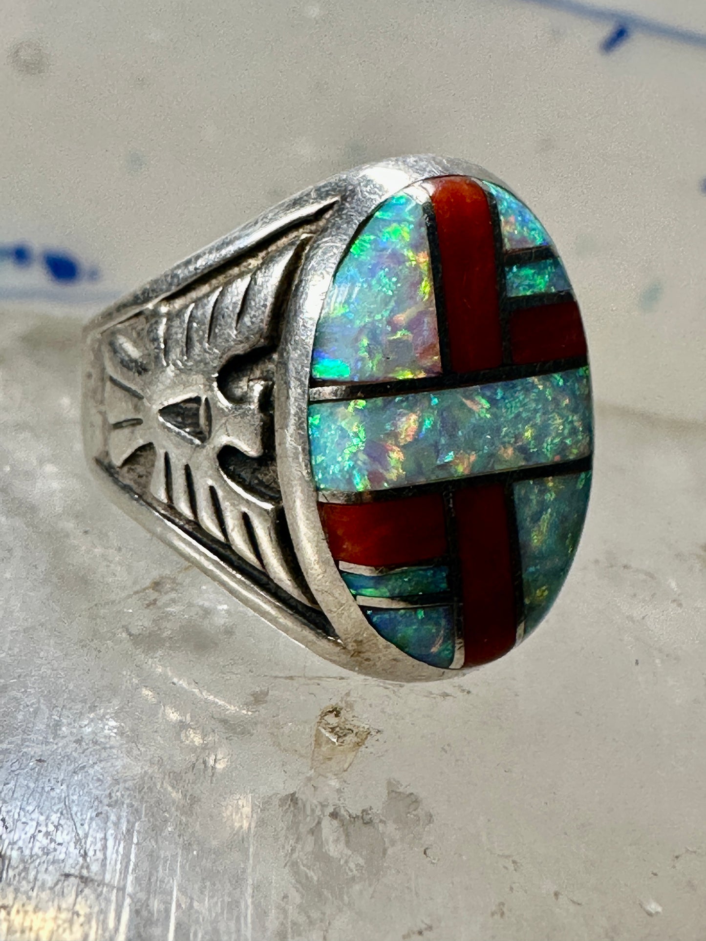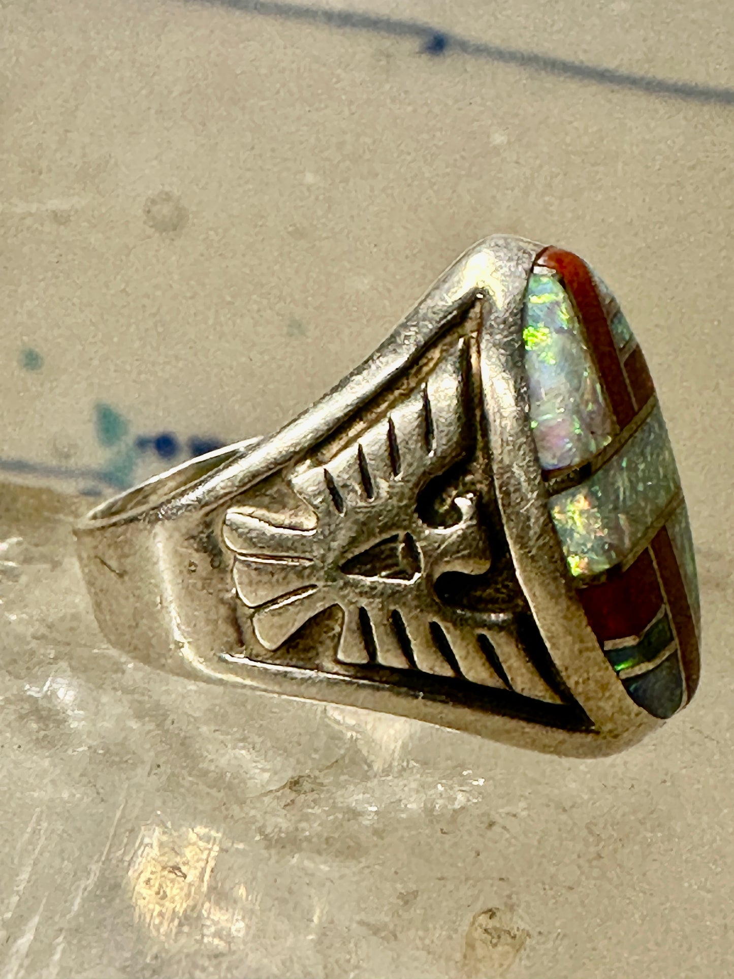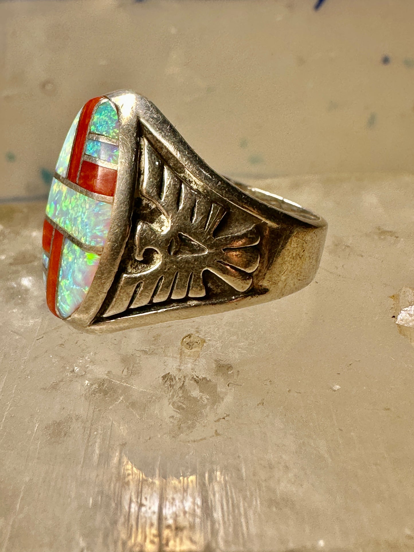 Phoenix ring Lab opal size 7.50 southwestern sterling silver women