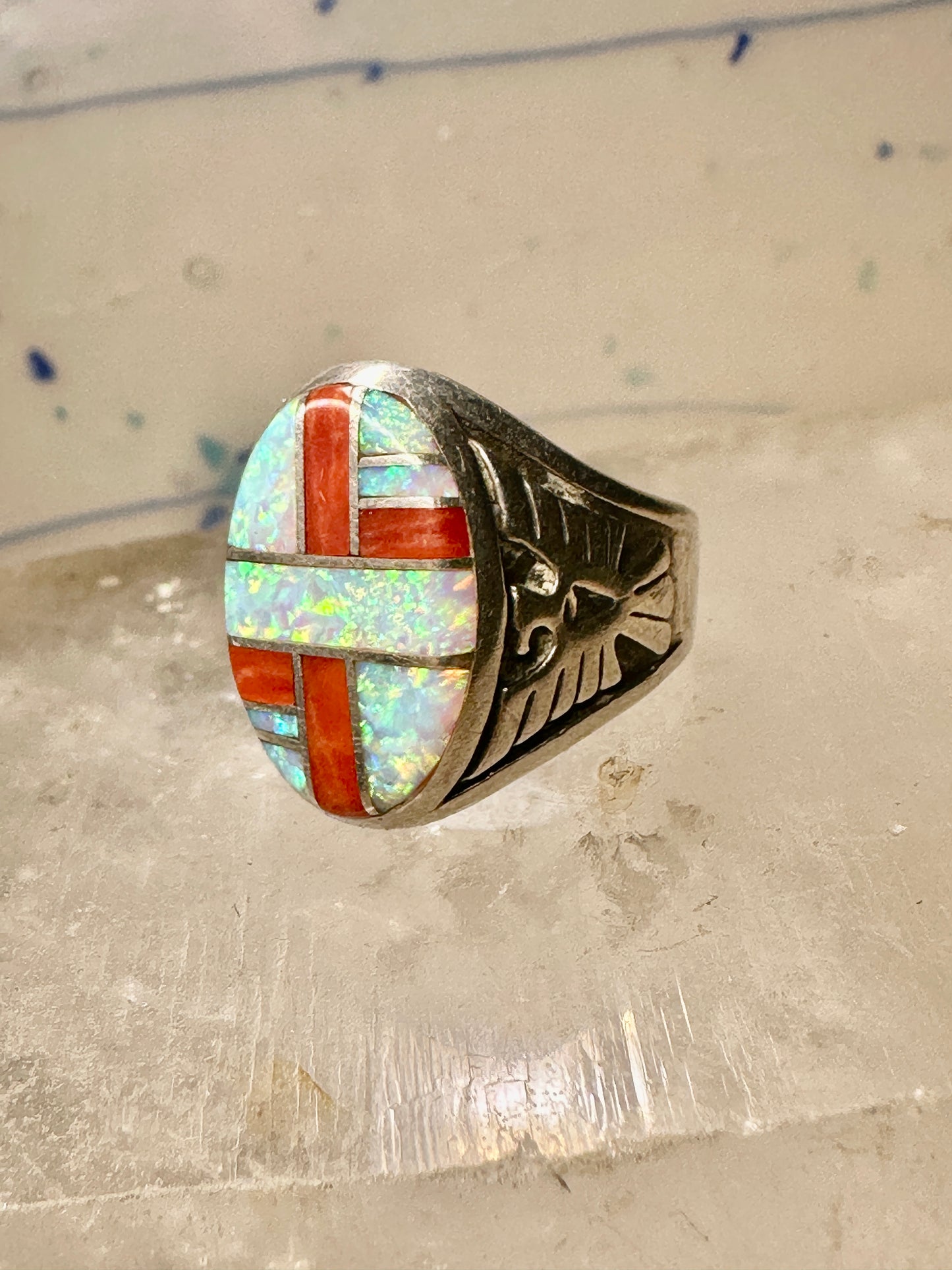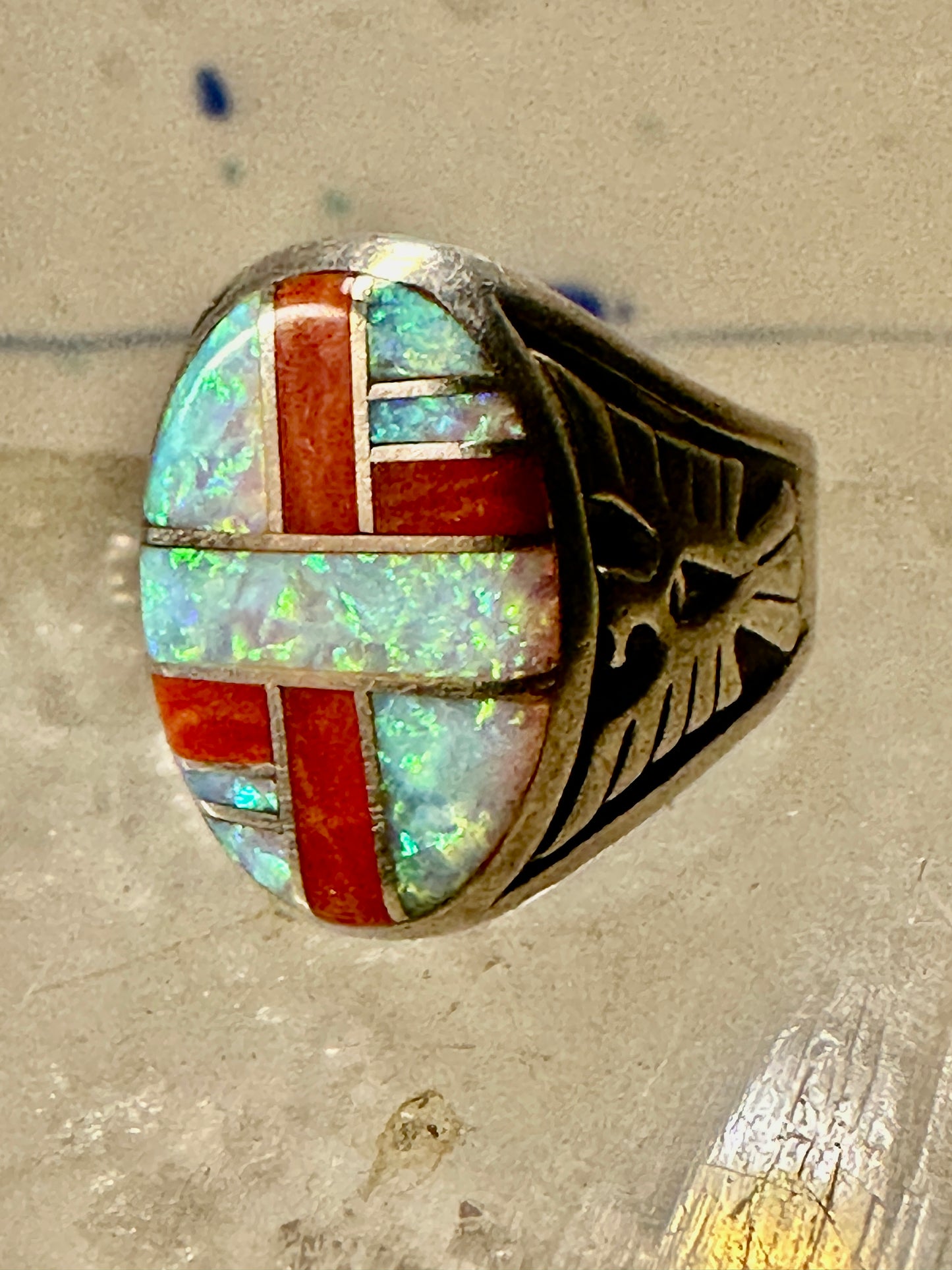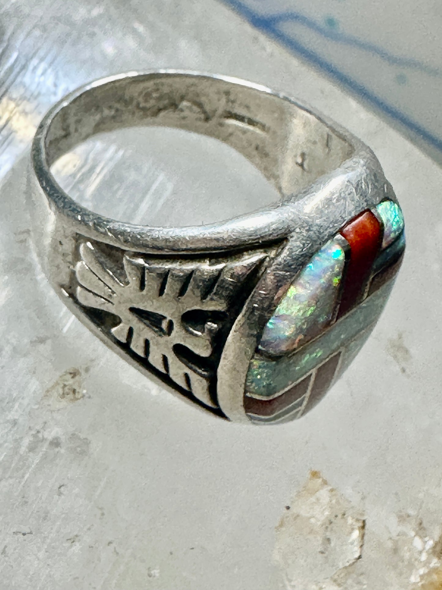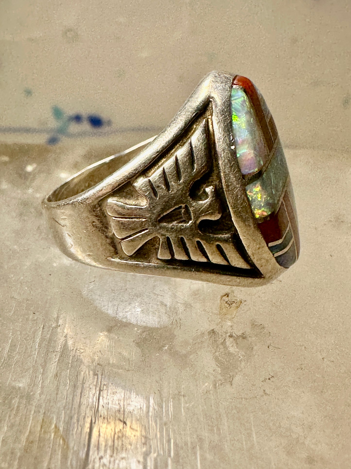 Phoenix ring Lab opal size 7.50 southwestern sterling silver women