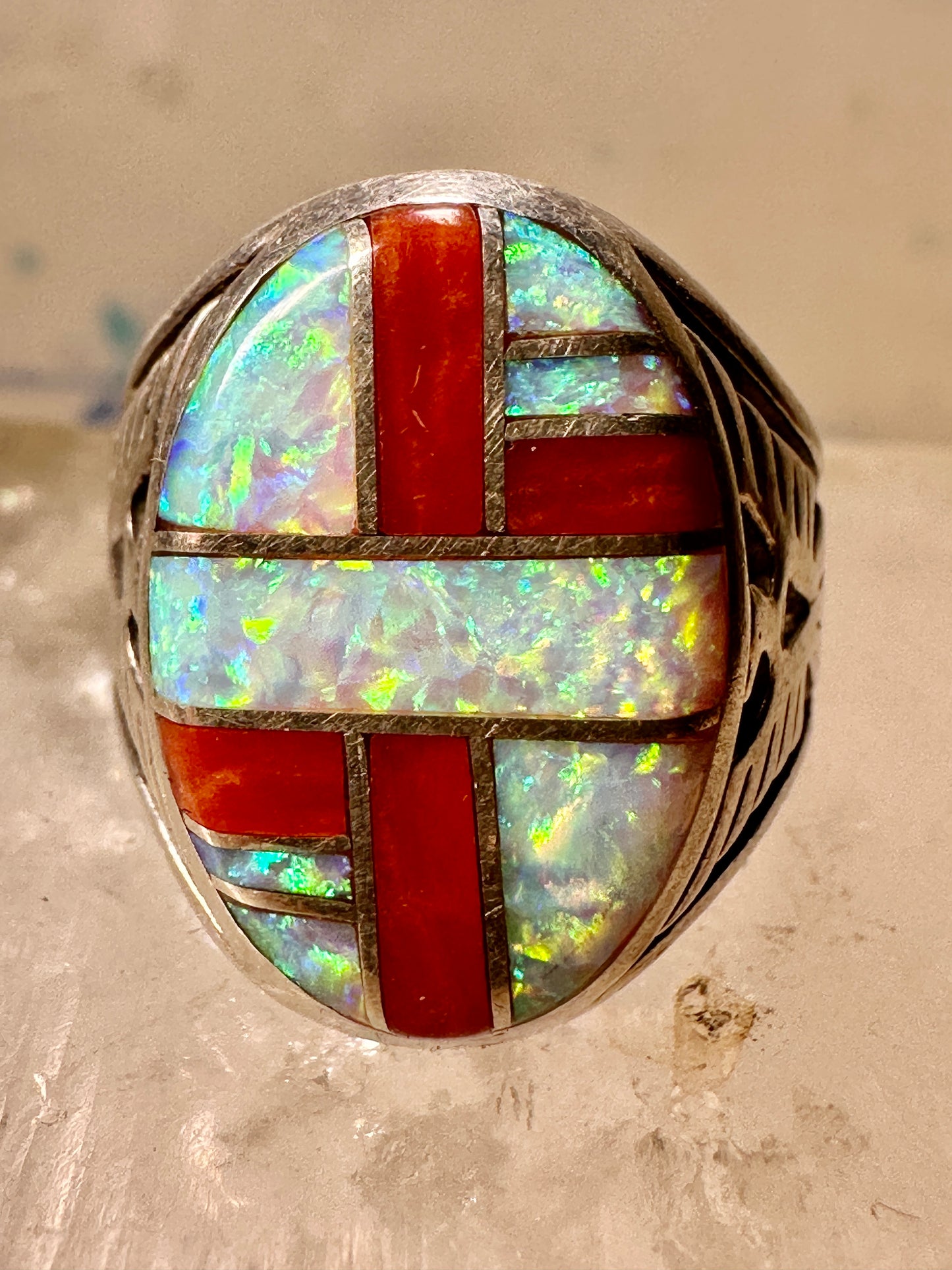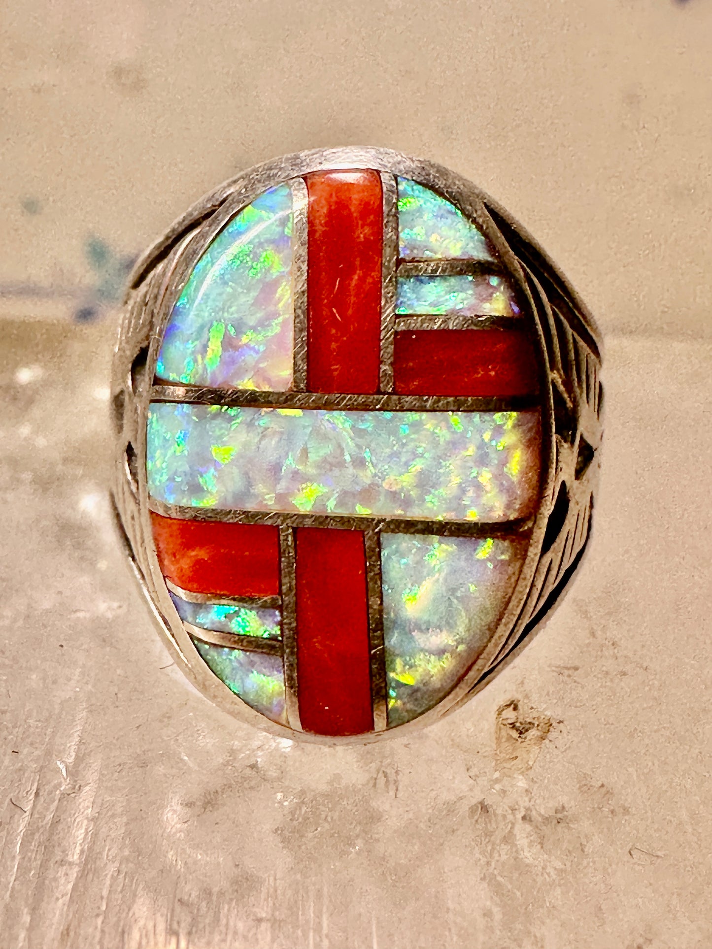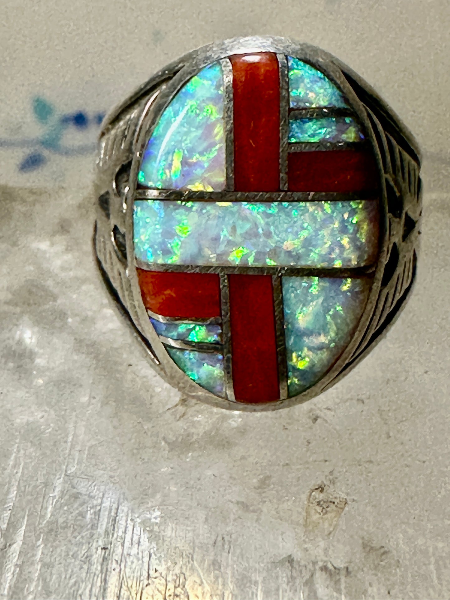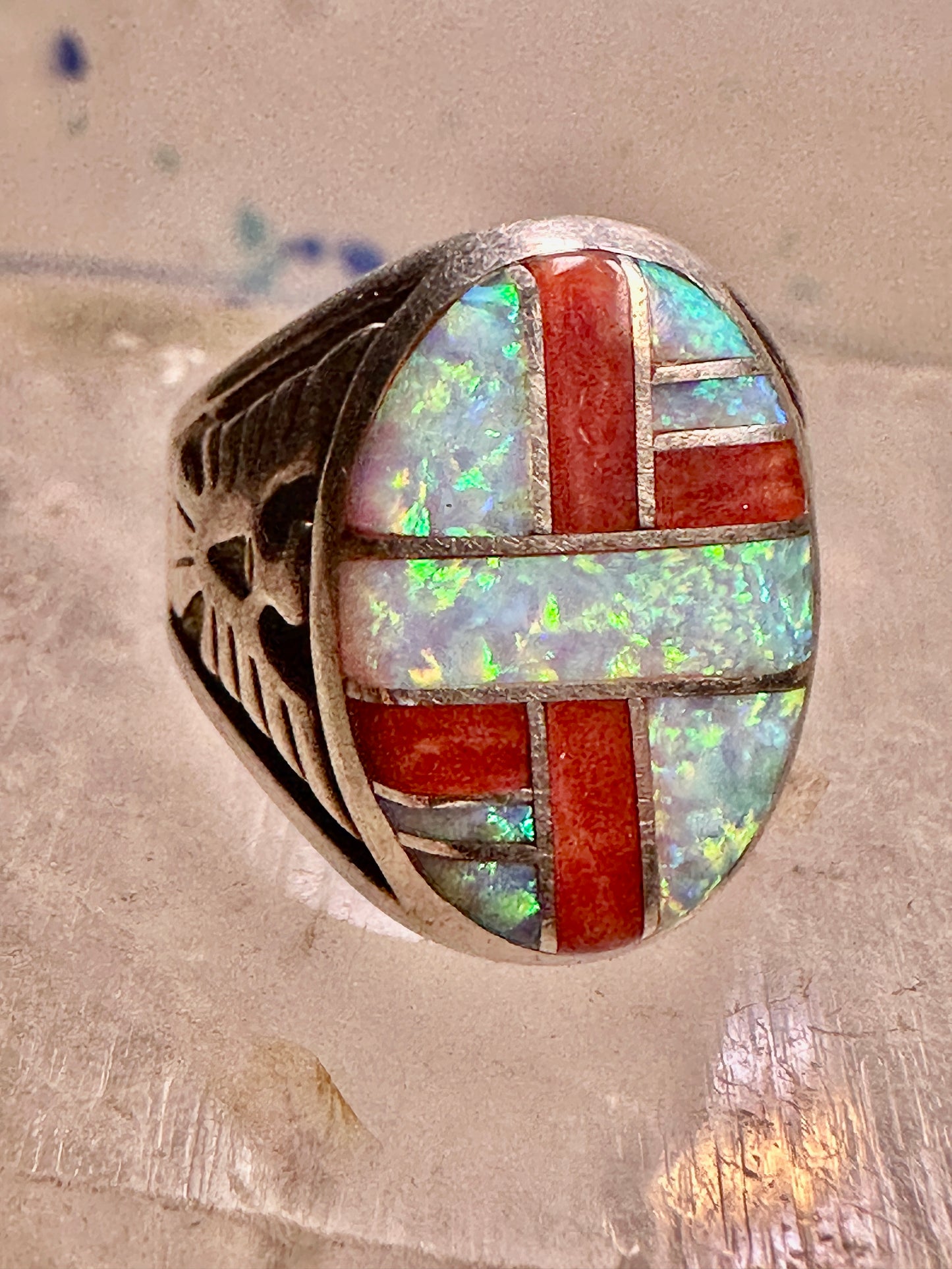 Phoenix ring Lab opal size 7.50 southwestern sterling silver women
