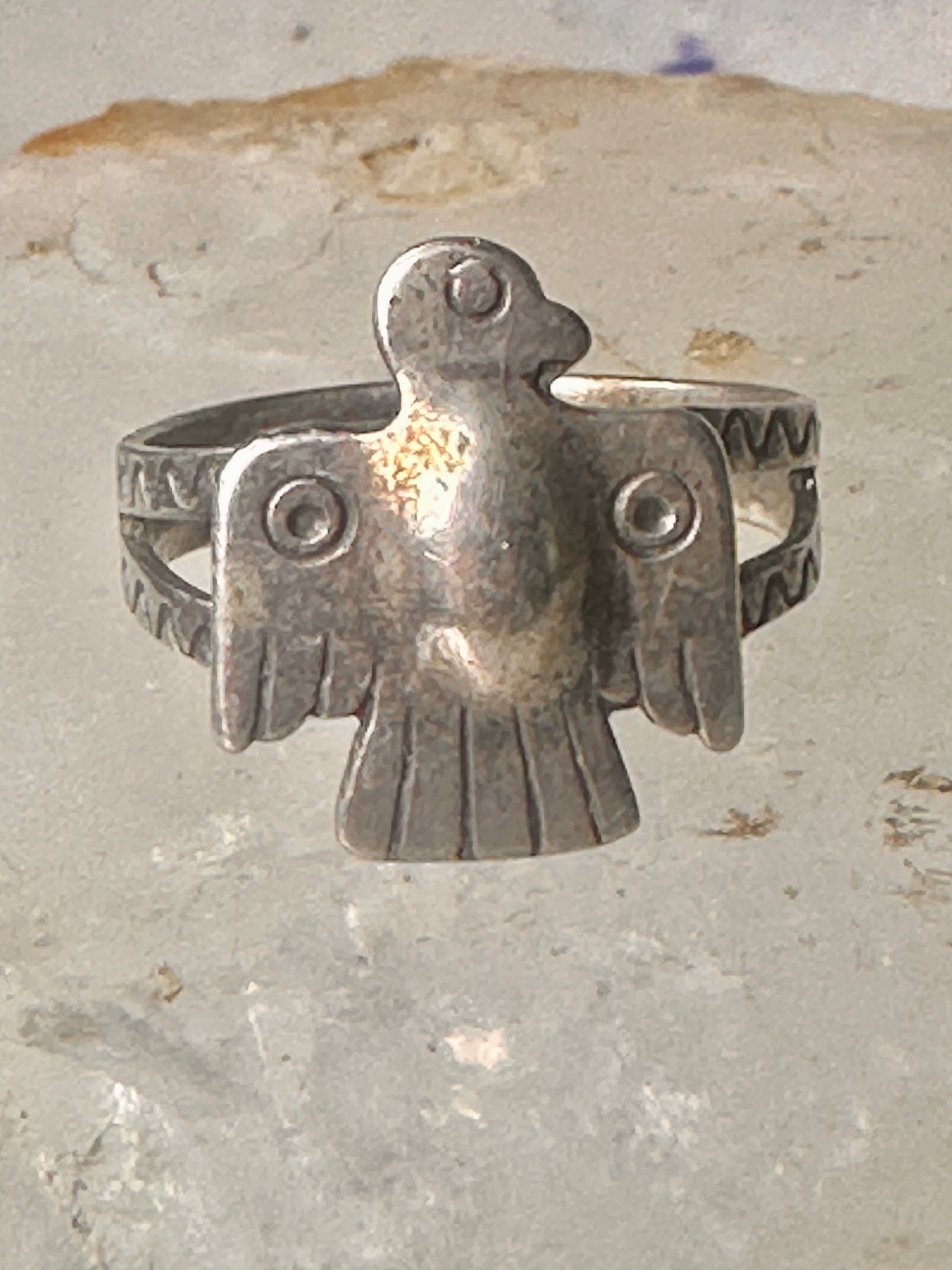 Phoenix ring Navajo Thunderbird band size 7.5 sterling silver women girls pinky
