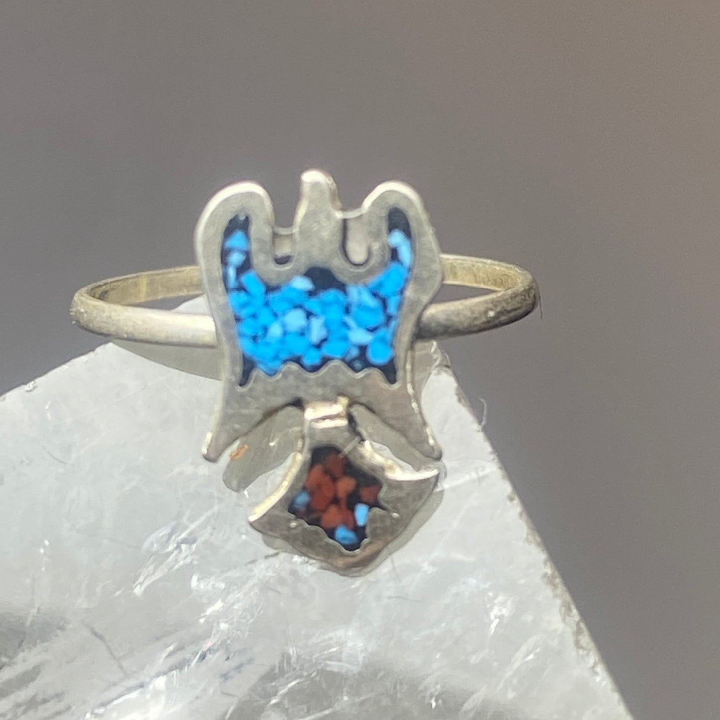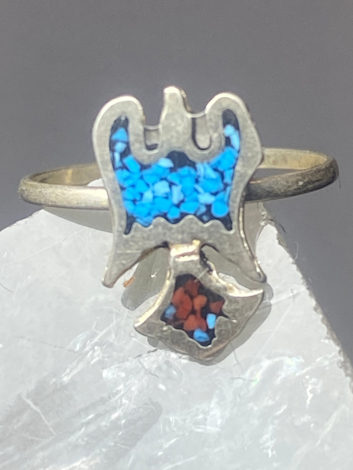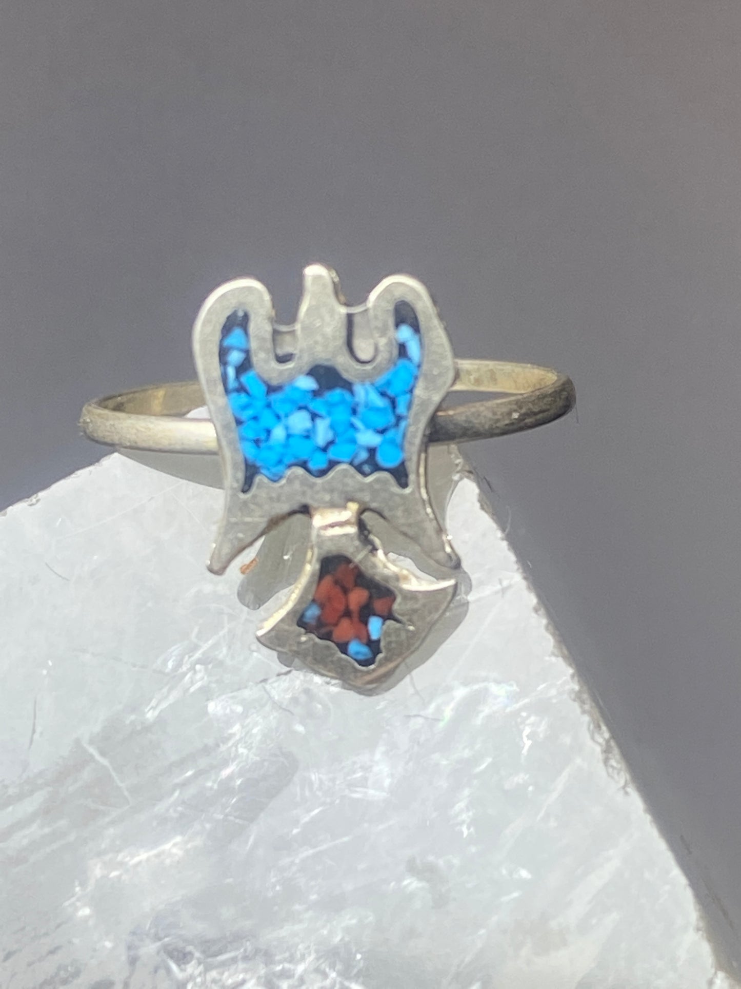 Phoenix ring turquoise coral chips southwest sterling silver women girls e