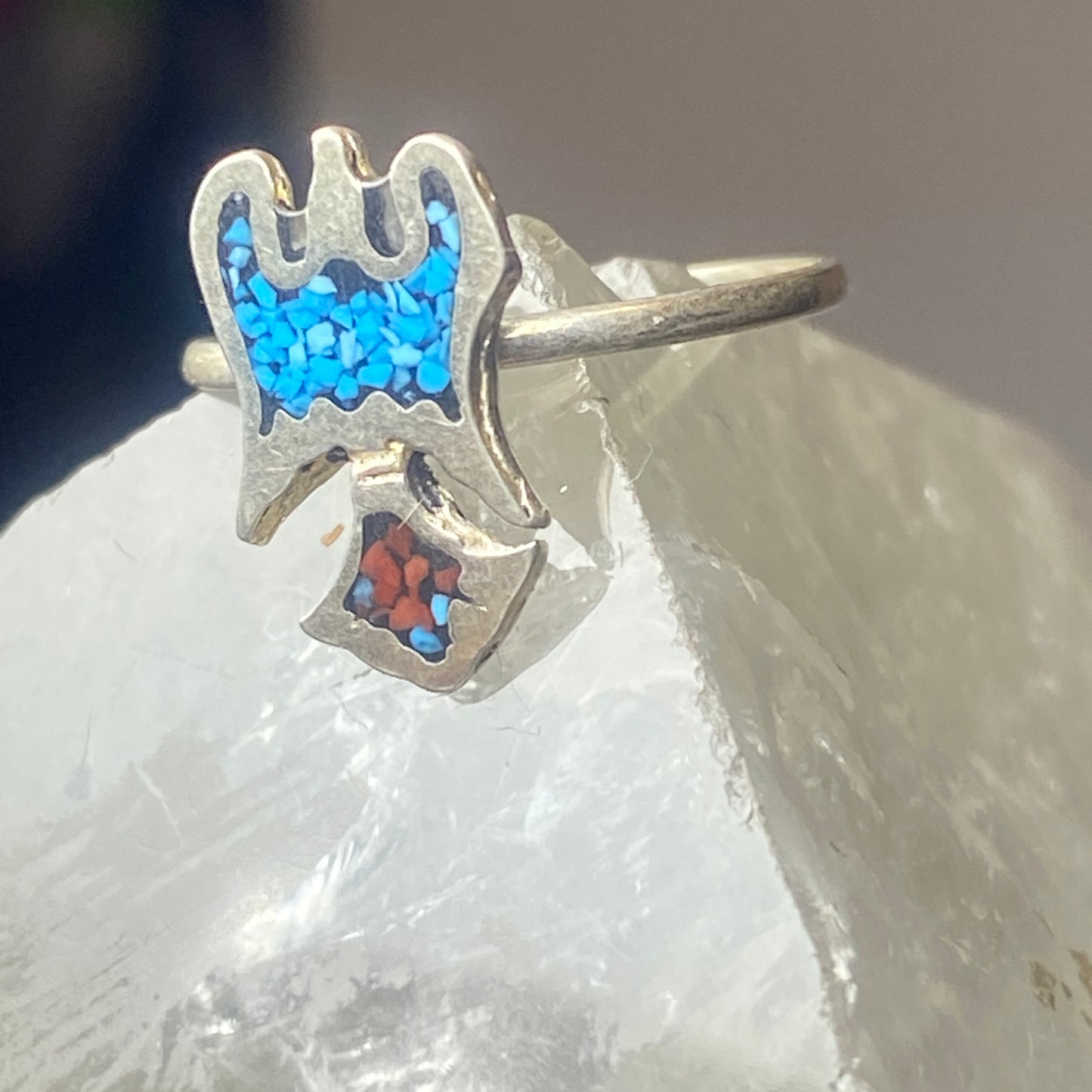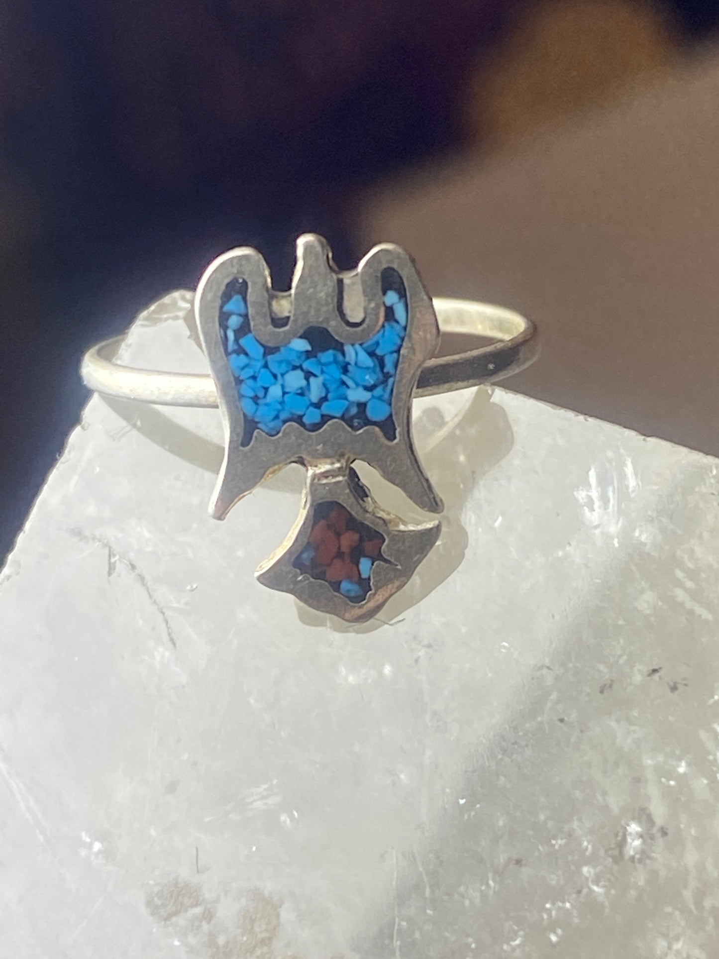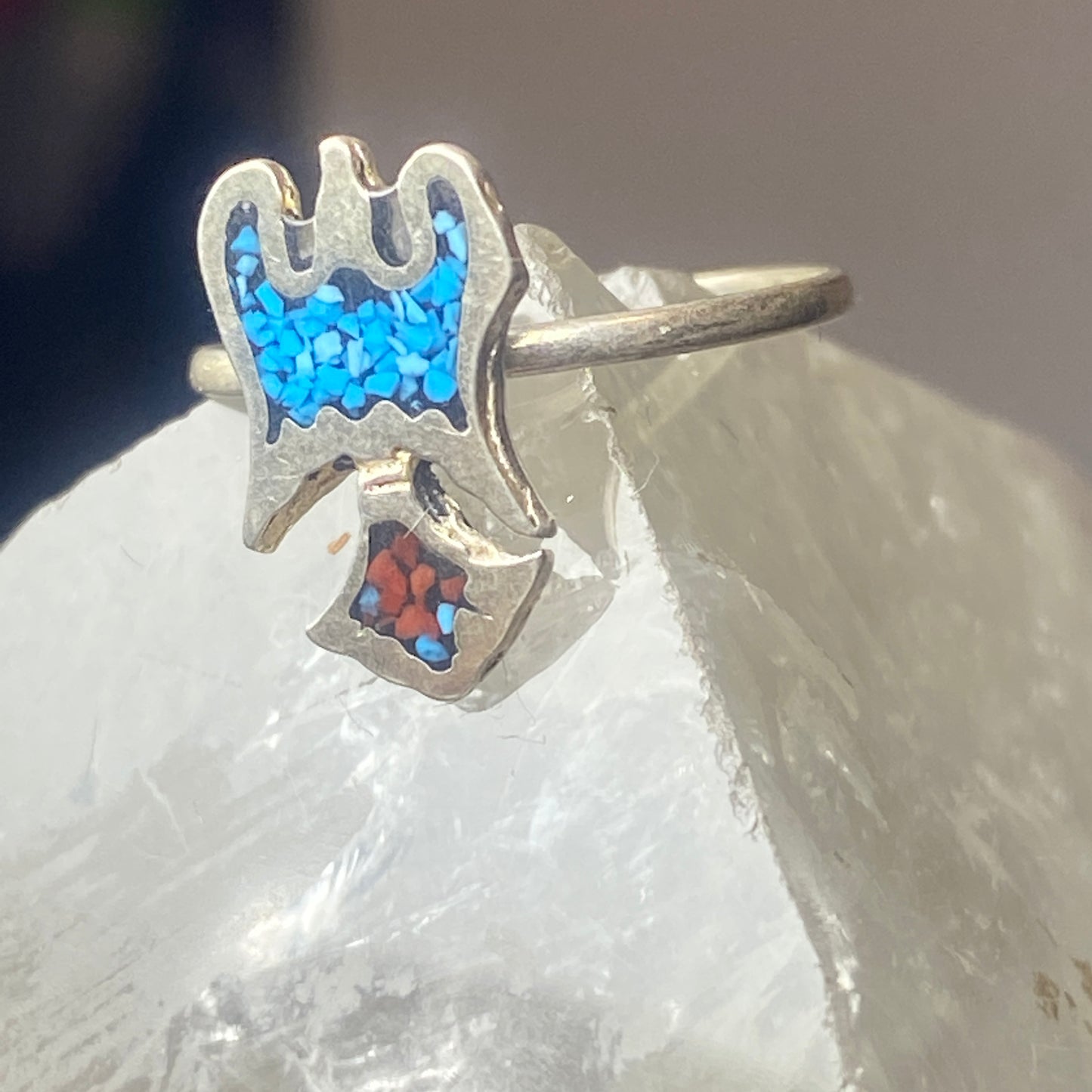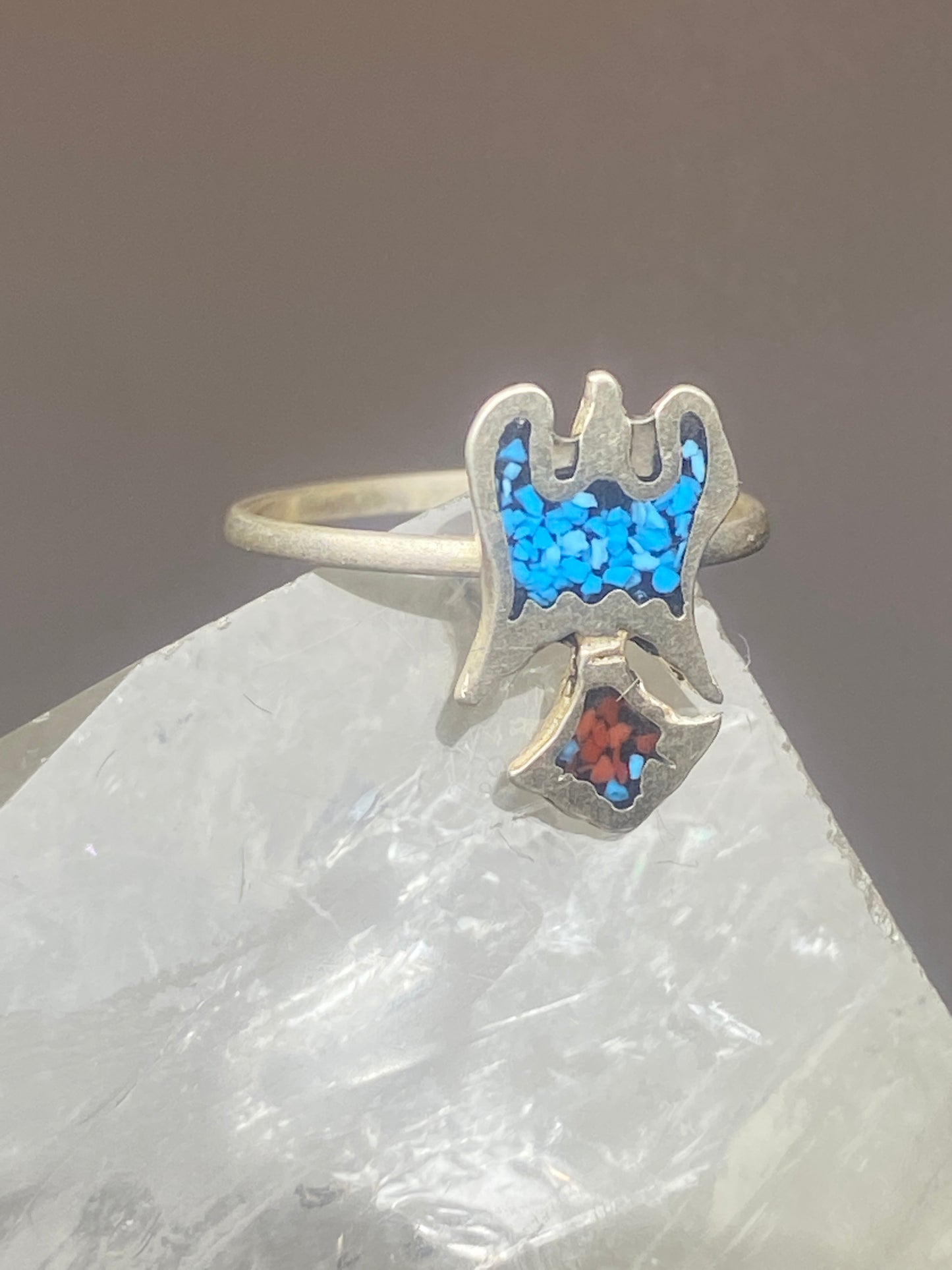 Phoenix ring turquoise coral chips southwest sterling silver women girls e