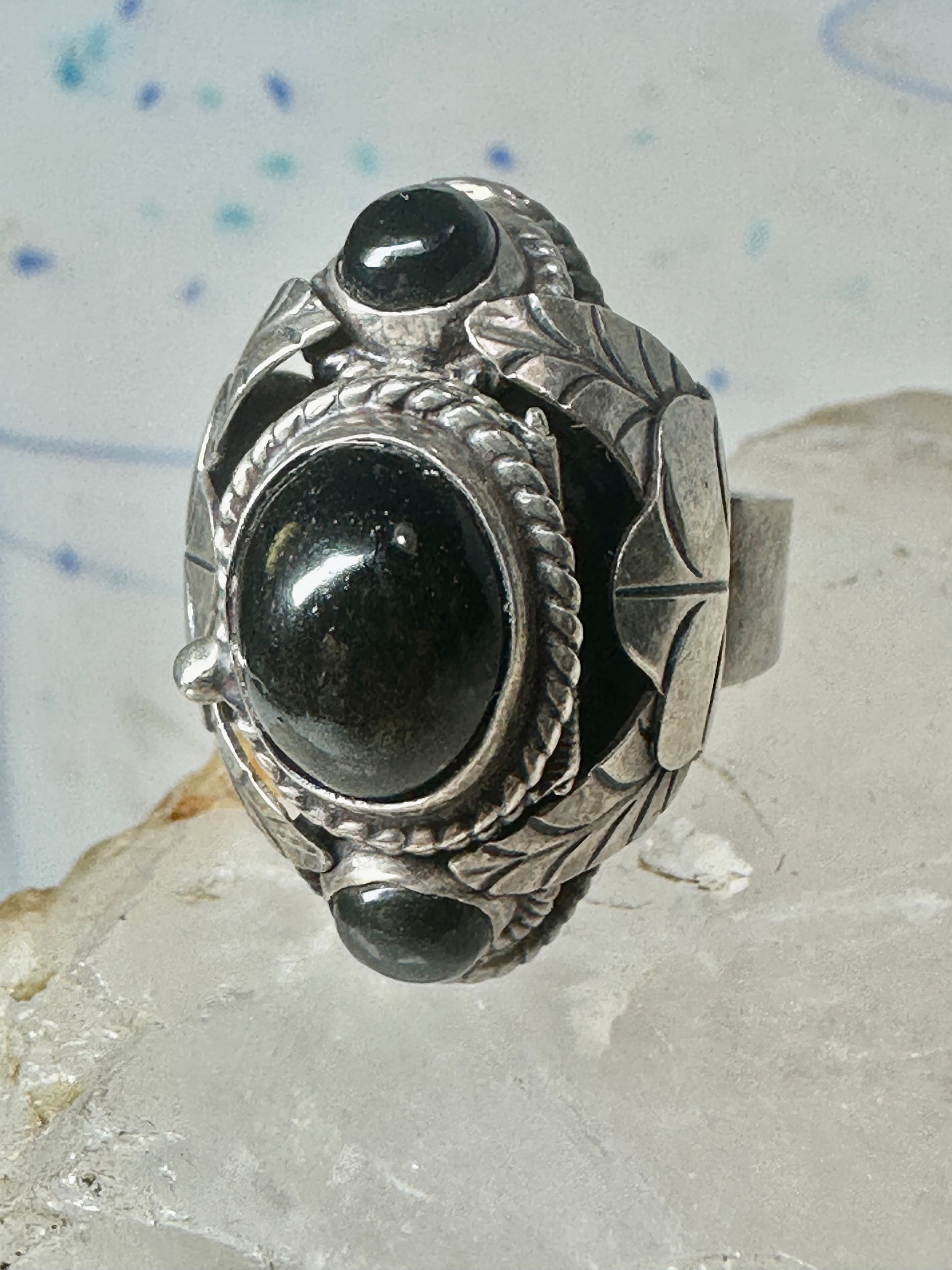 Poison ring obsidian ? leaves band size 7 sterling silver women girls