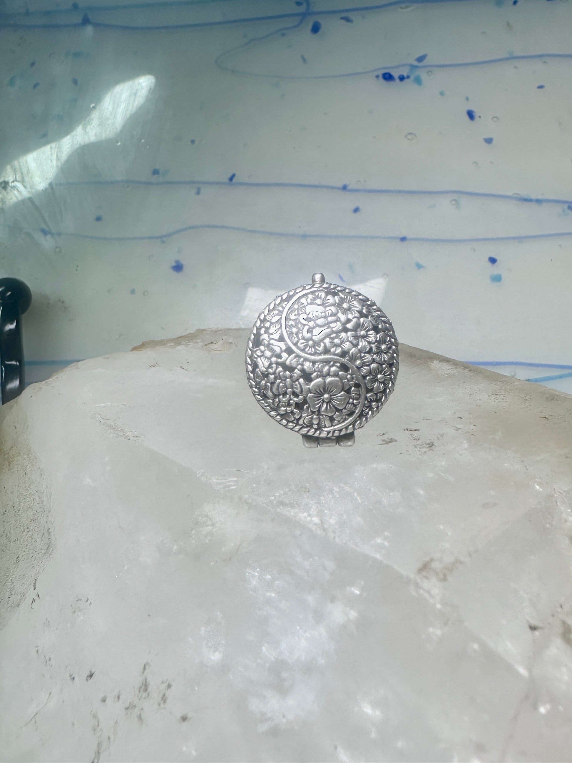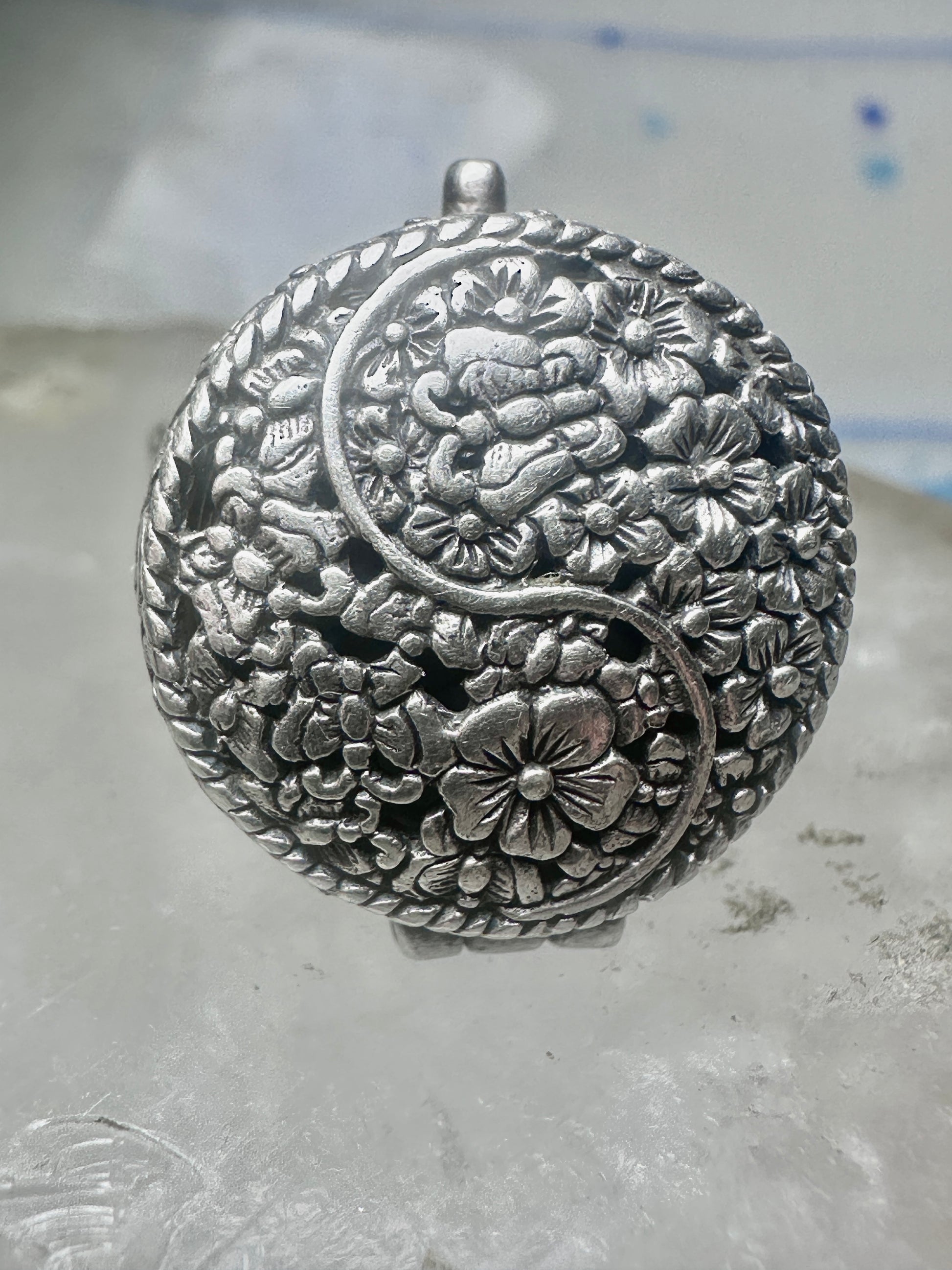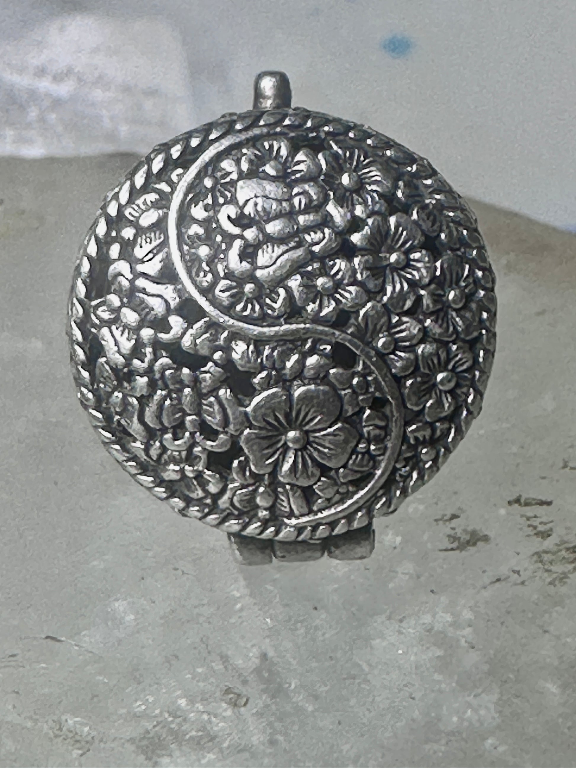 Poison ring Yin Yang Flowers floral size 5.50 sterling silver women