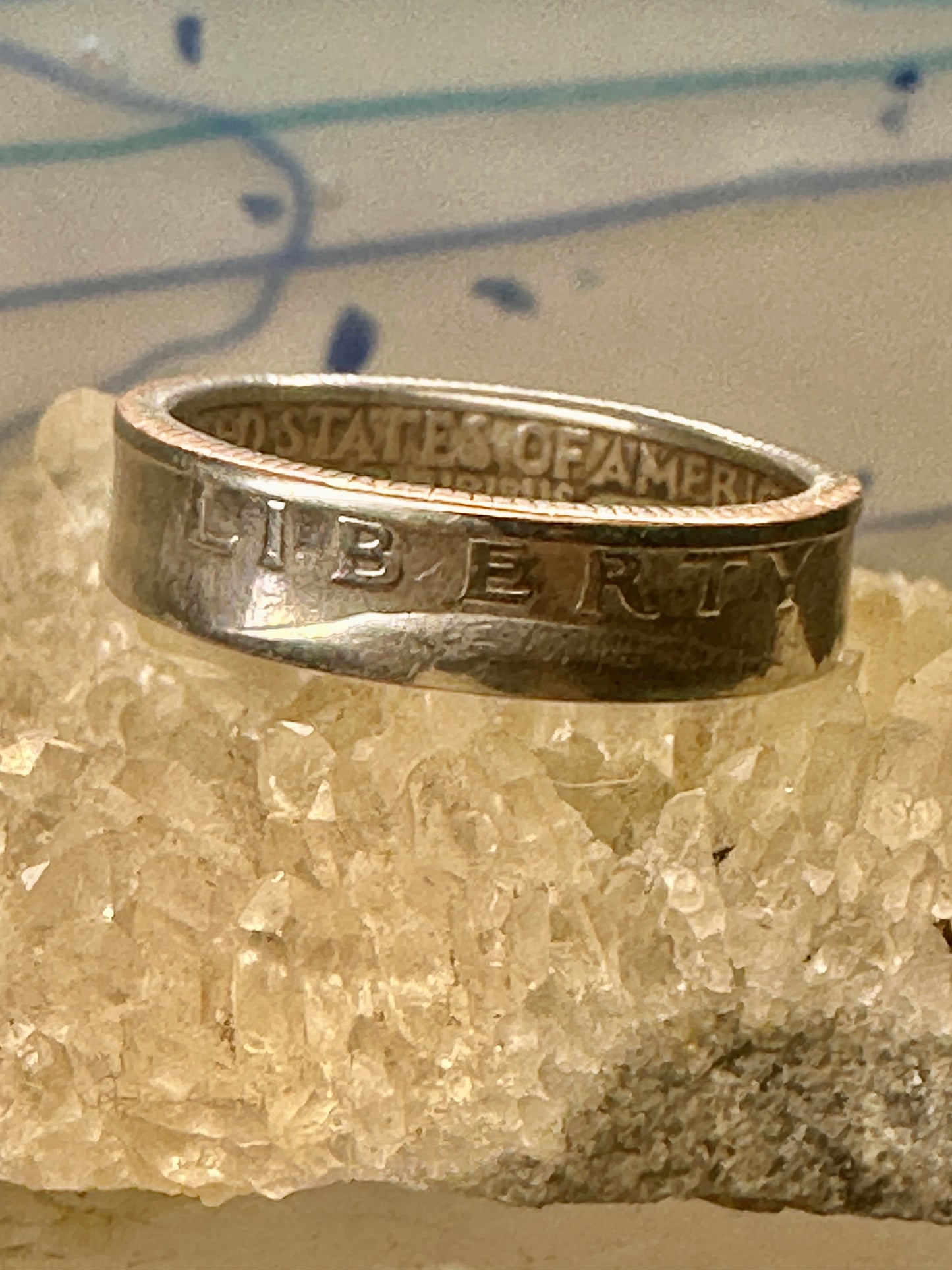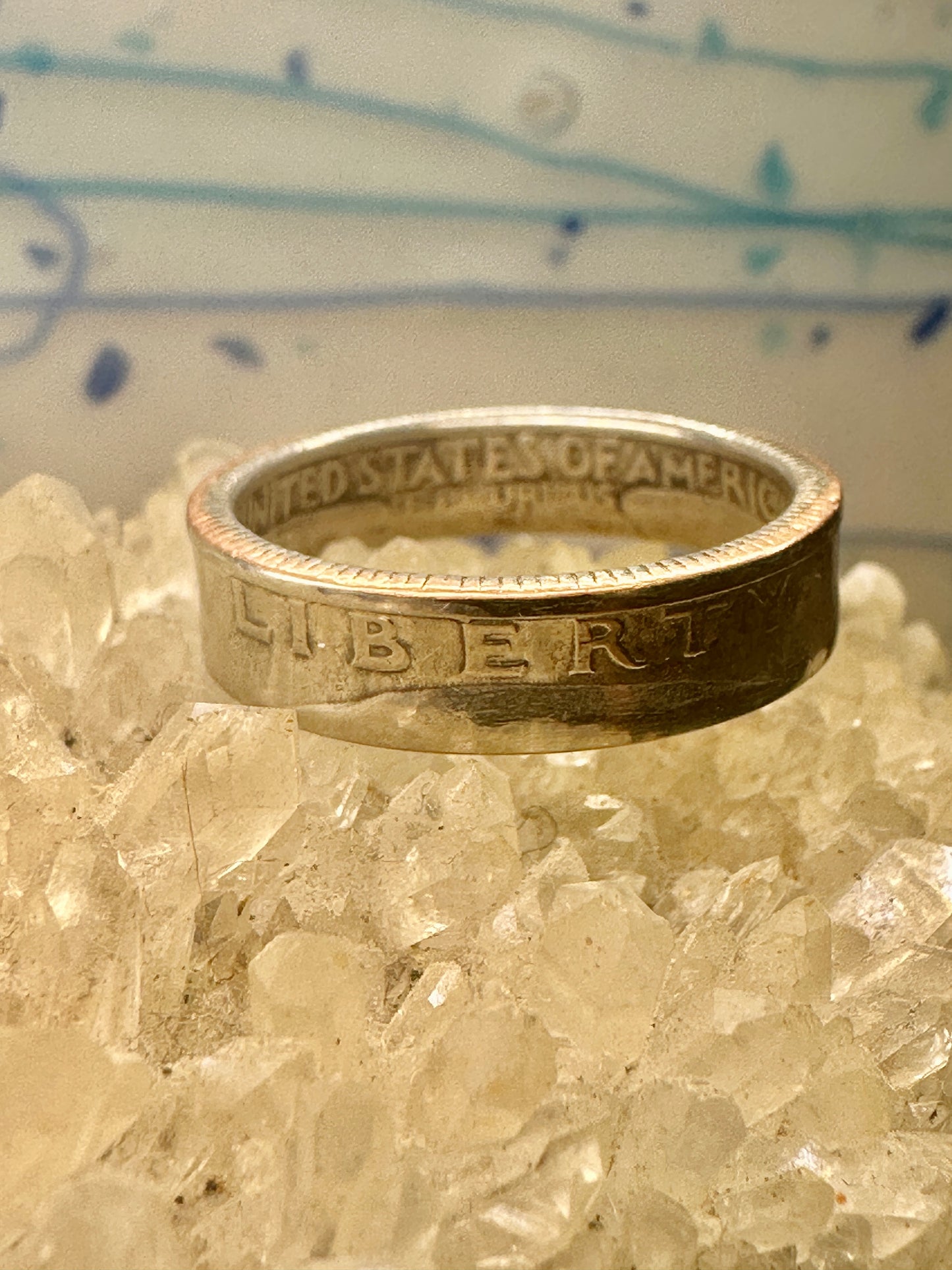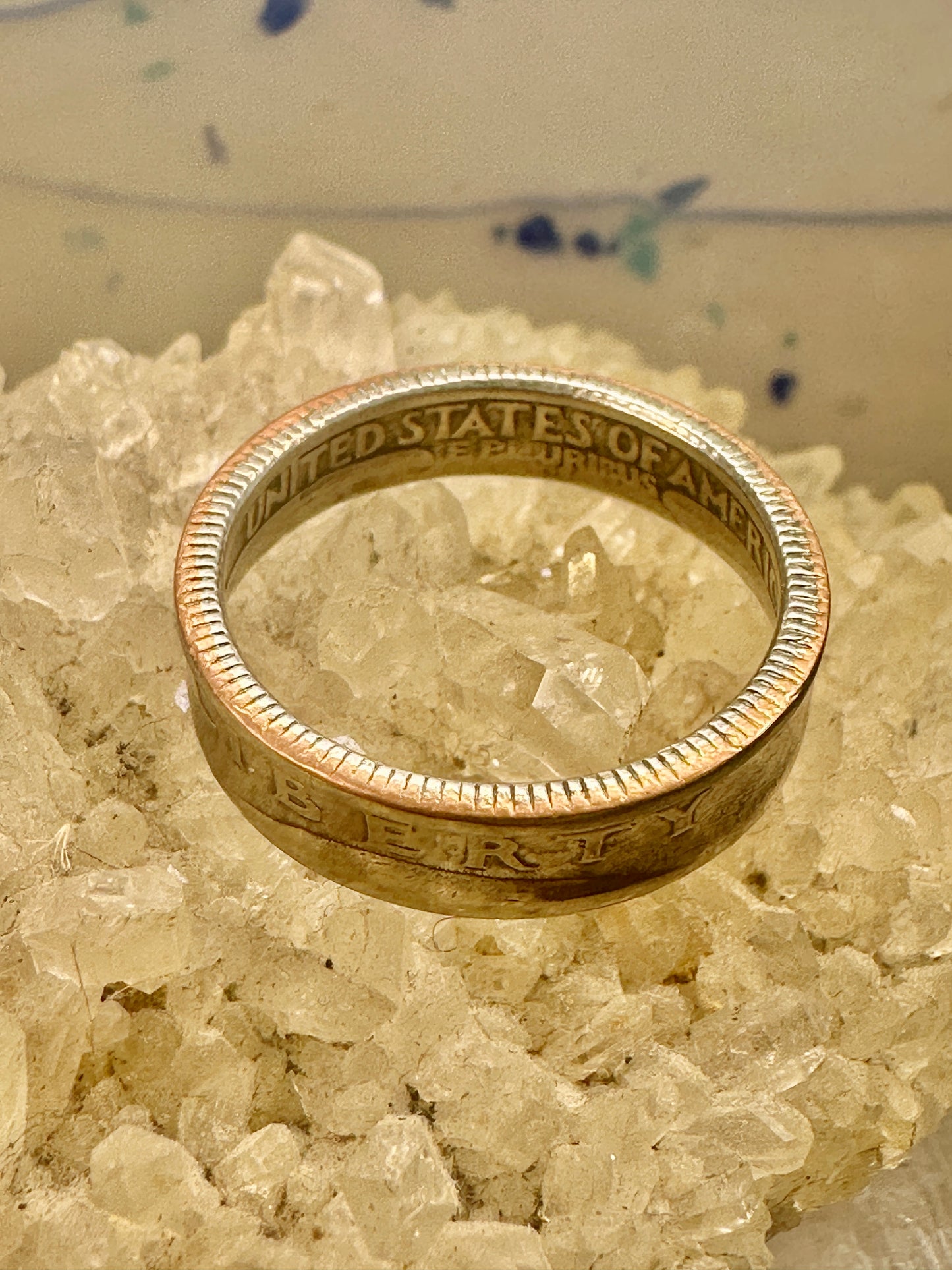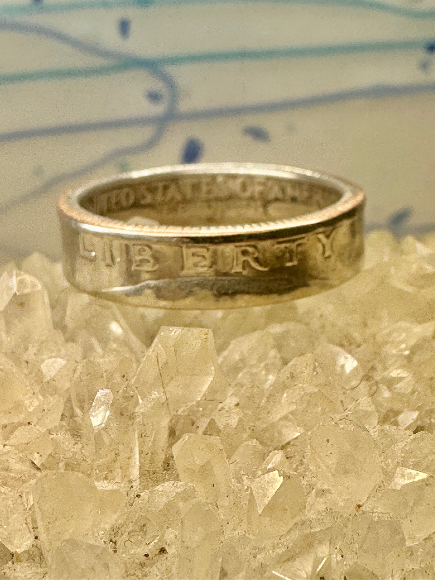 Quarter ring 1968 Liberty USA coin band Trench Art size 9 women men