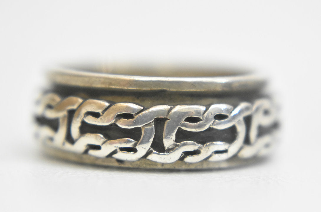Rope spinner ring thumb sterling silver men biker band size 10.25