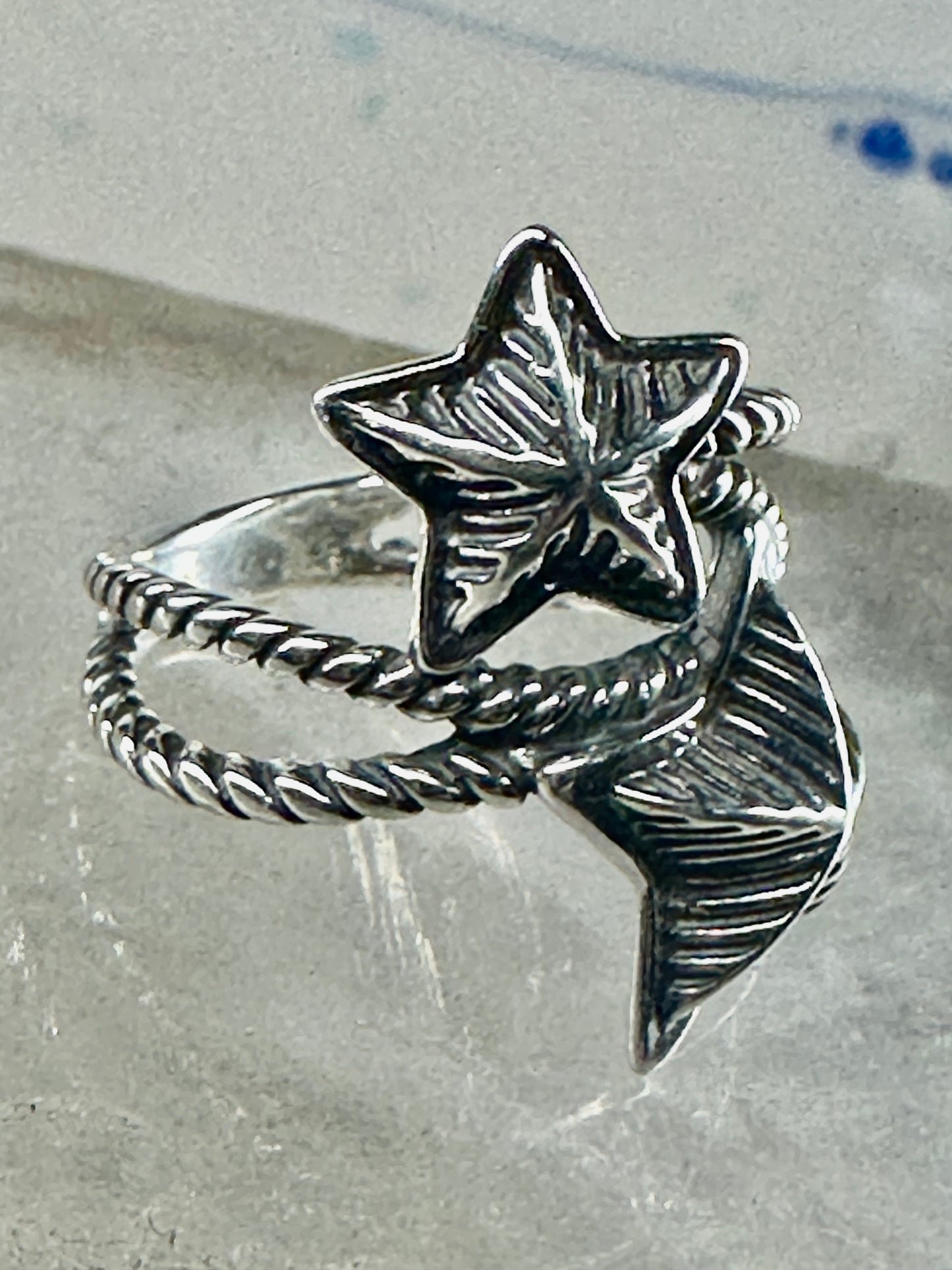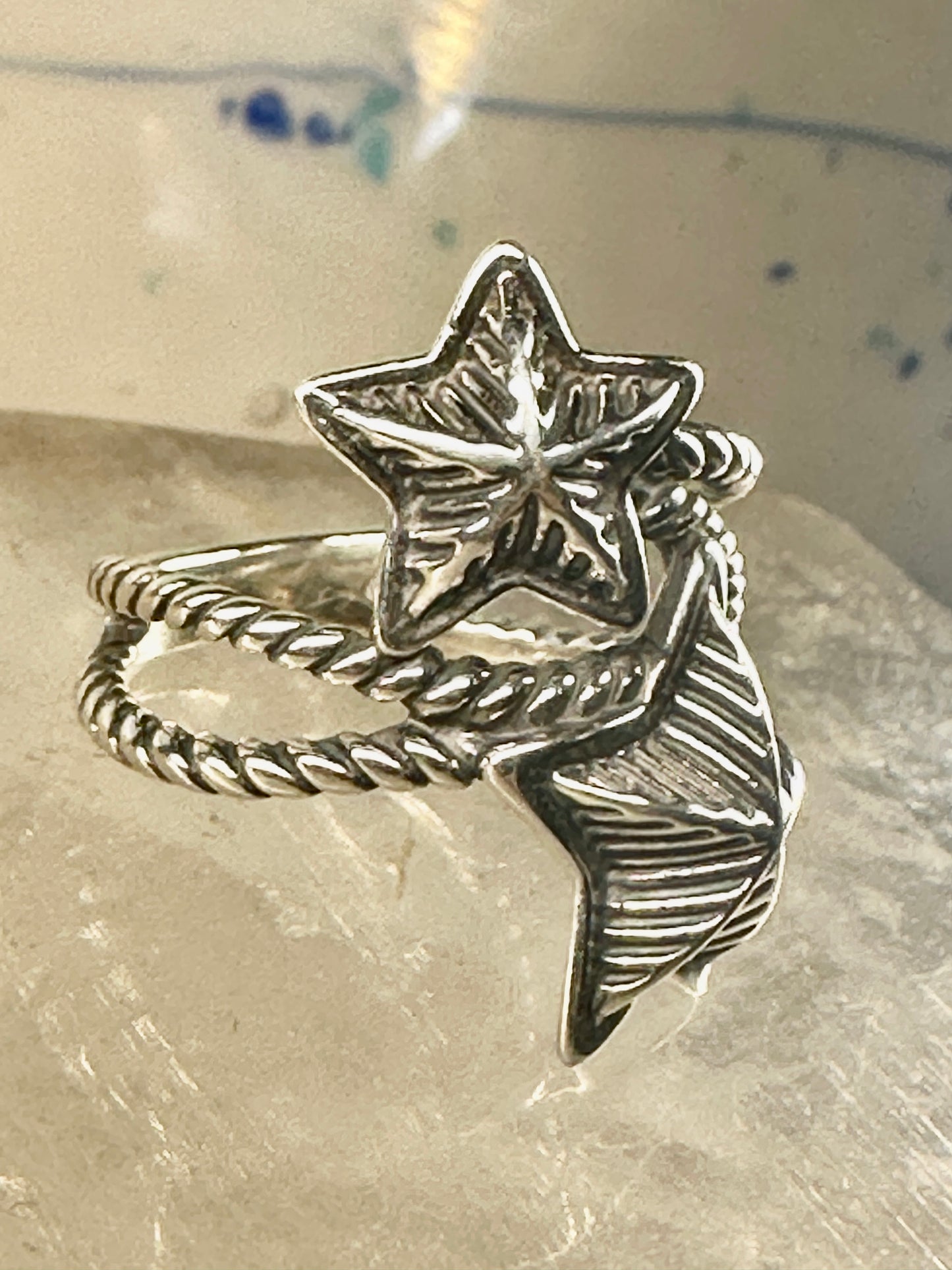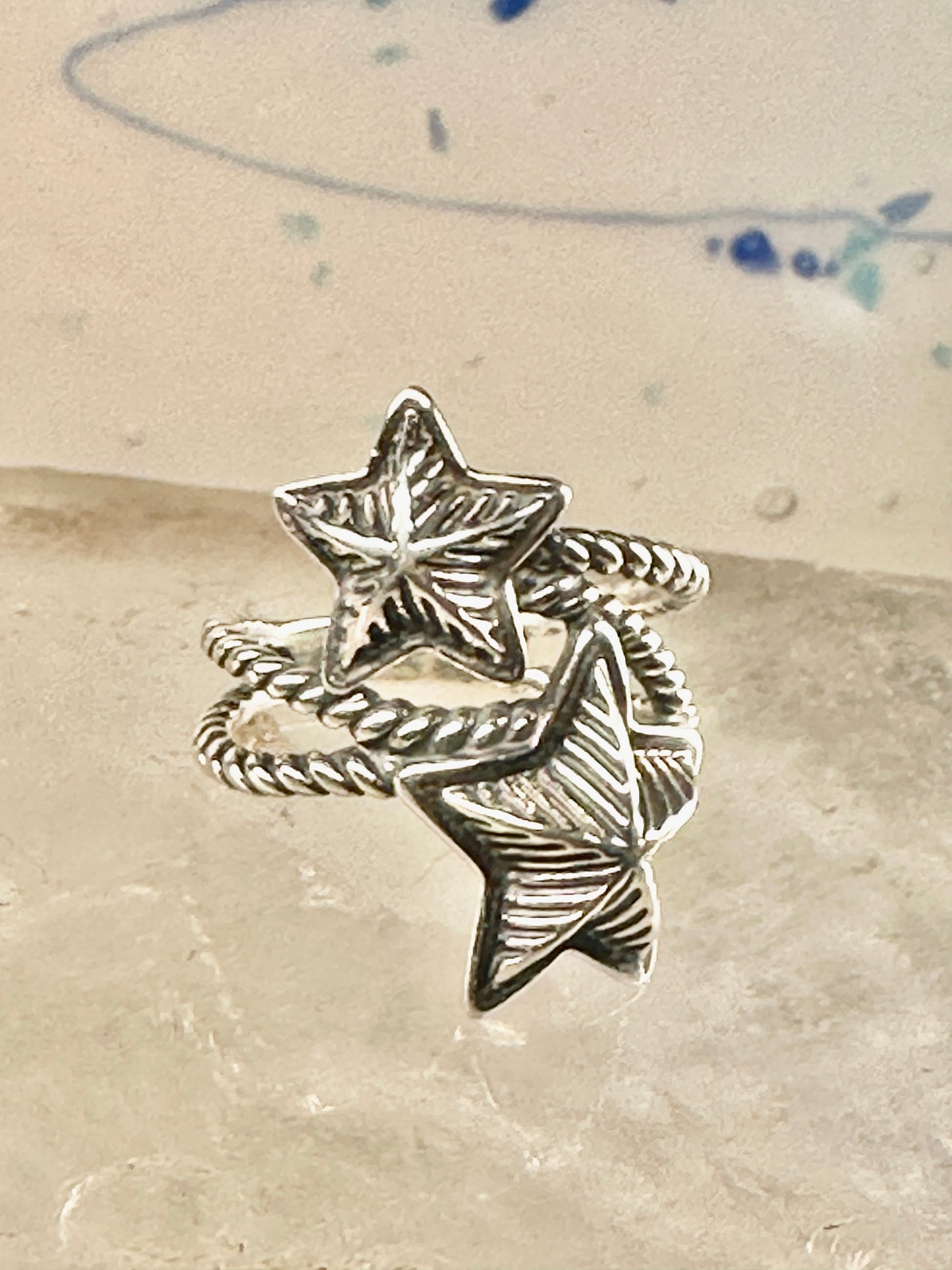 Shooting Stars ring Starfish band Celestial sterling silver size 8 women girls