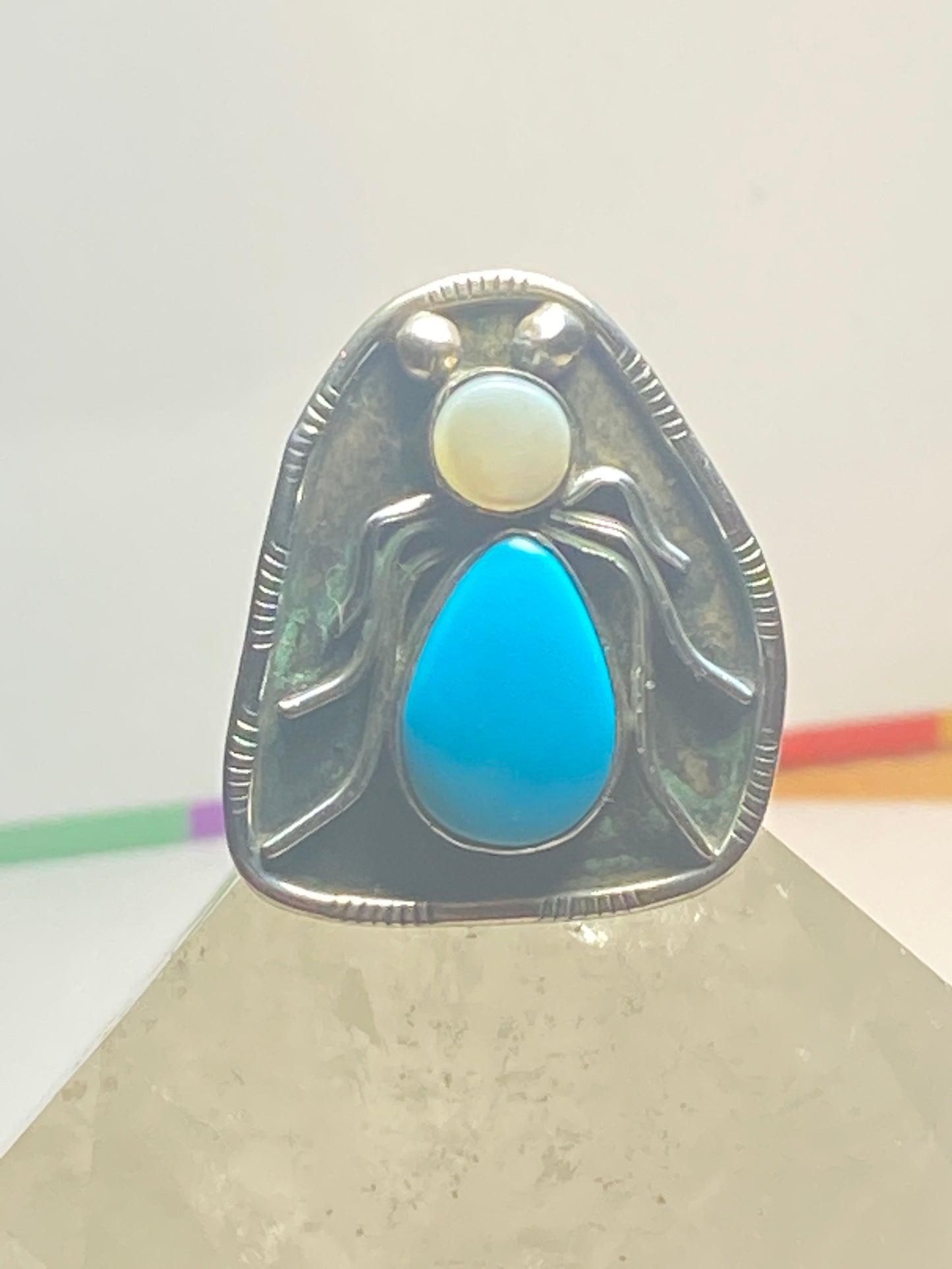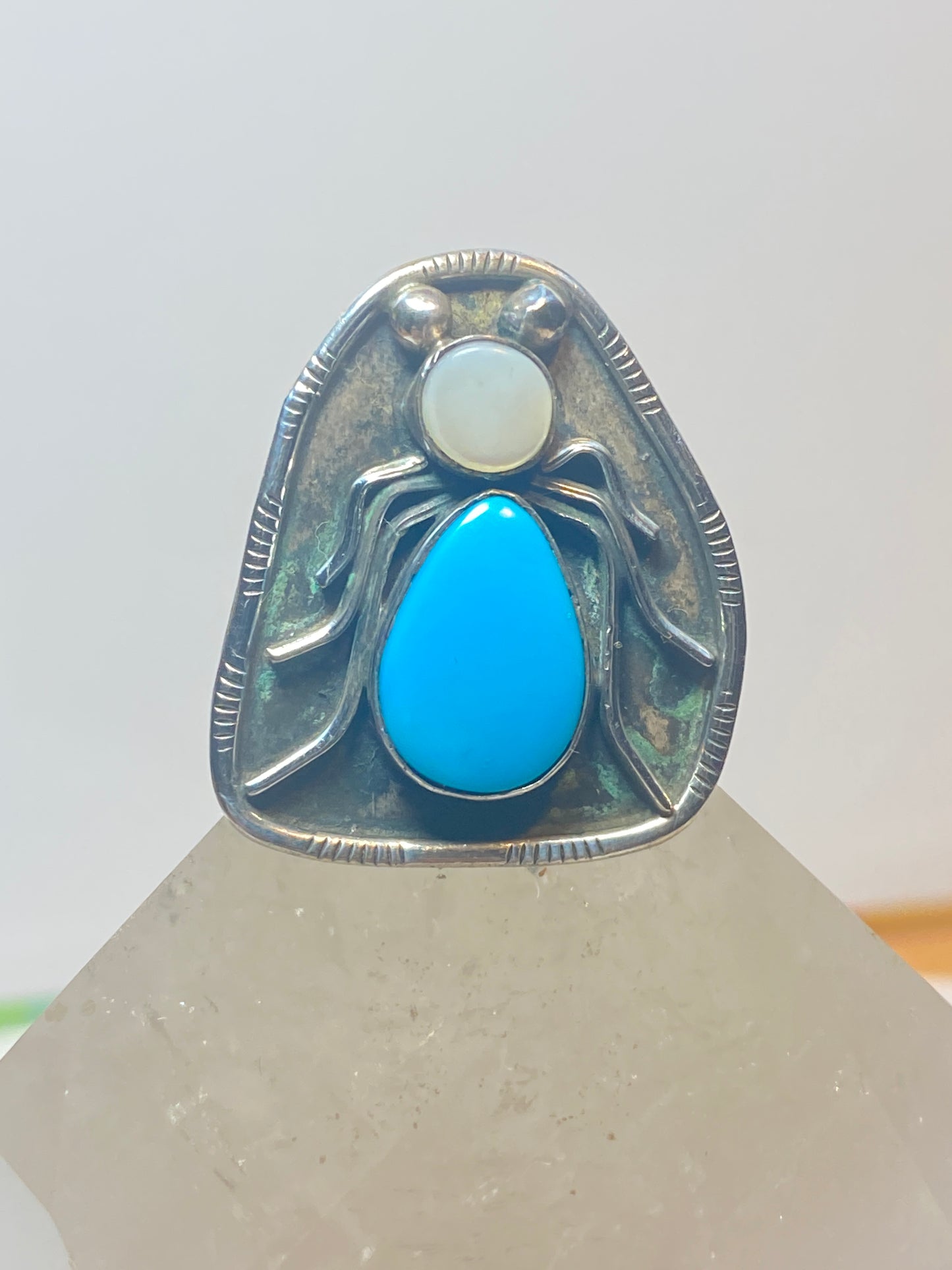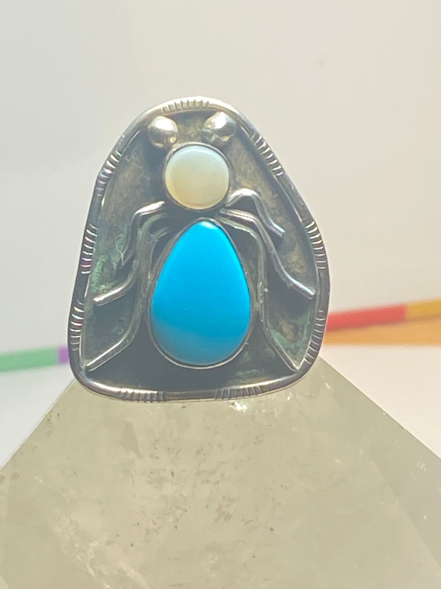 Spider ring Navajo turquoise mother of pearl sterling silver women