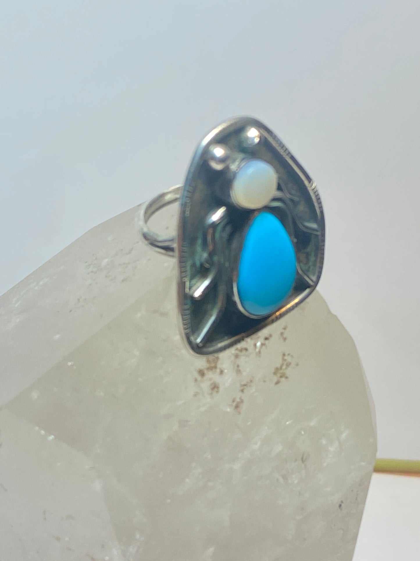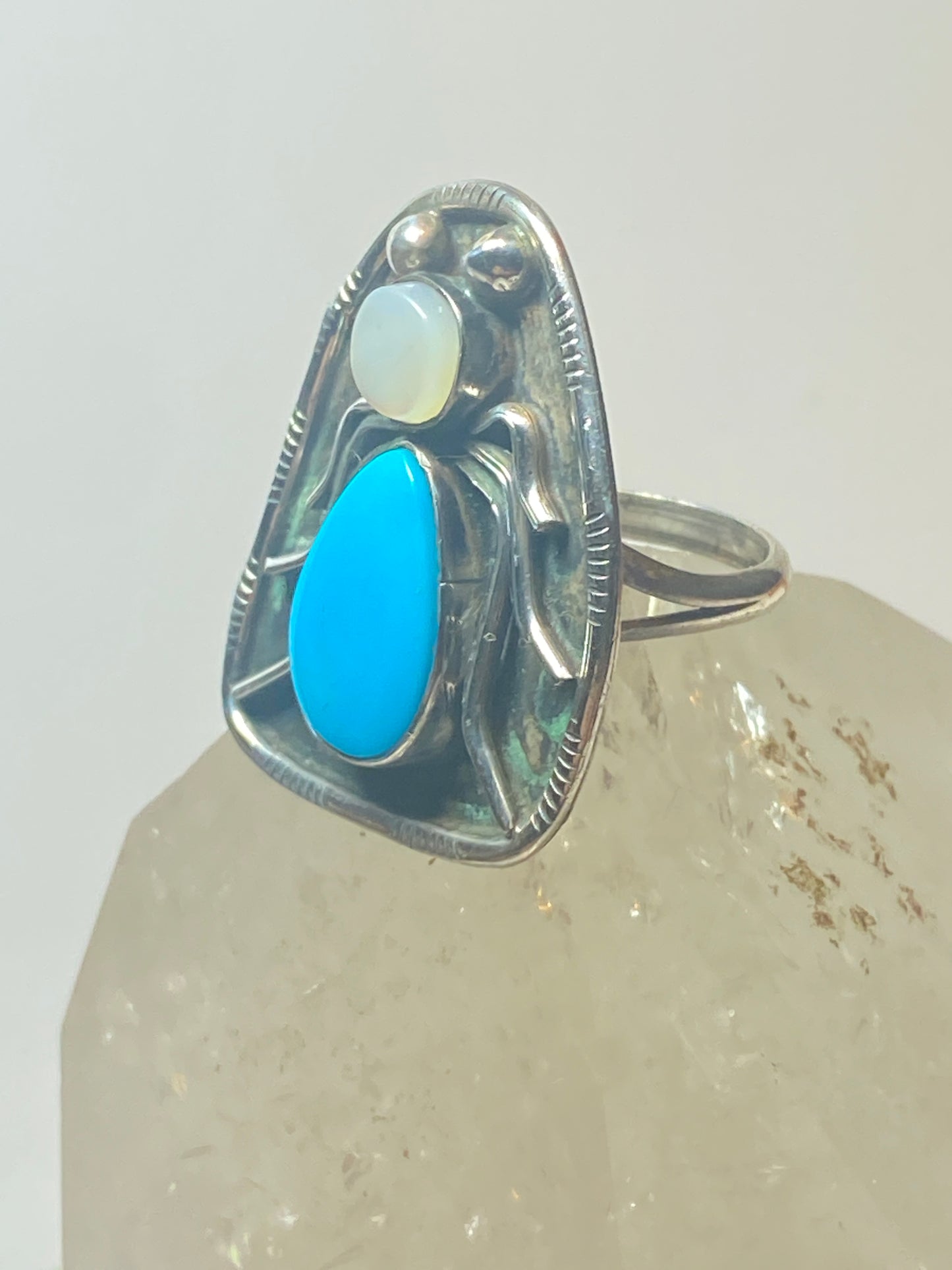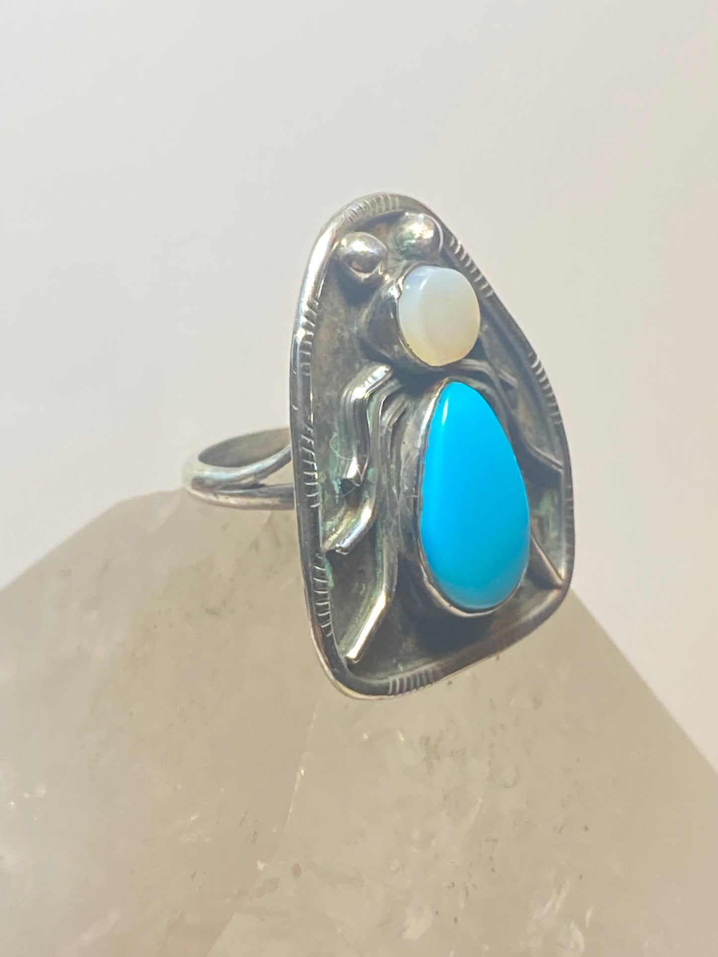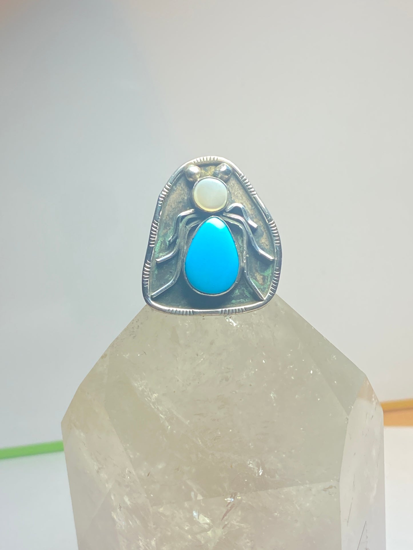 Spider ring Navajo turquoise mother of pearl sterling silver women