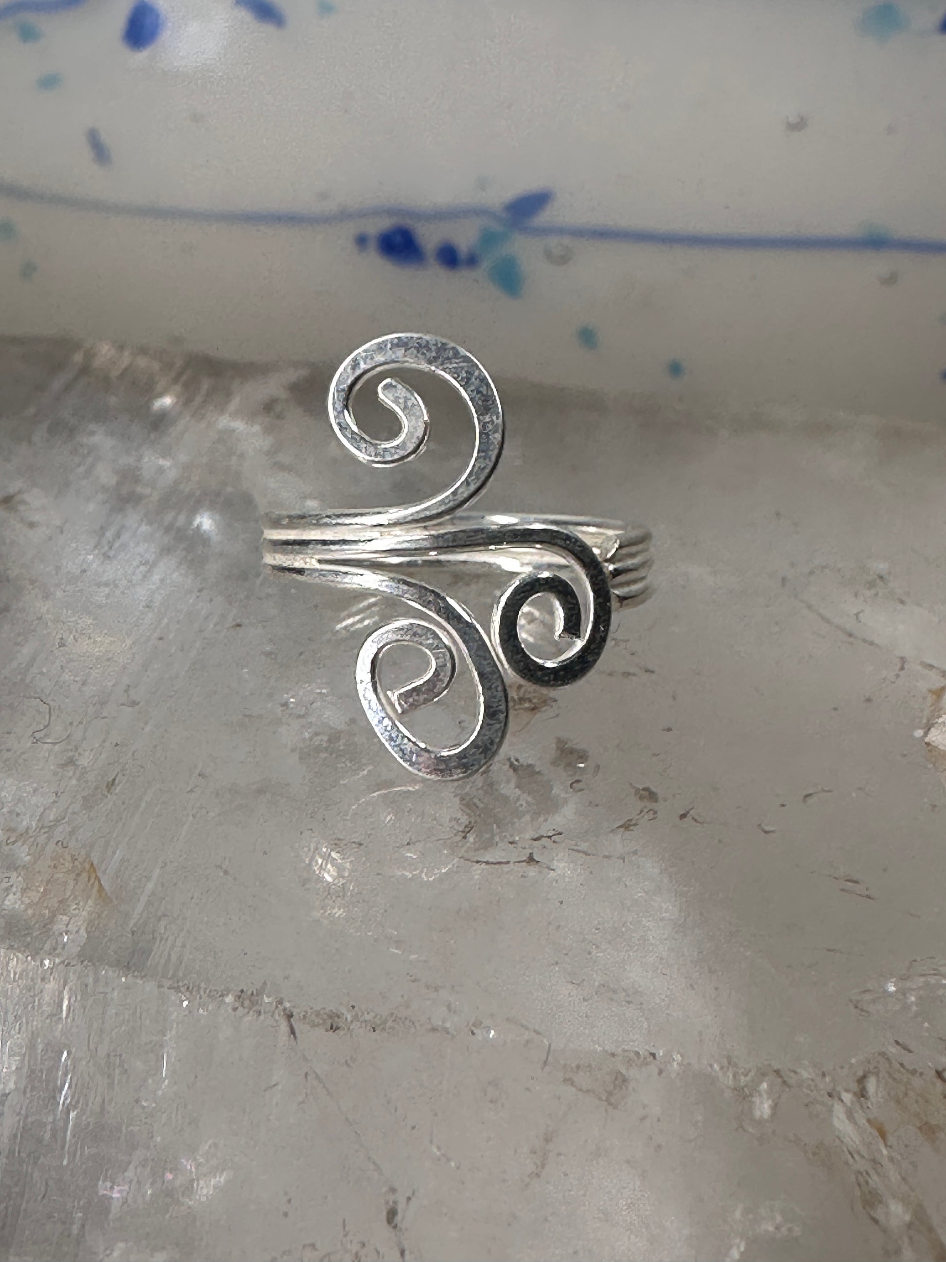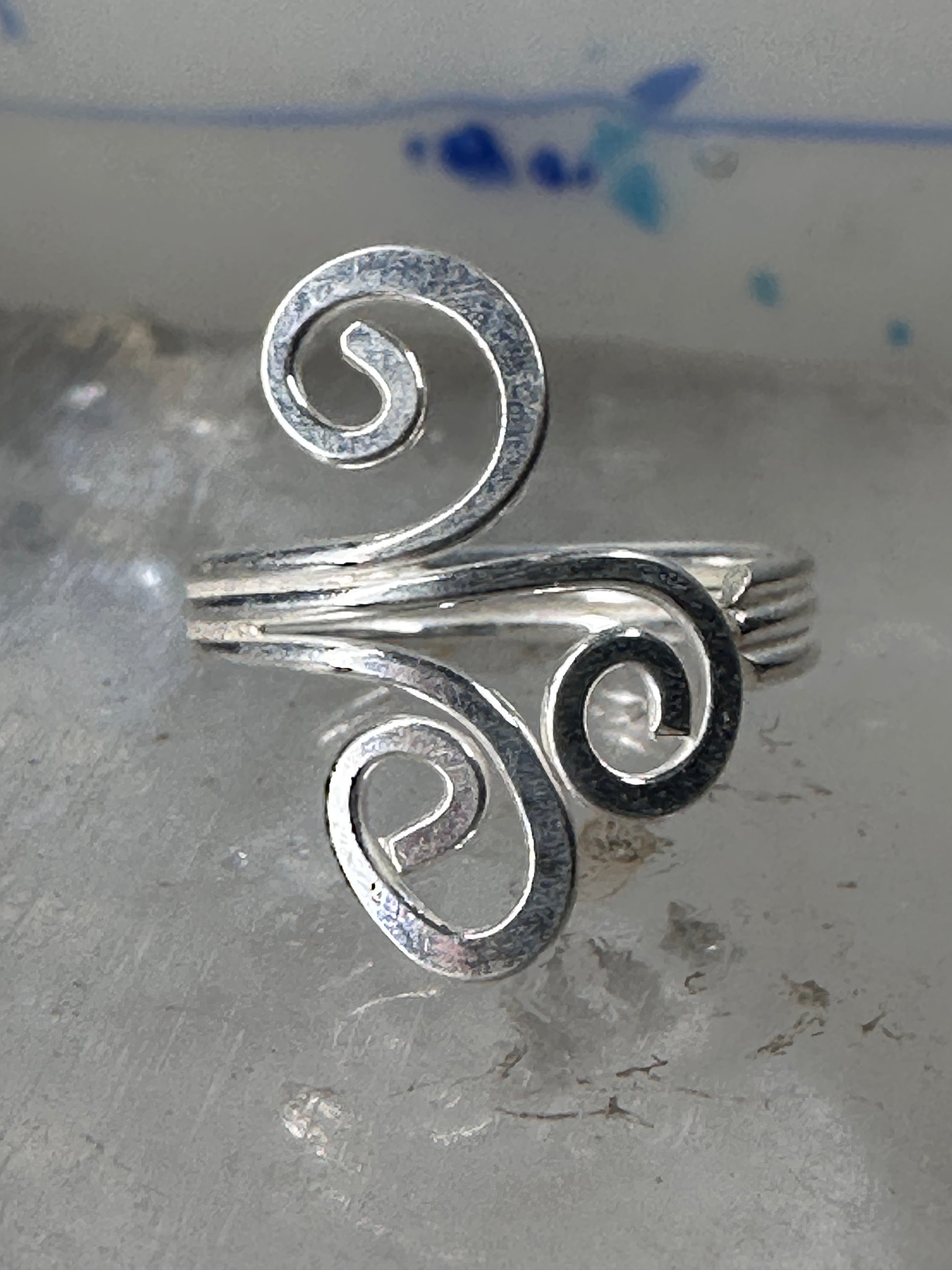 Spiral toe ring pinky floral toe band size 4 adjustable sterling silver women girls