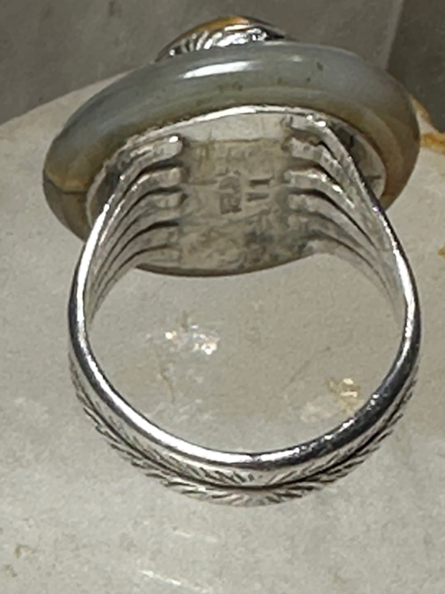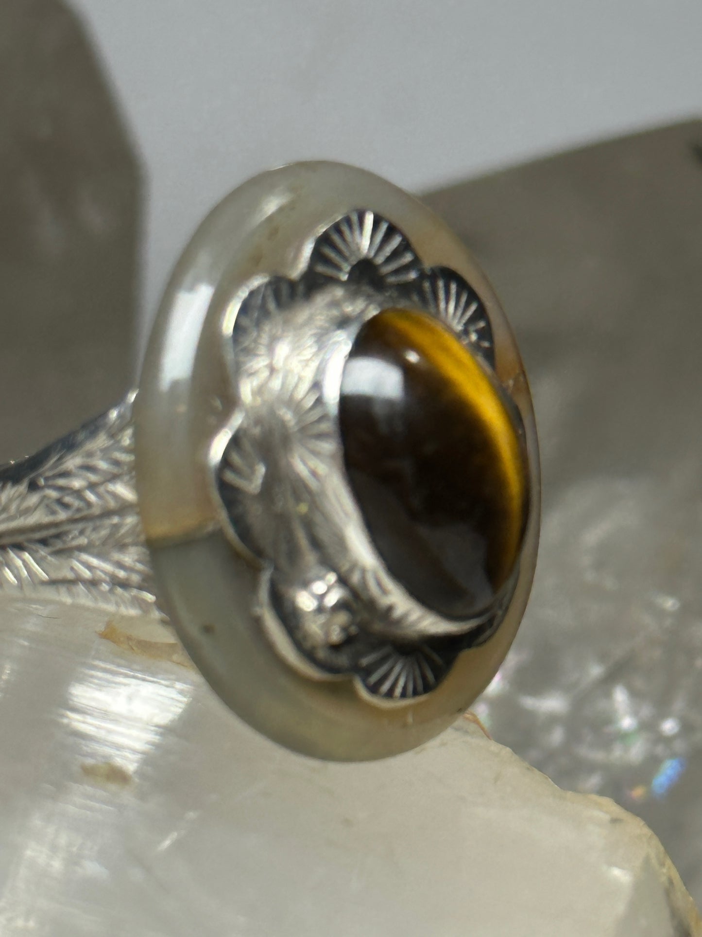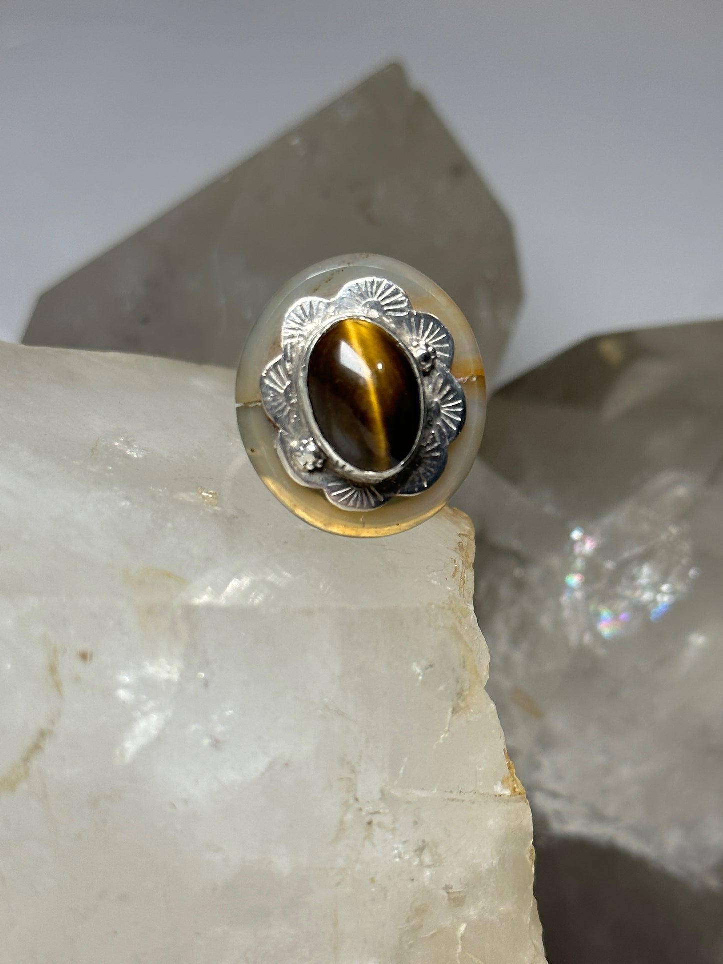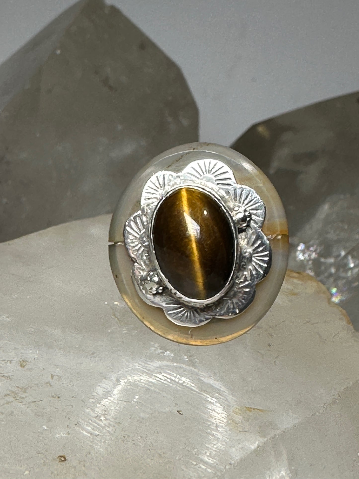 Tiger Eye ring Floral agate band size 7.50 sterling silver women
