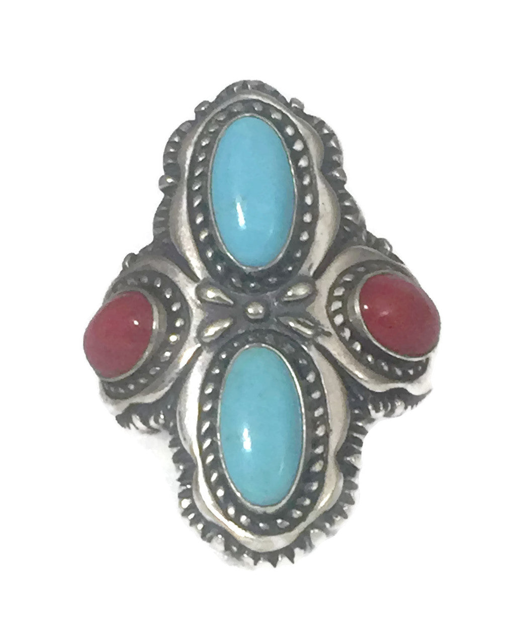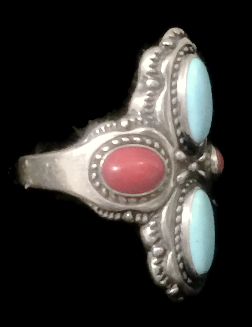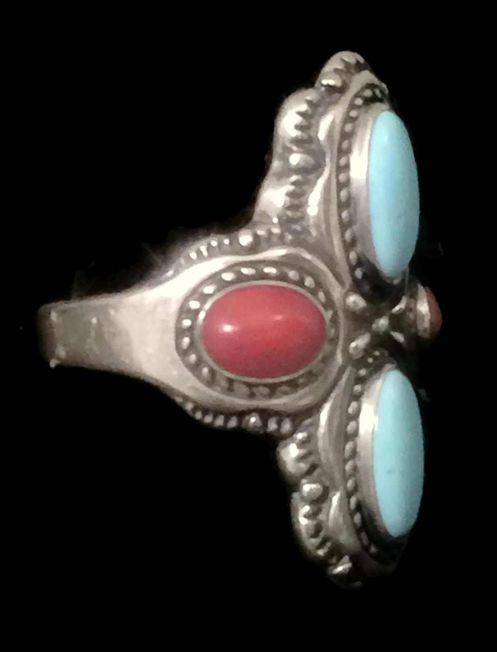 Turquoise Coral Southwest Vintage Sterling Silver Ring