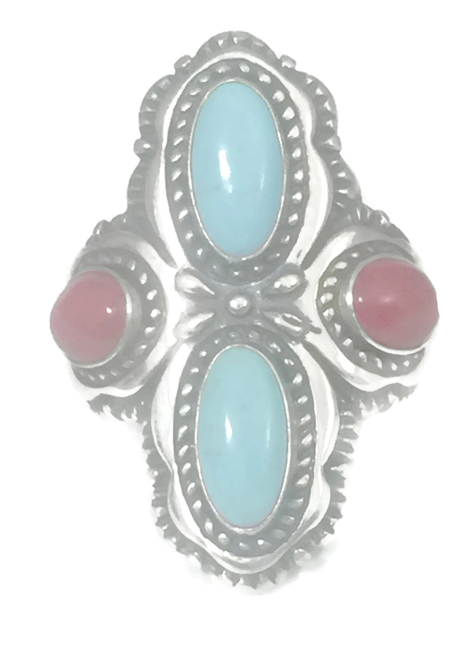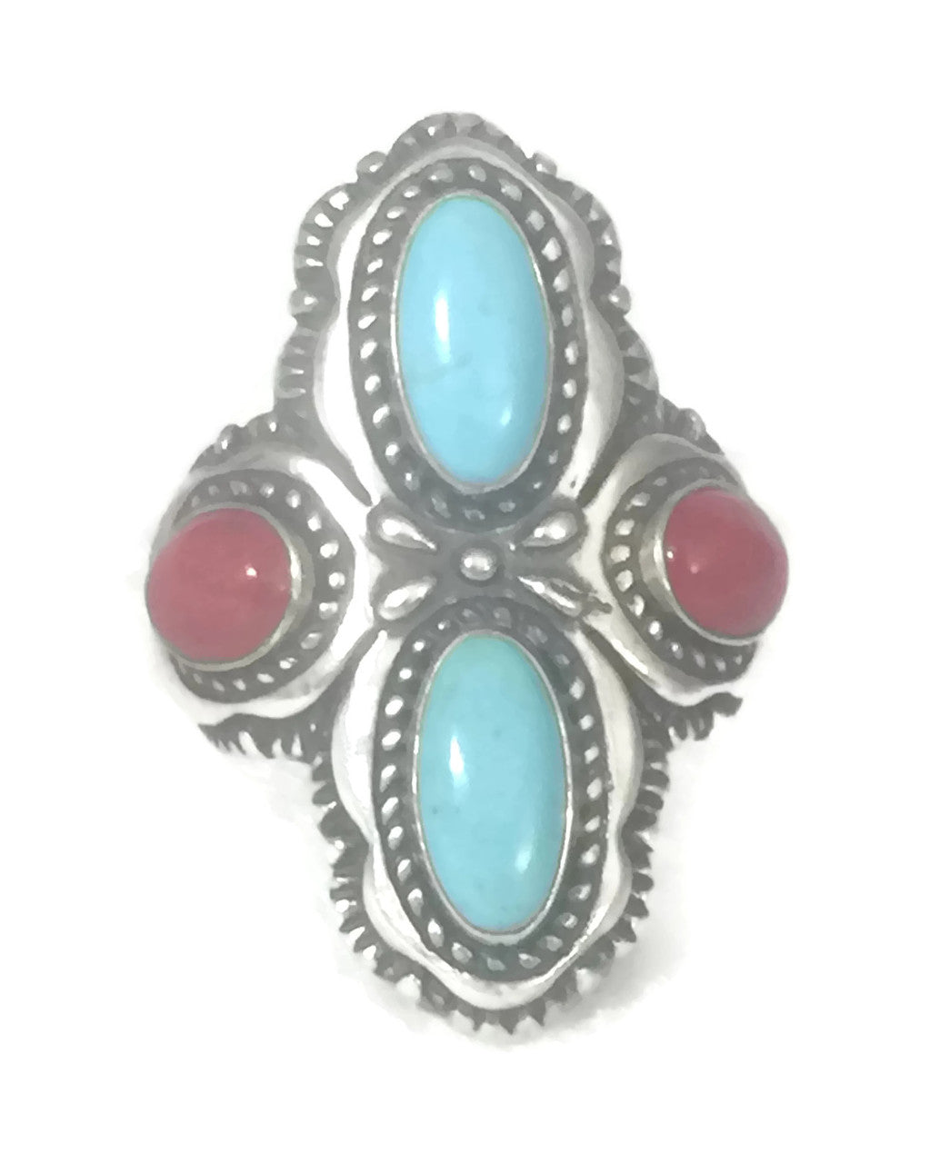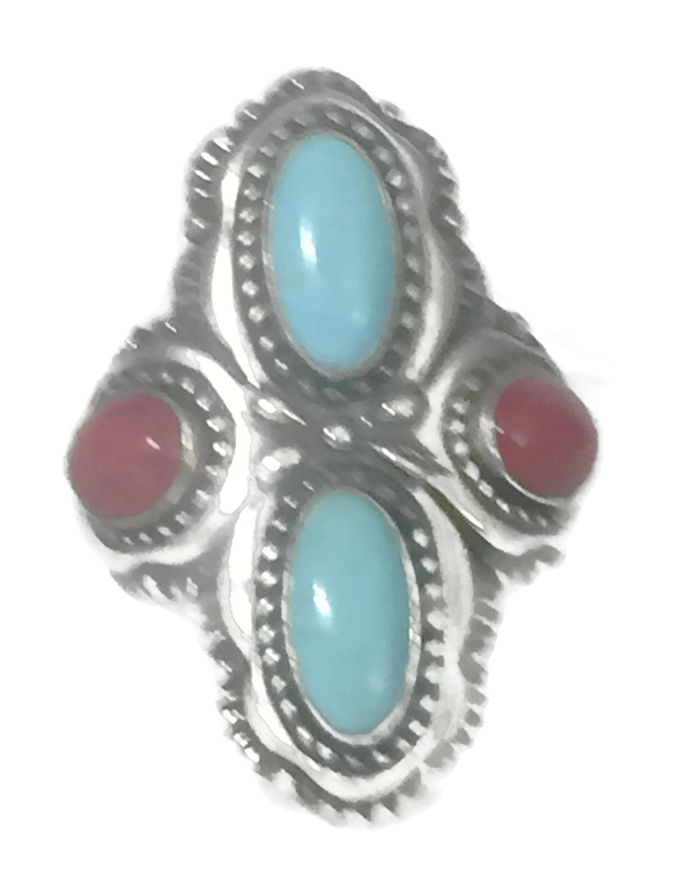 Turquoise Coral Southwest Vintage Sterling Silver Ring