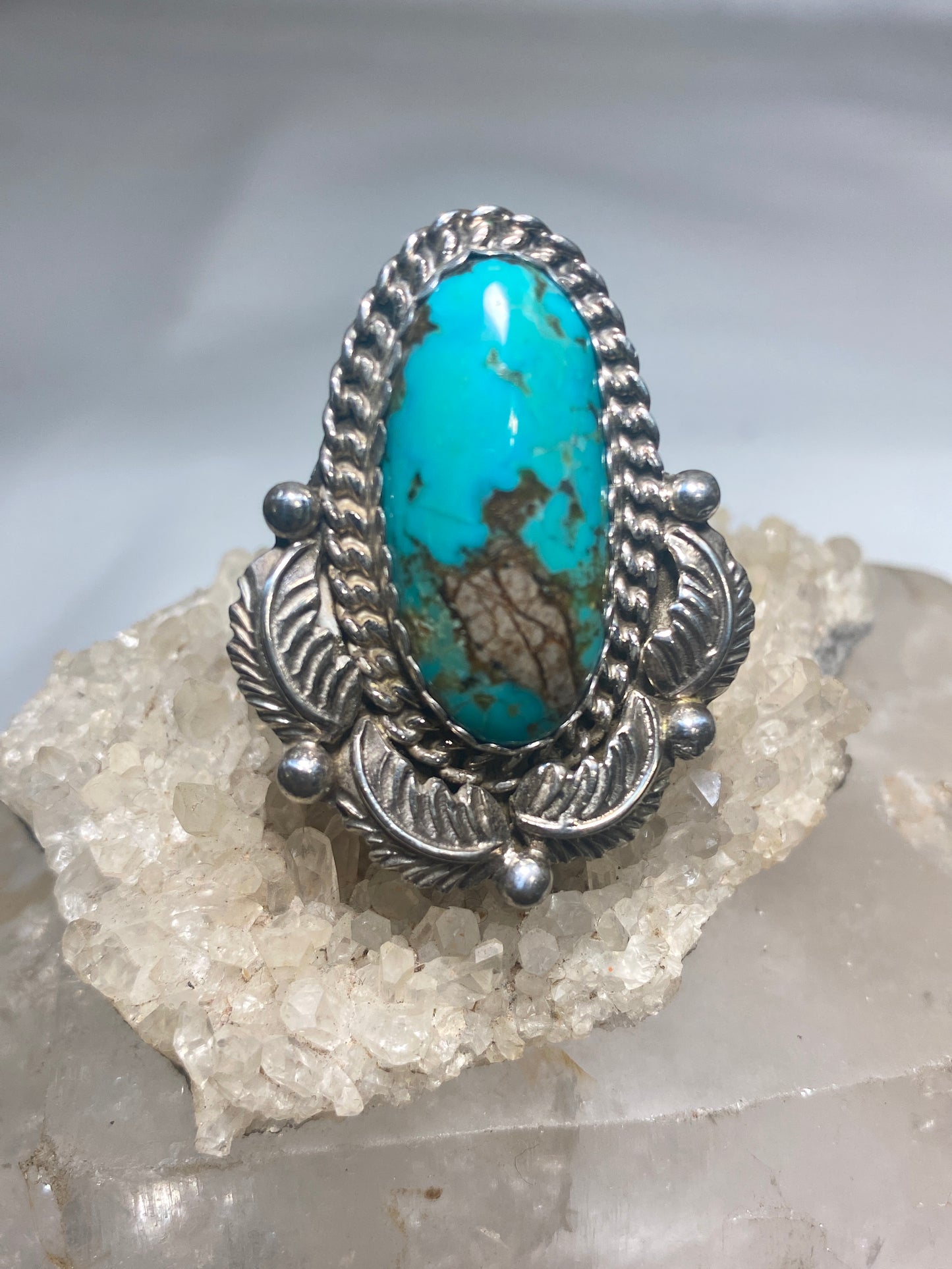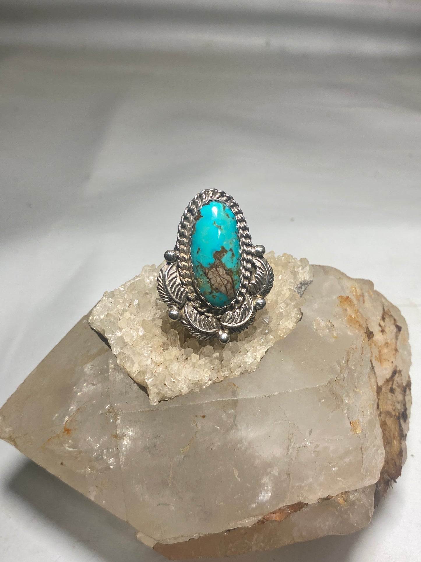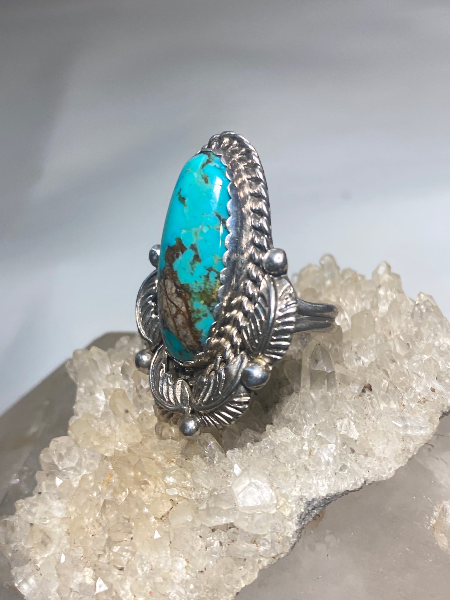 Turquoise ring long Navajo feathers band sterling silver women girls