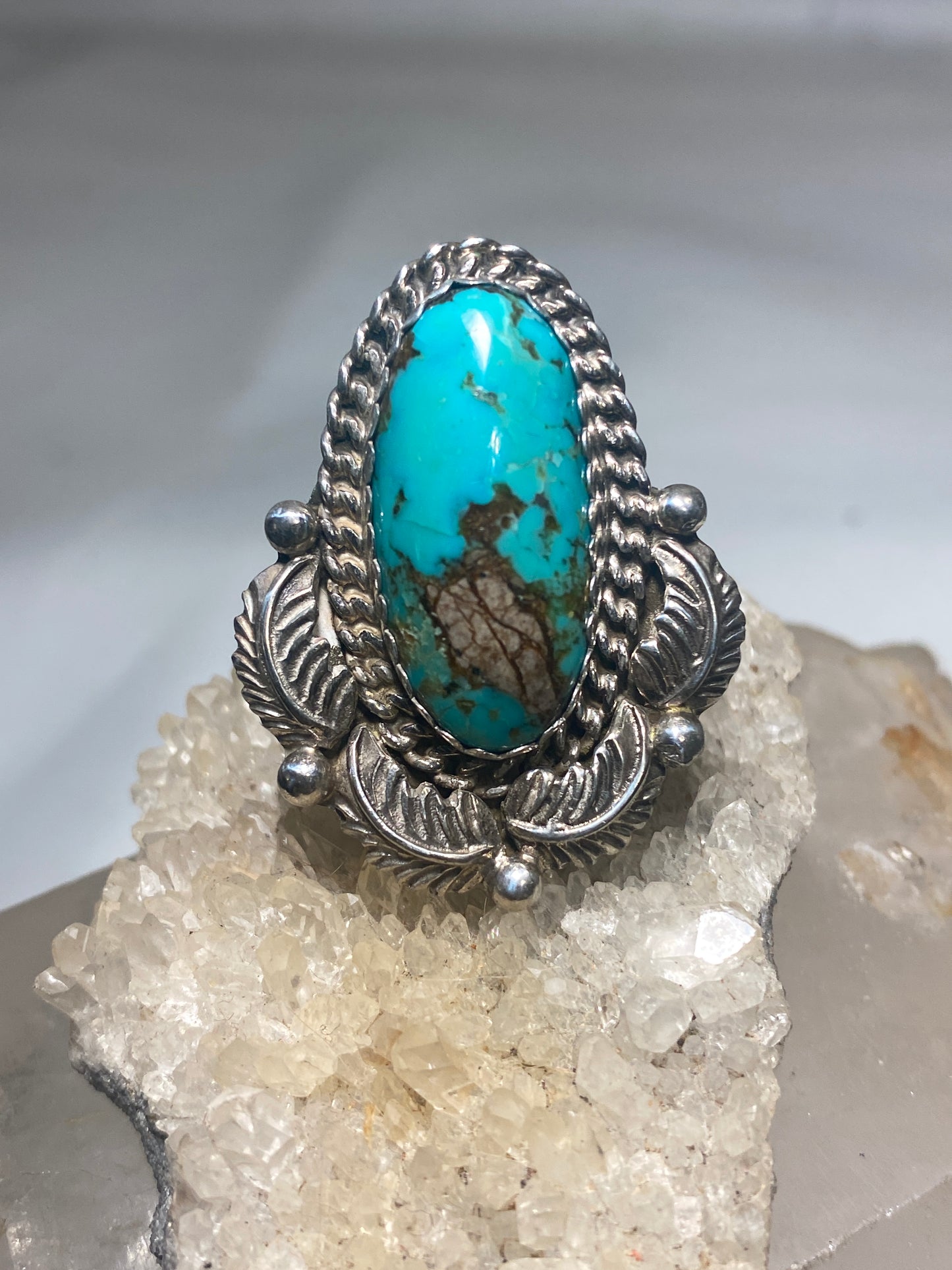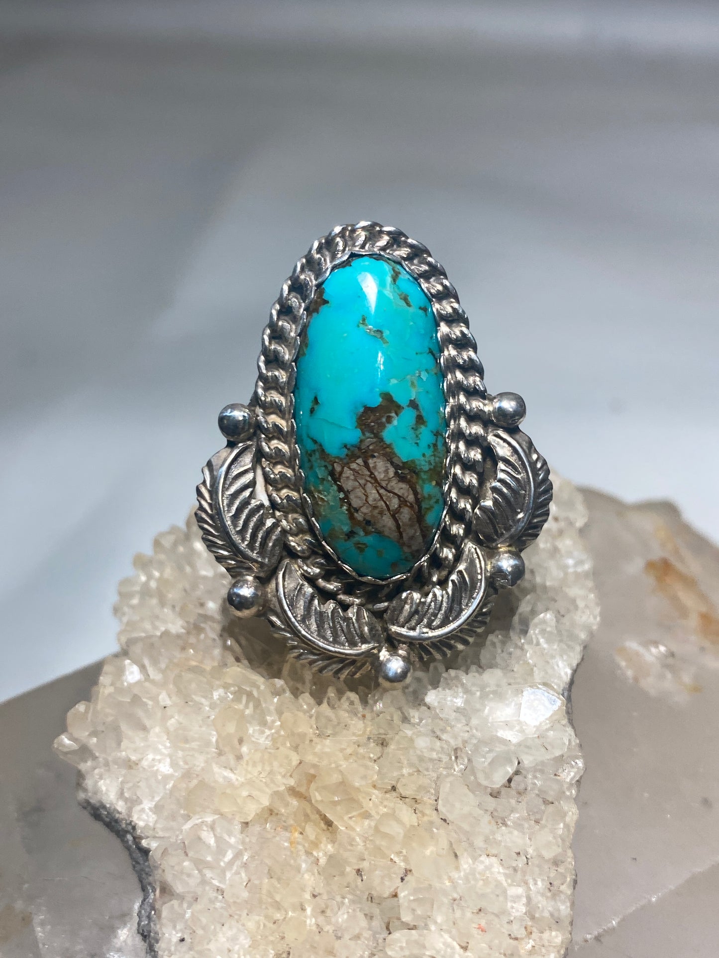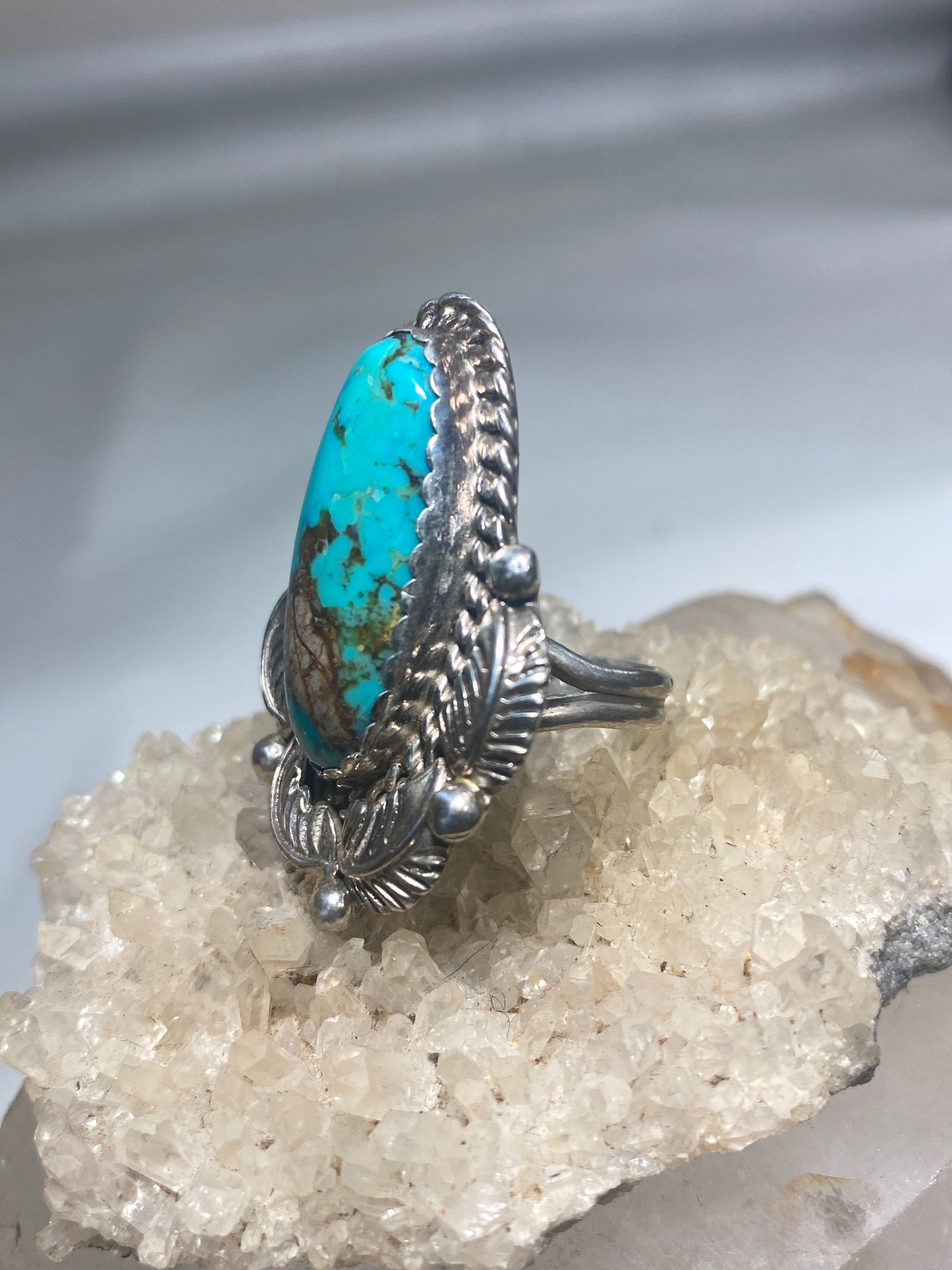 Turquoise ring long Navajo feathers band sterling silver women girls