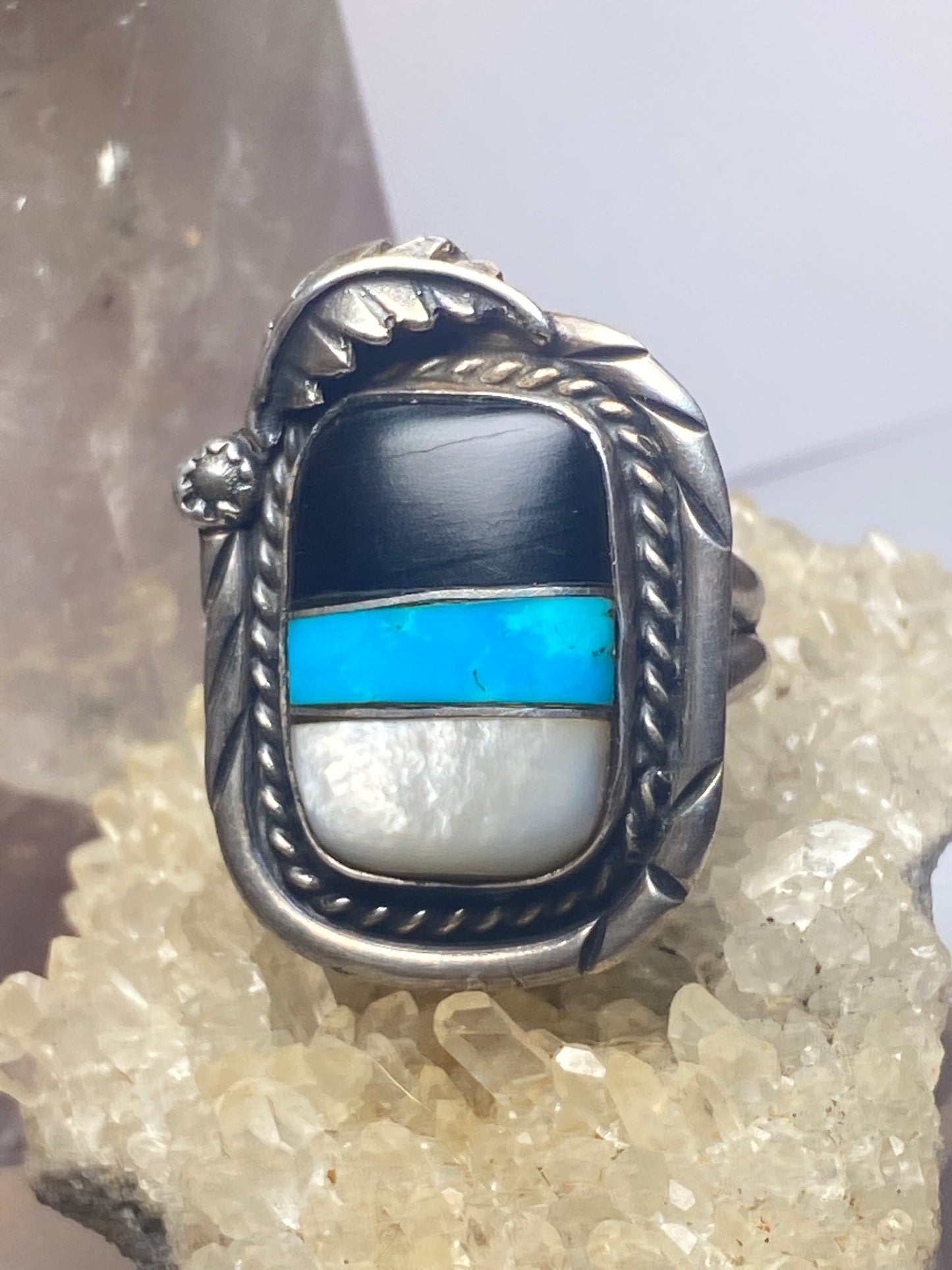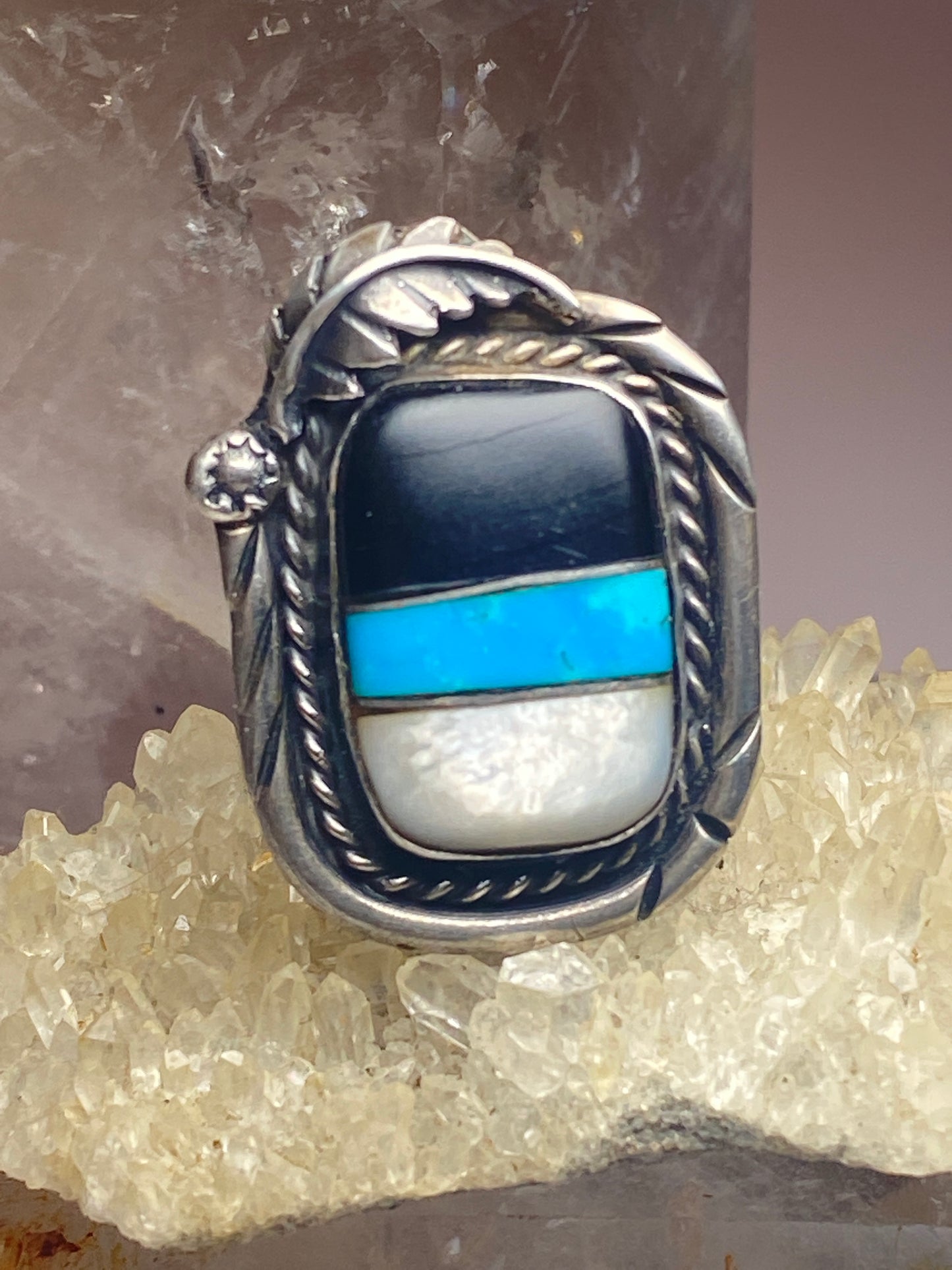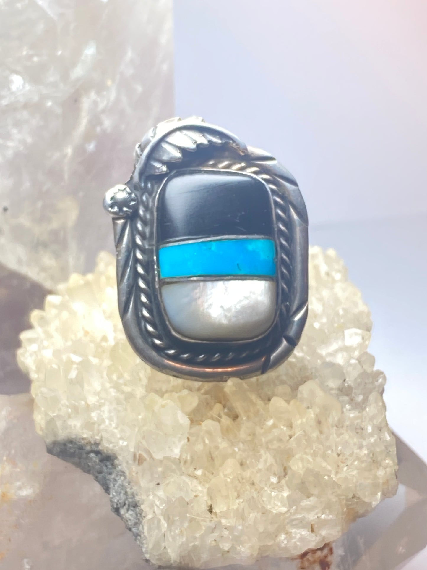 Turquoise ring size 8.50 Navajo onyx mother of pearl southwest sterling silver men women