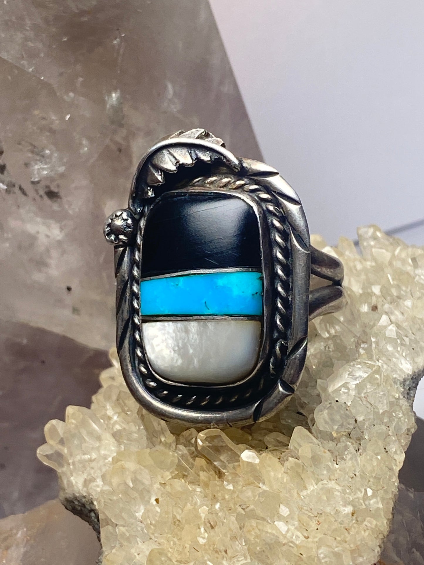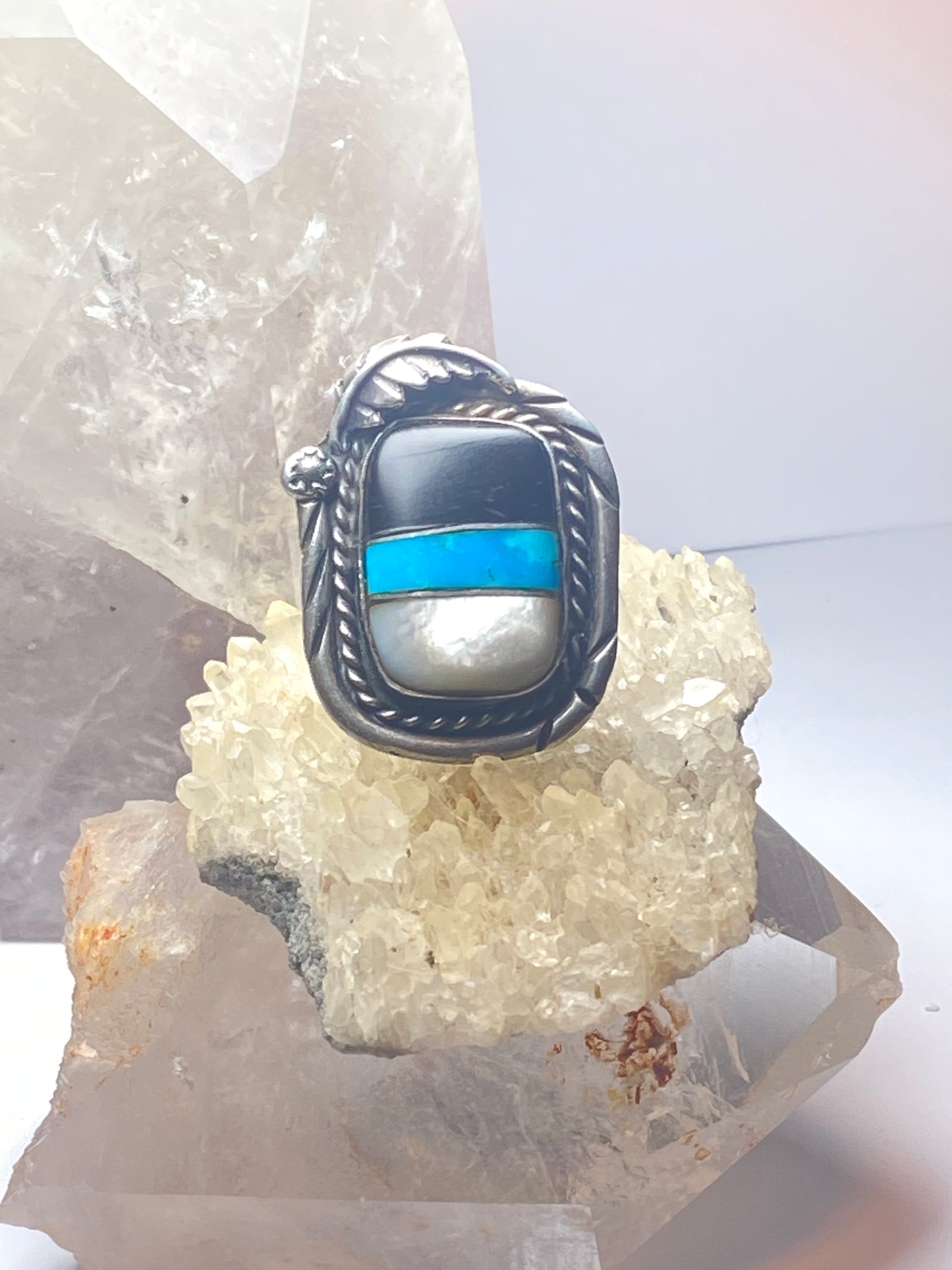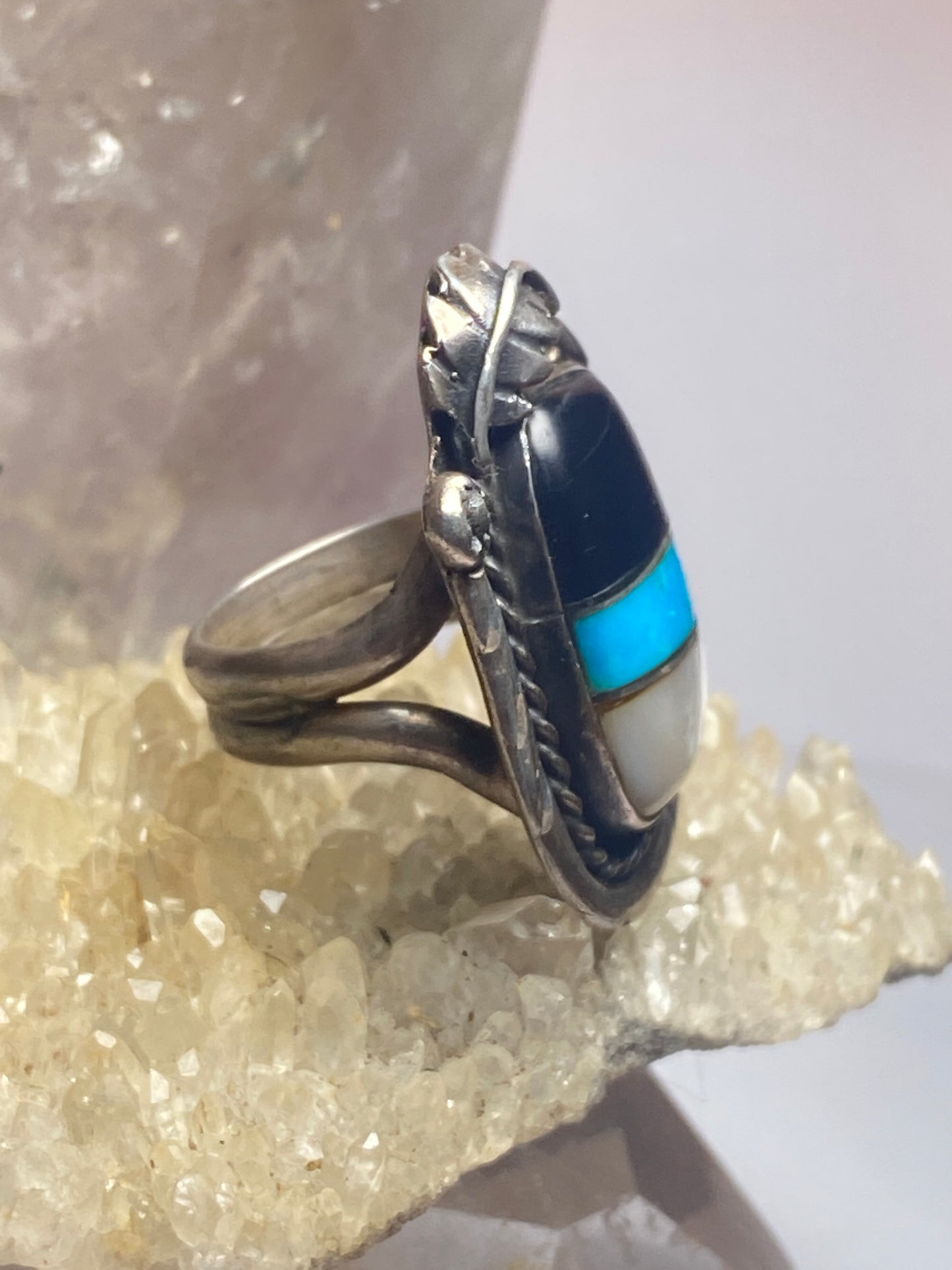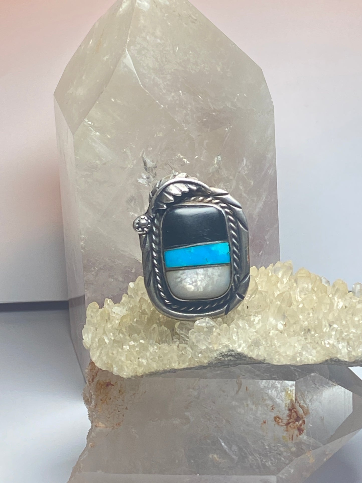 Turquoise ring size 8.50 Navajo onyx mother of pearl southwest sterling silver men women