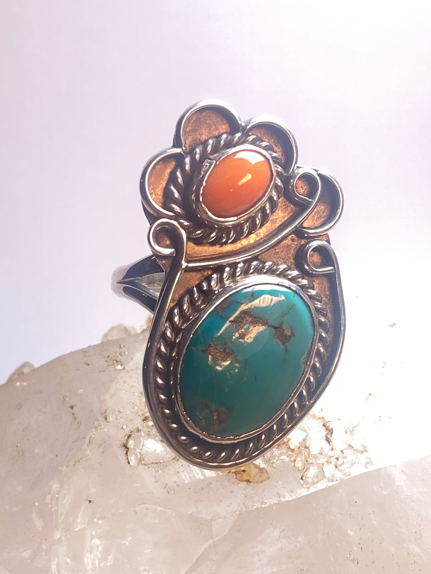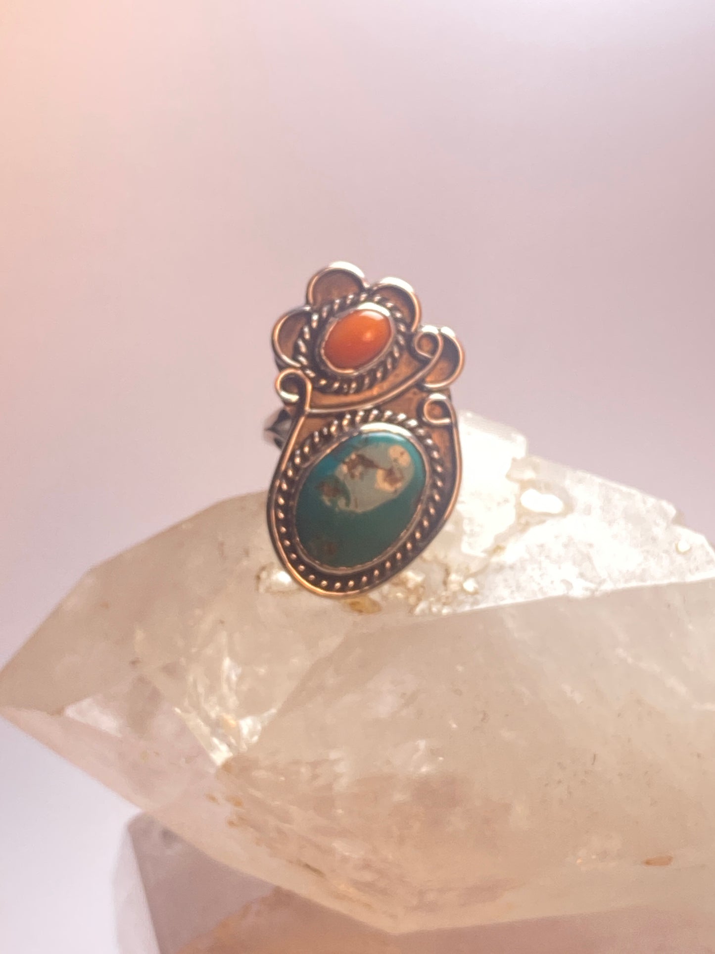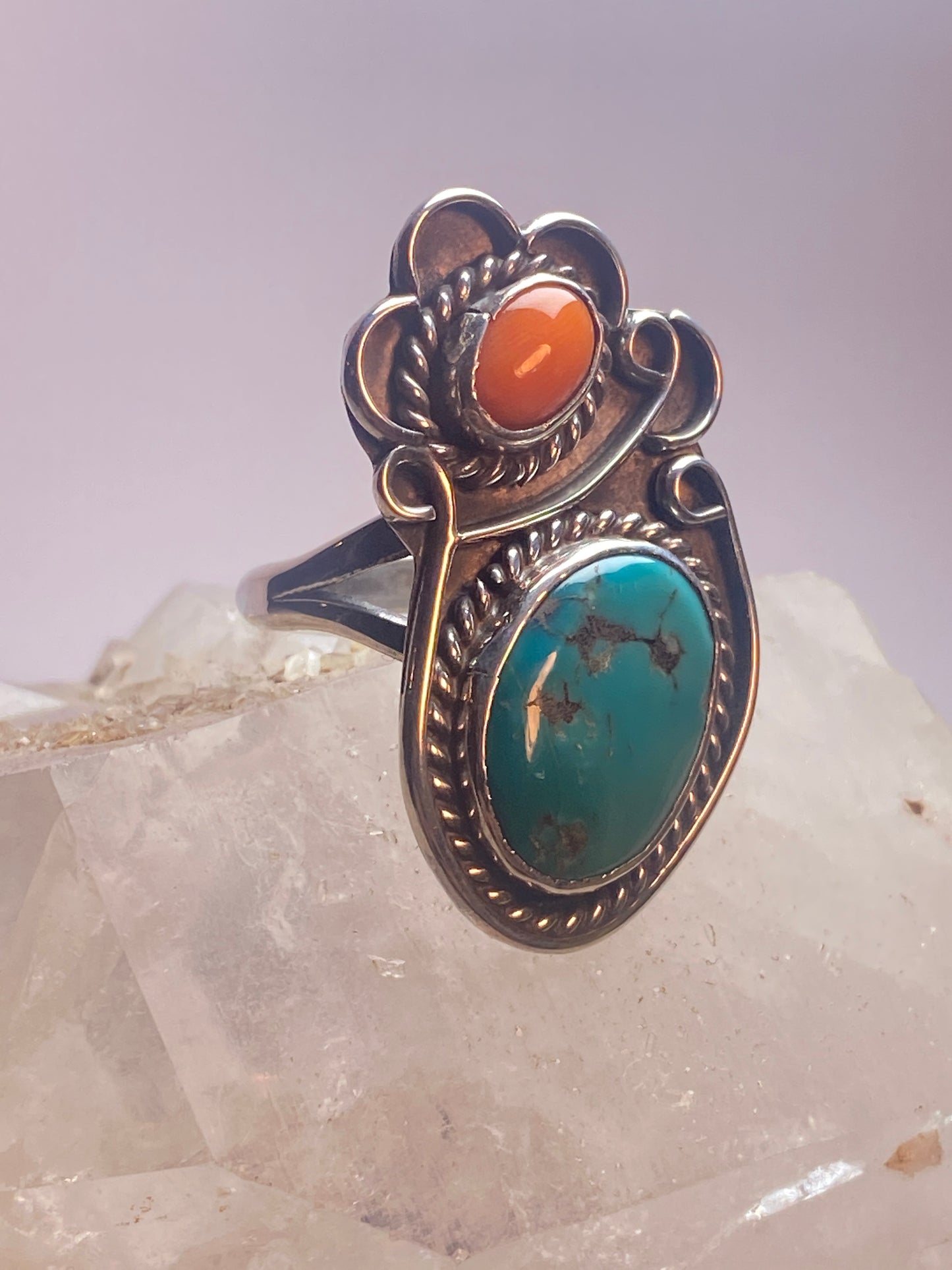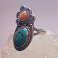 Turquoise ring size 10 Navajo coral southwest sterling silver women girls