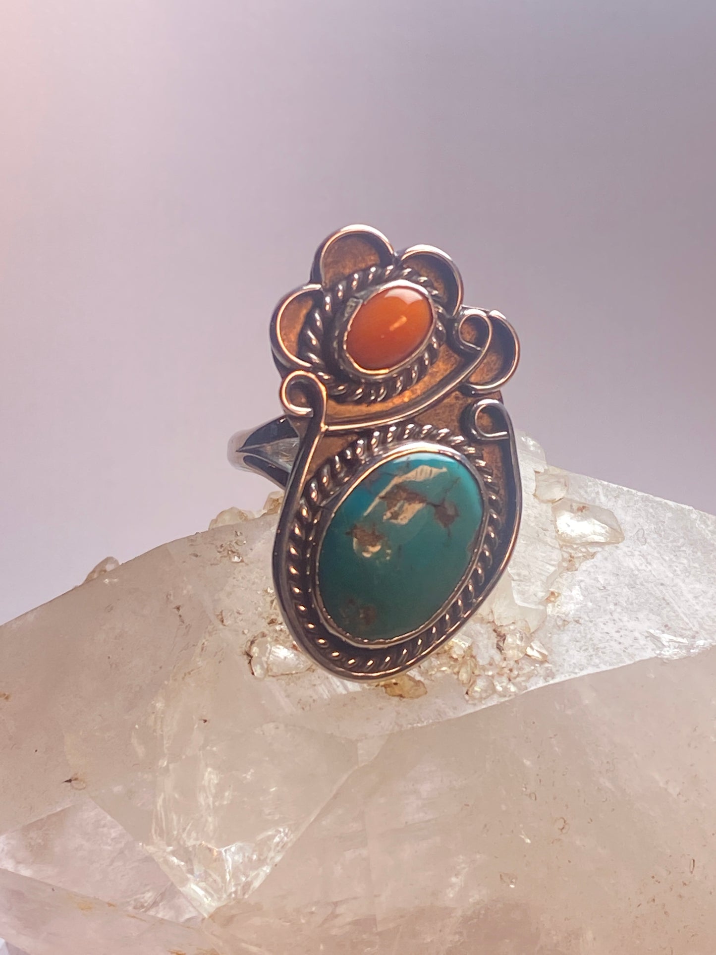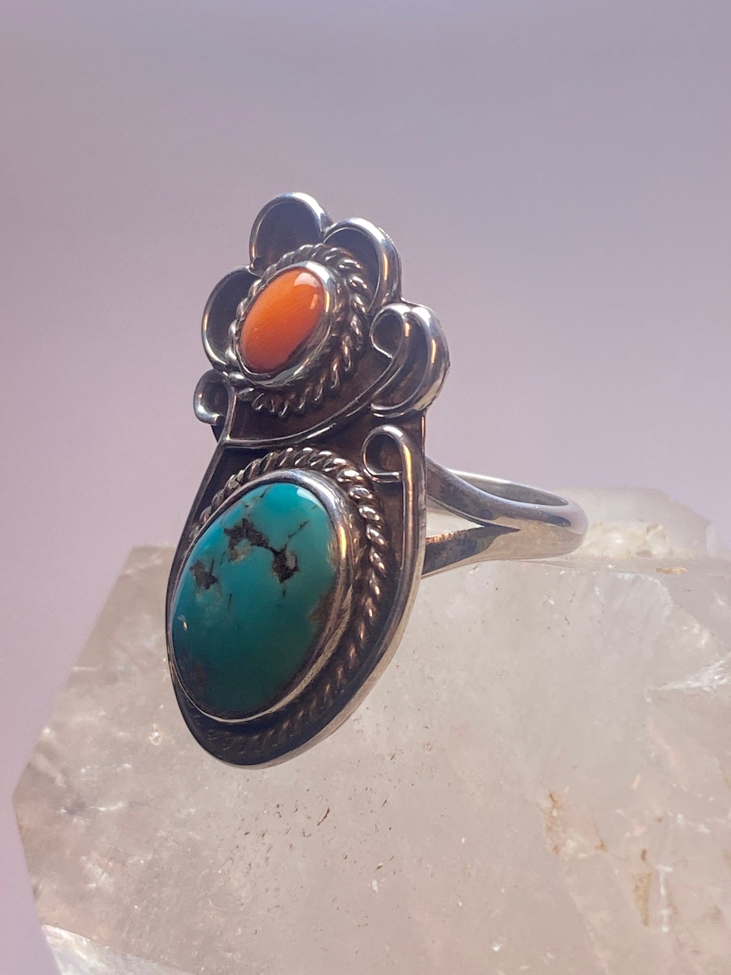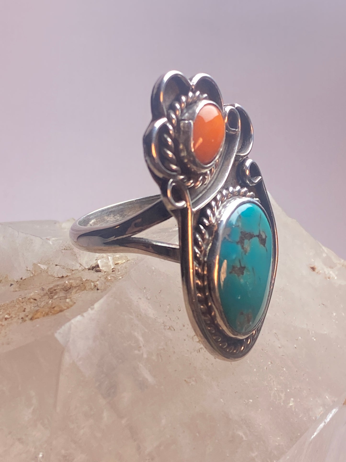 Turquoise ring size 10 Navajo coral southwest sterling silver women girls
