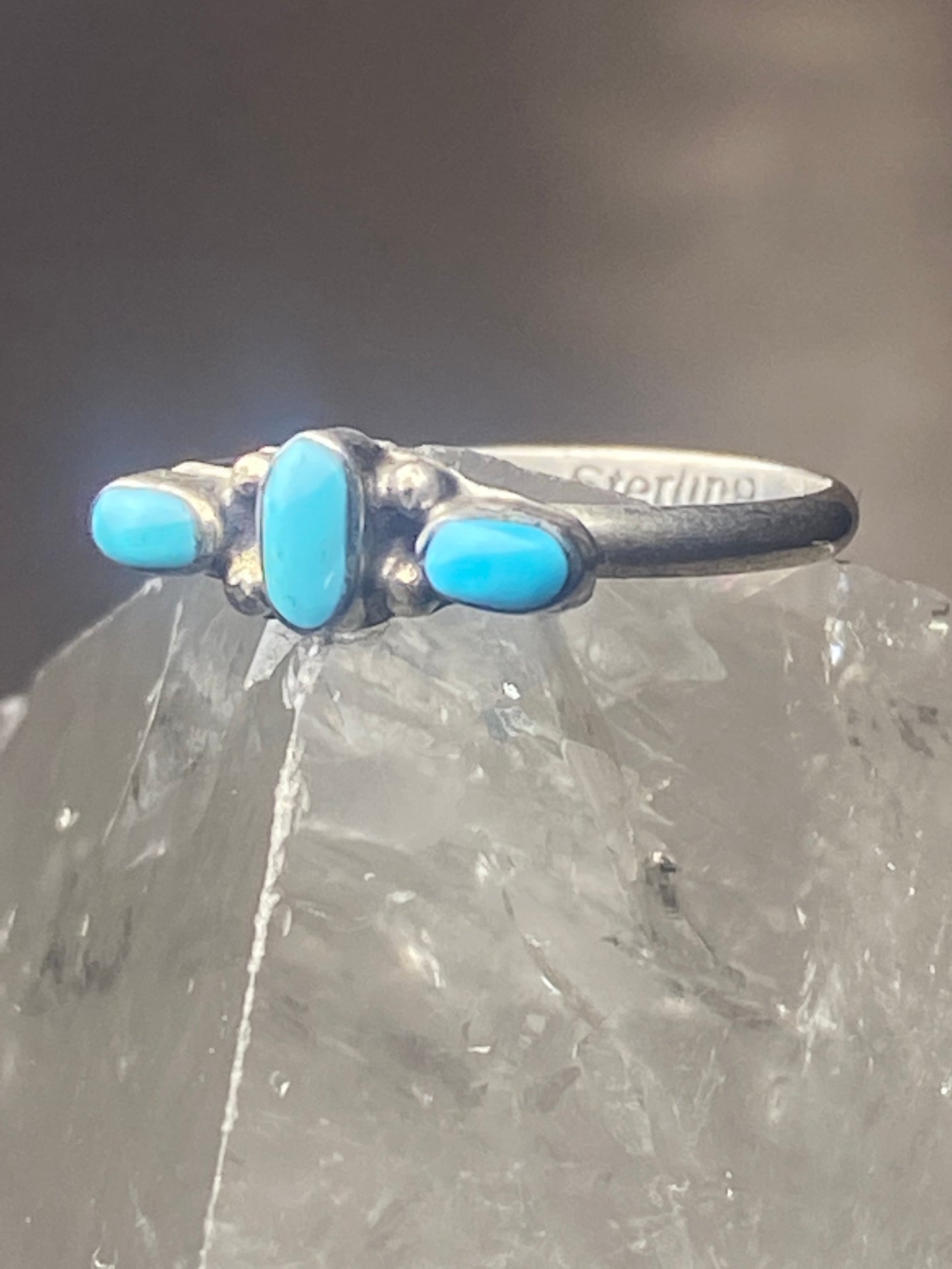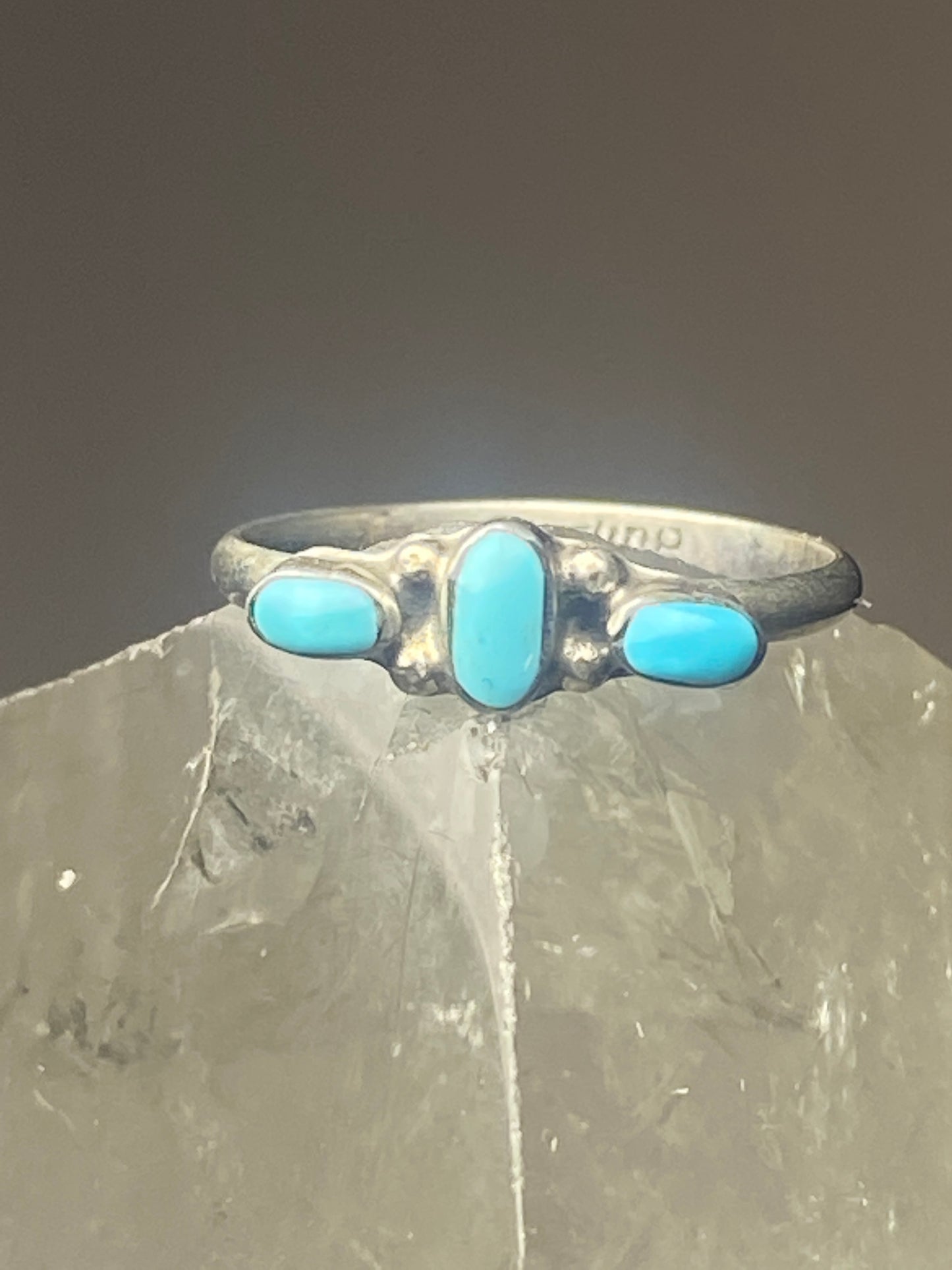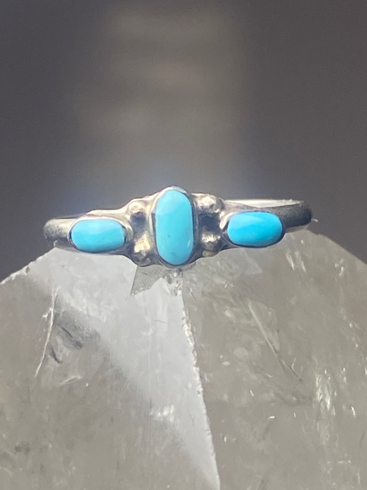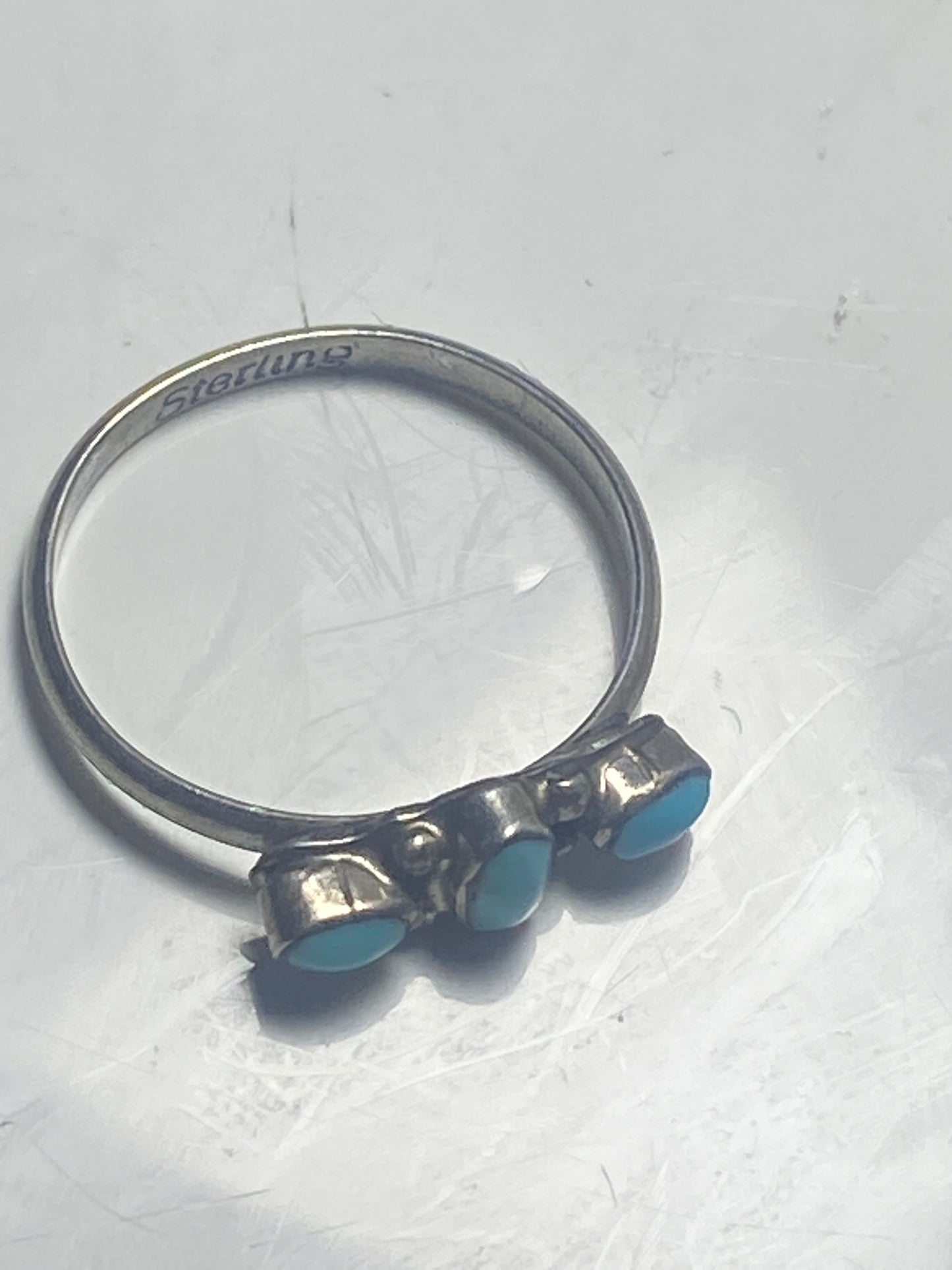 Turquoise Ring petite point southwest pinky sterling silver women girl dl