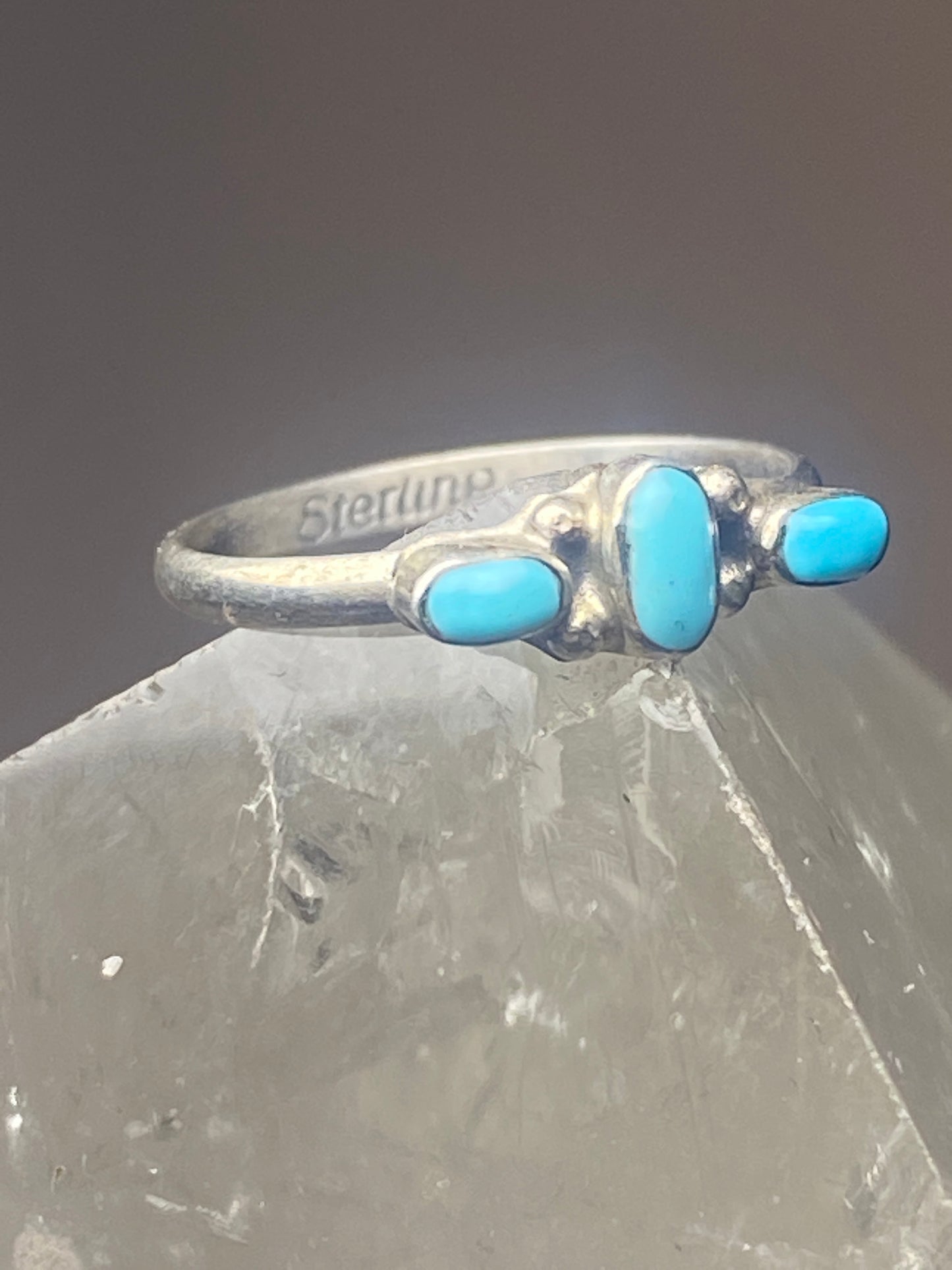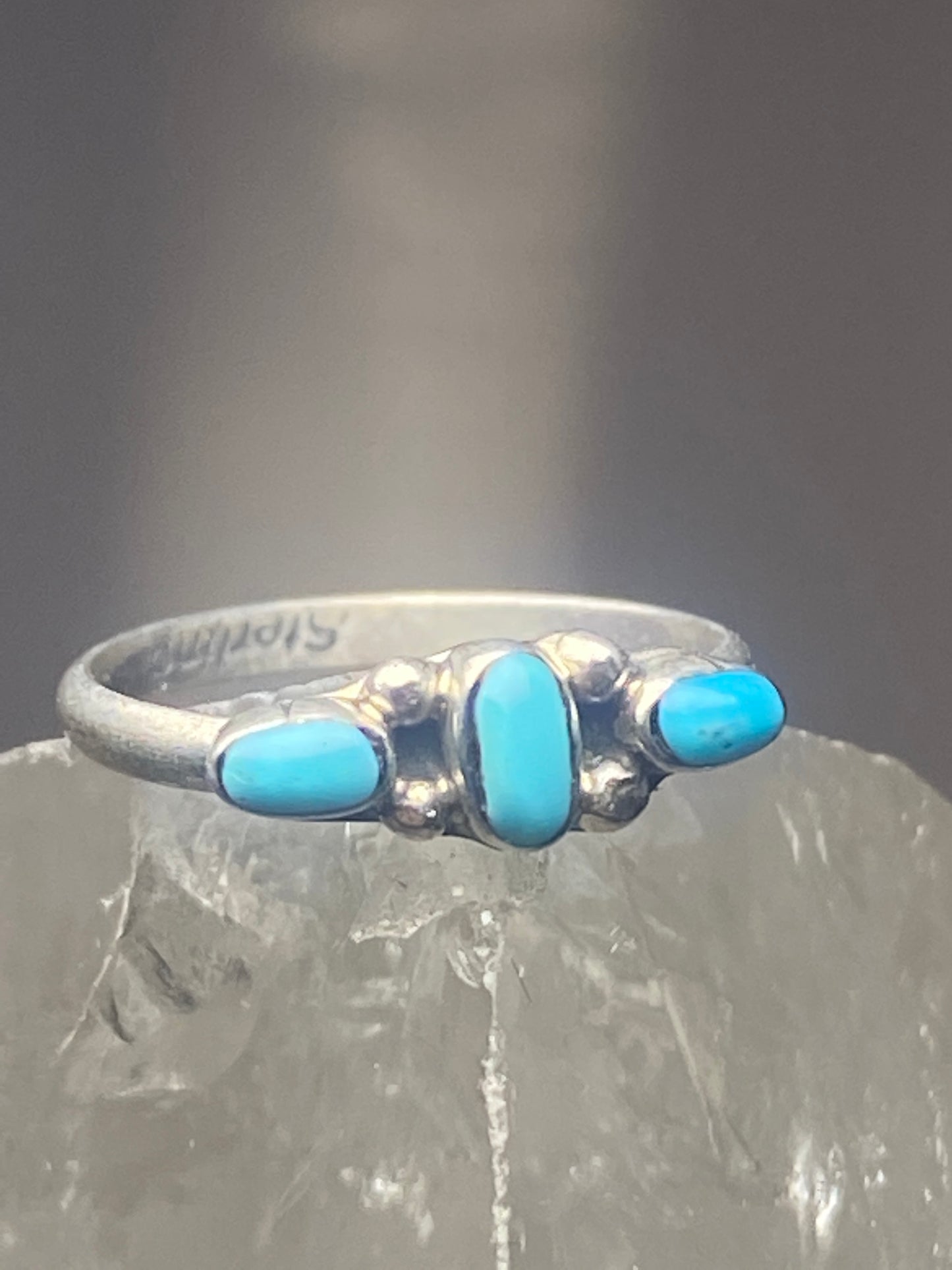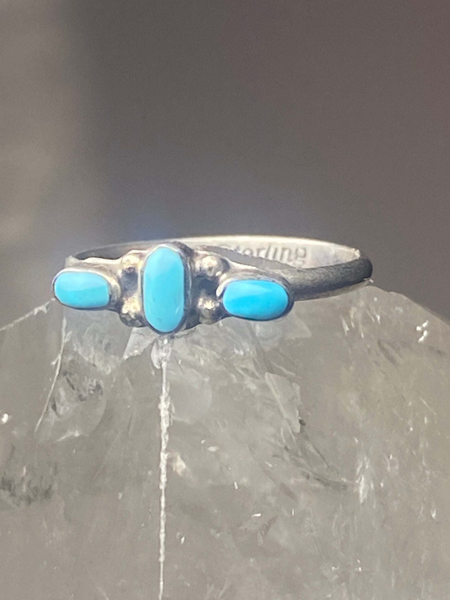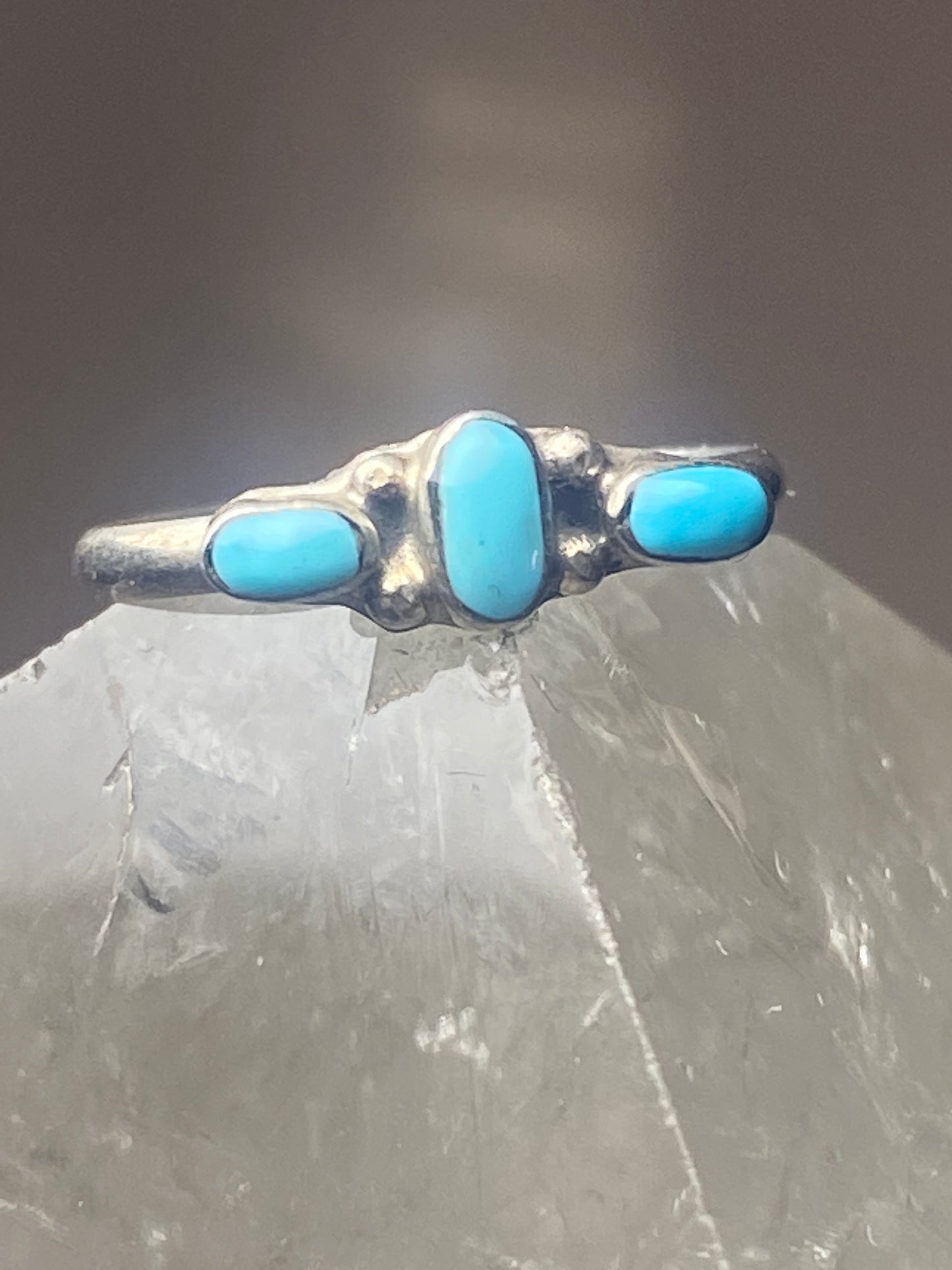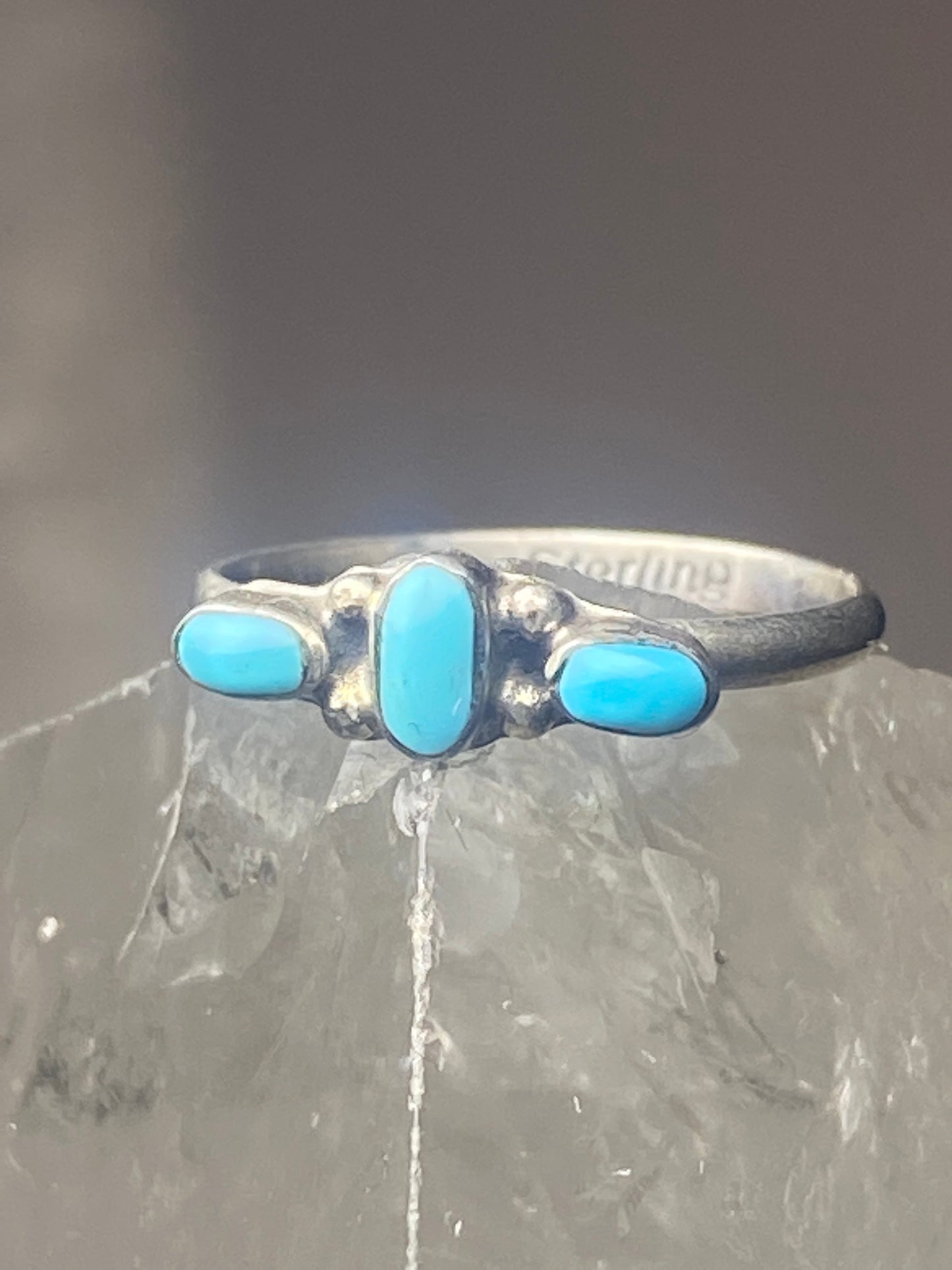 Turquoise Ring petite point southwest pinky sterling silver women girl dl