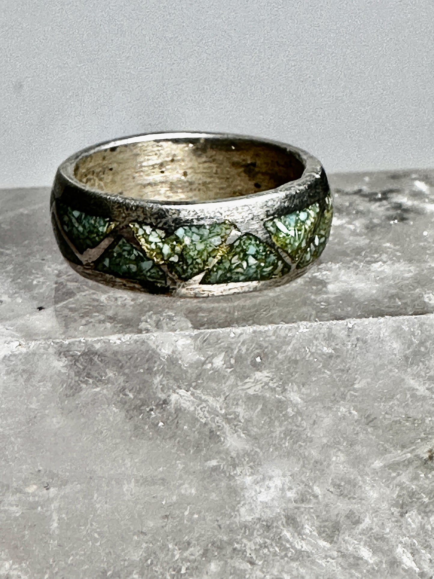 Turquoise ring size 5.25 Zuni band wedding sterling silver women b